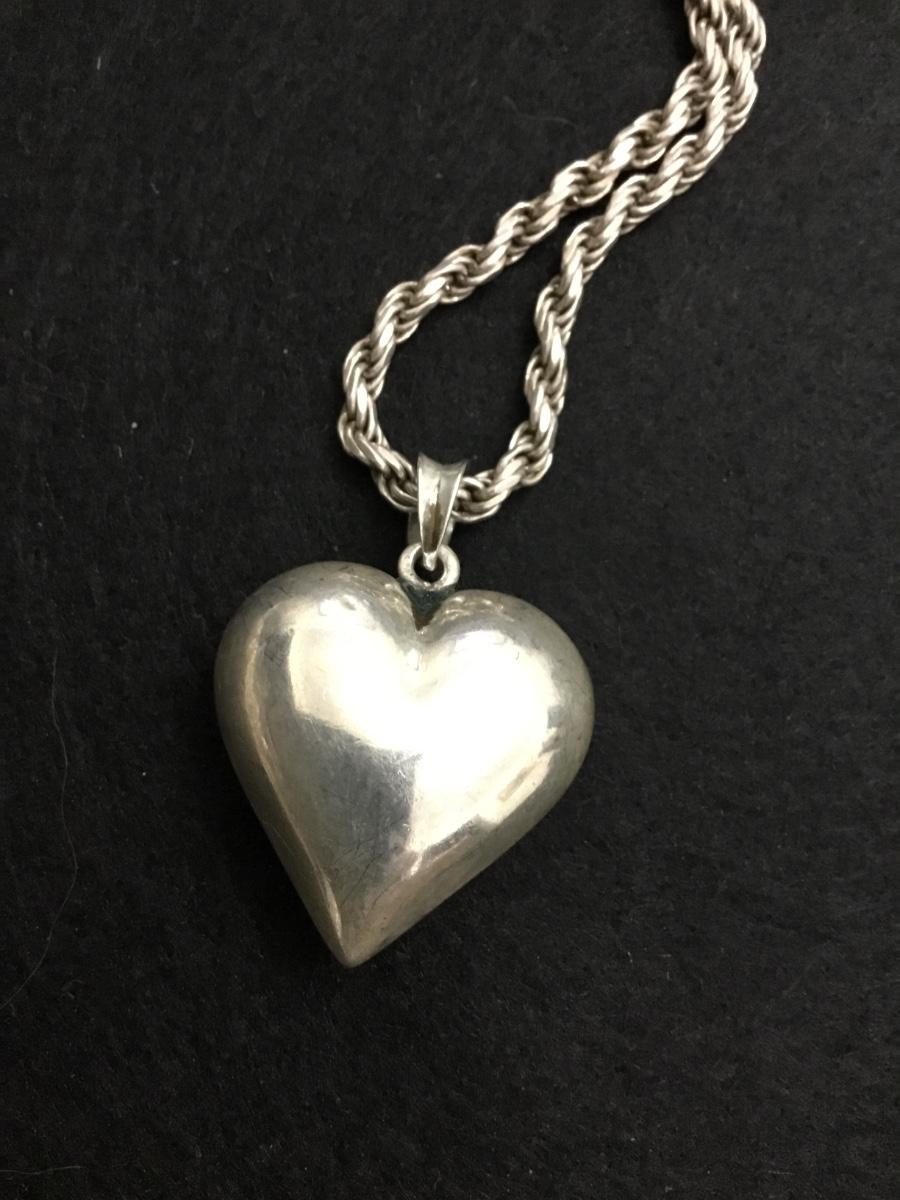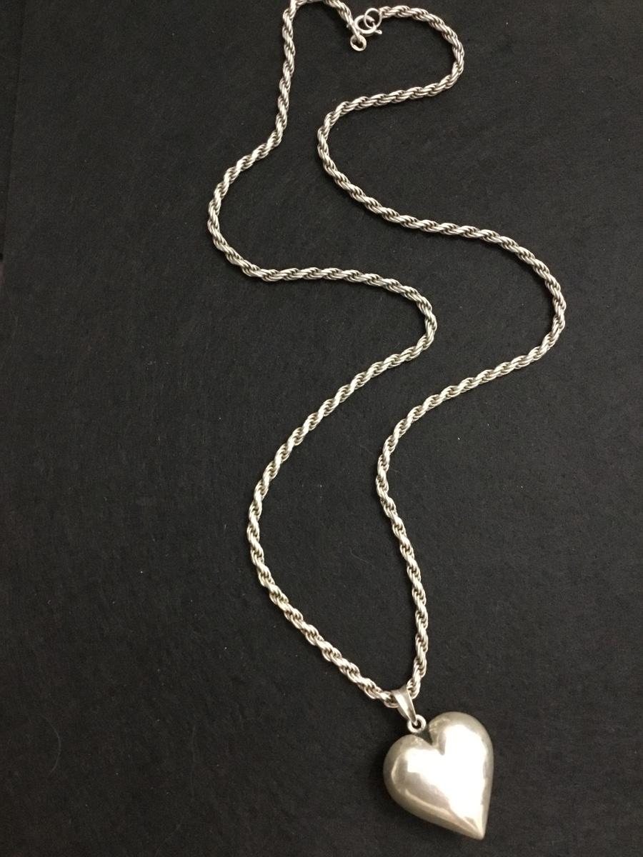 Vintage Italy 925 thick chain sterling, silver necklace with 925 sterling silver heart pendant