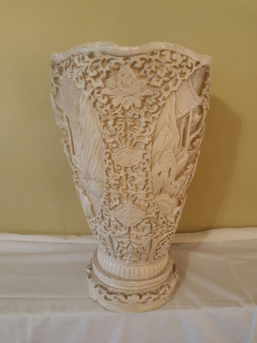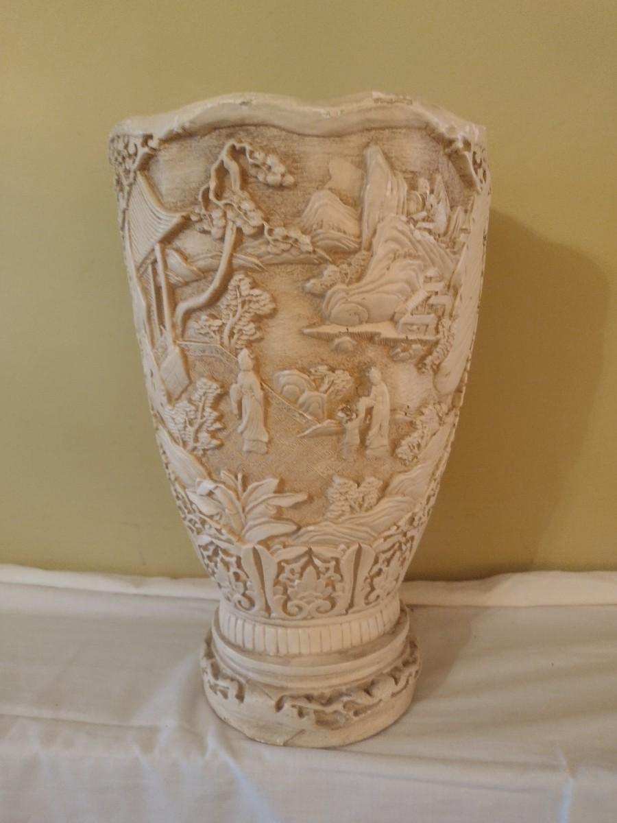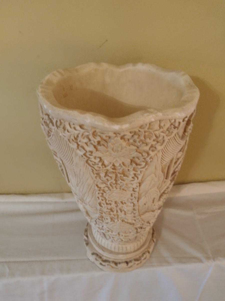 Vintage Ivory Color Japanese Resin Carved Relief Vase