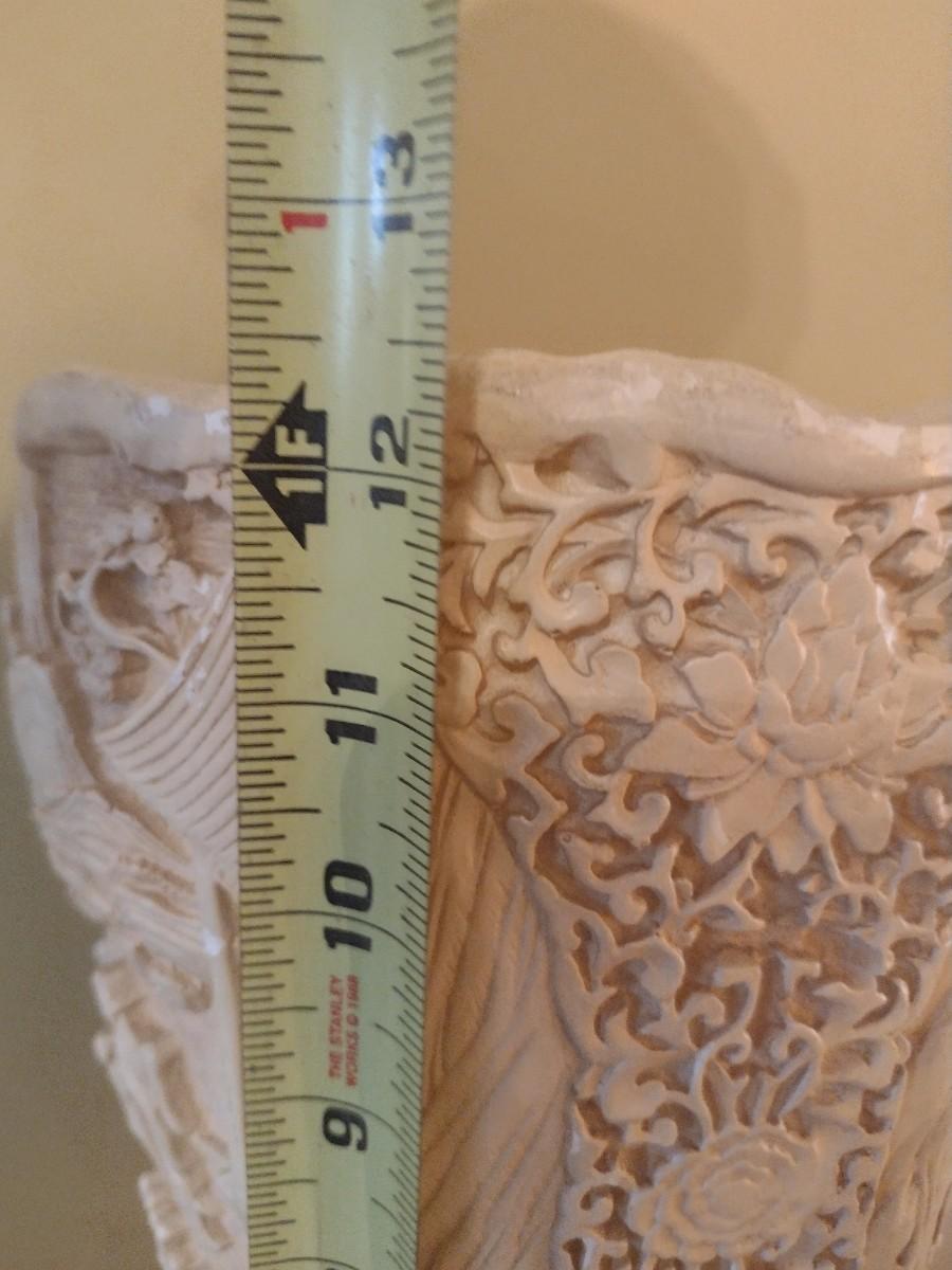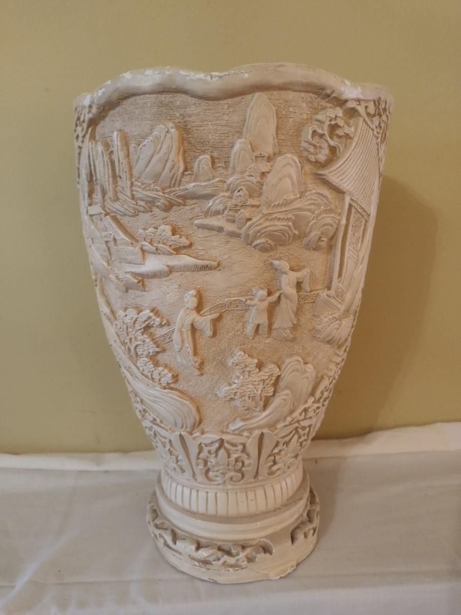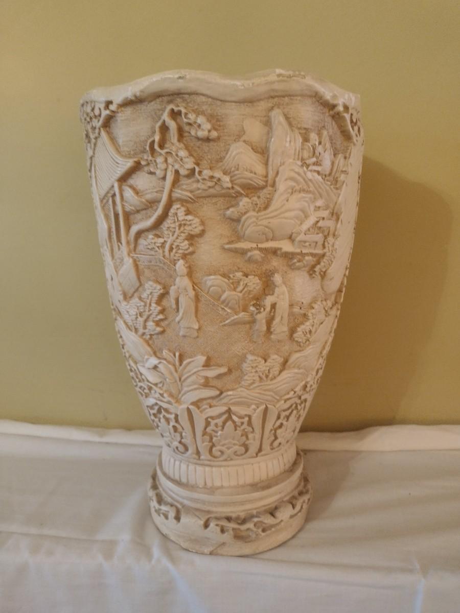 Vintage Ivory Color Japanese Resin Carved Relief Vase