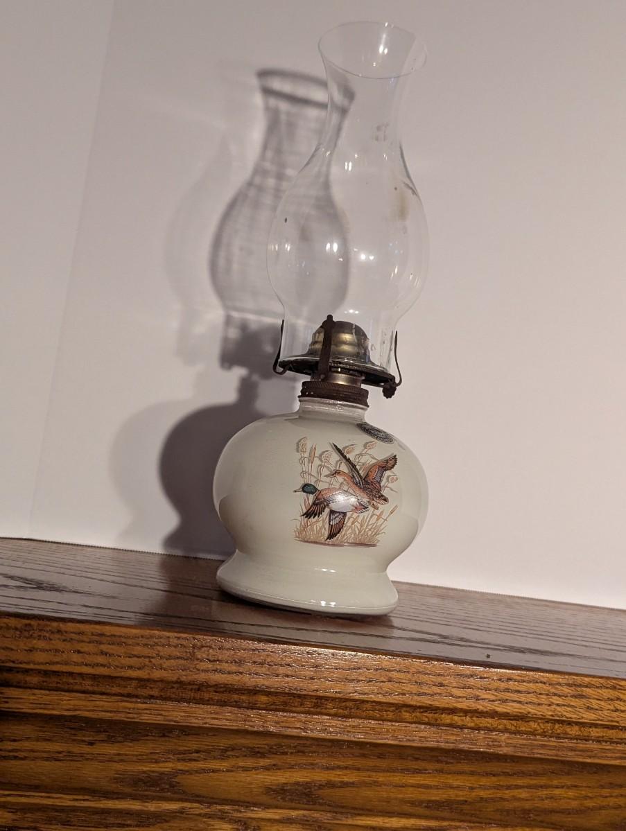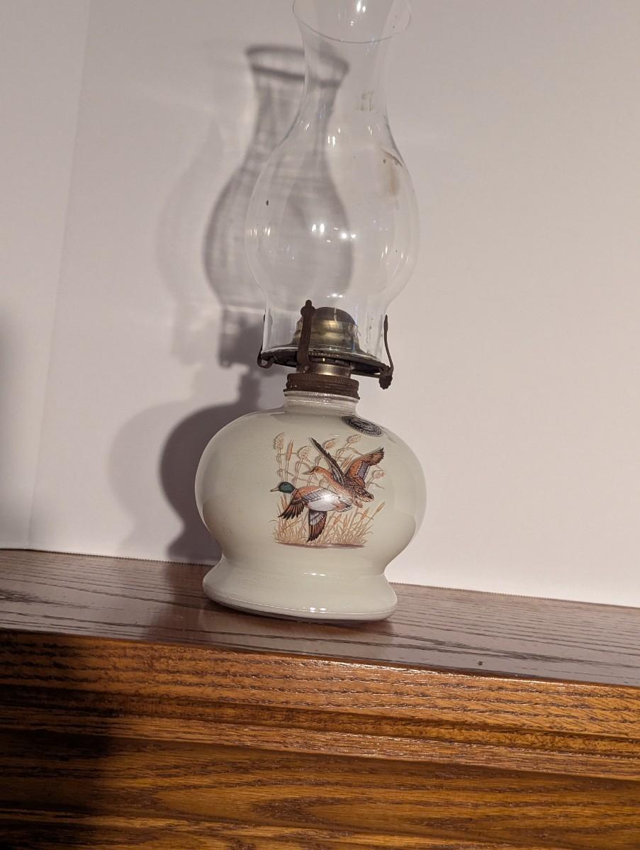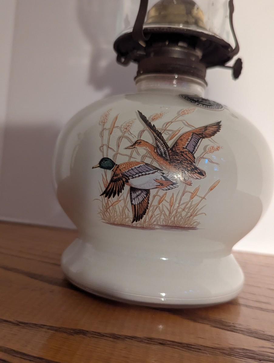 Vintage Ivory Glass Oil Lamp Flying Ducks Light Lamplight Farms