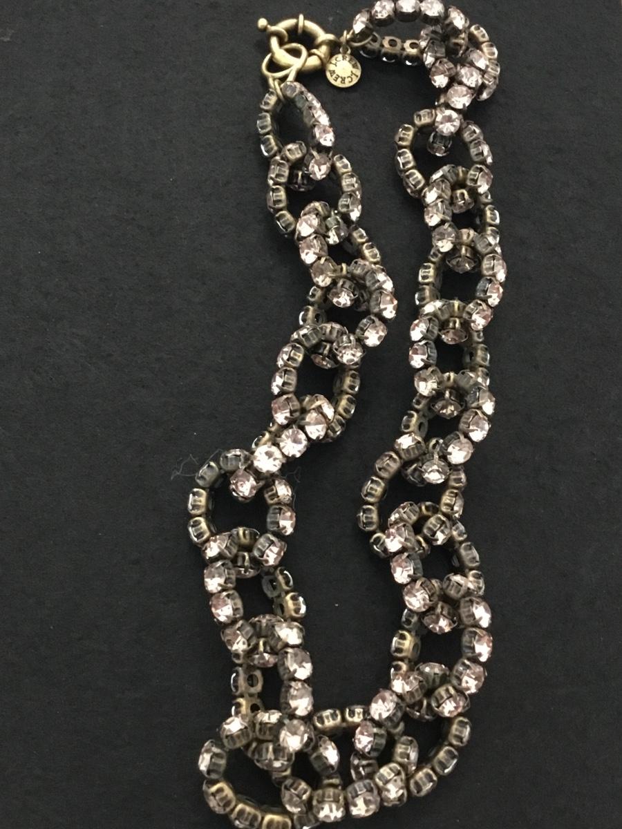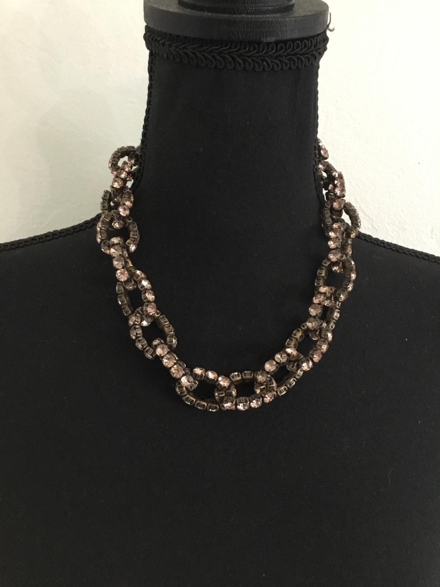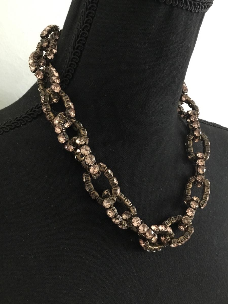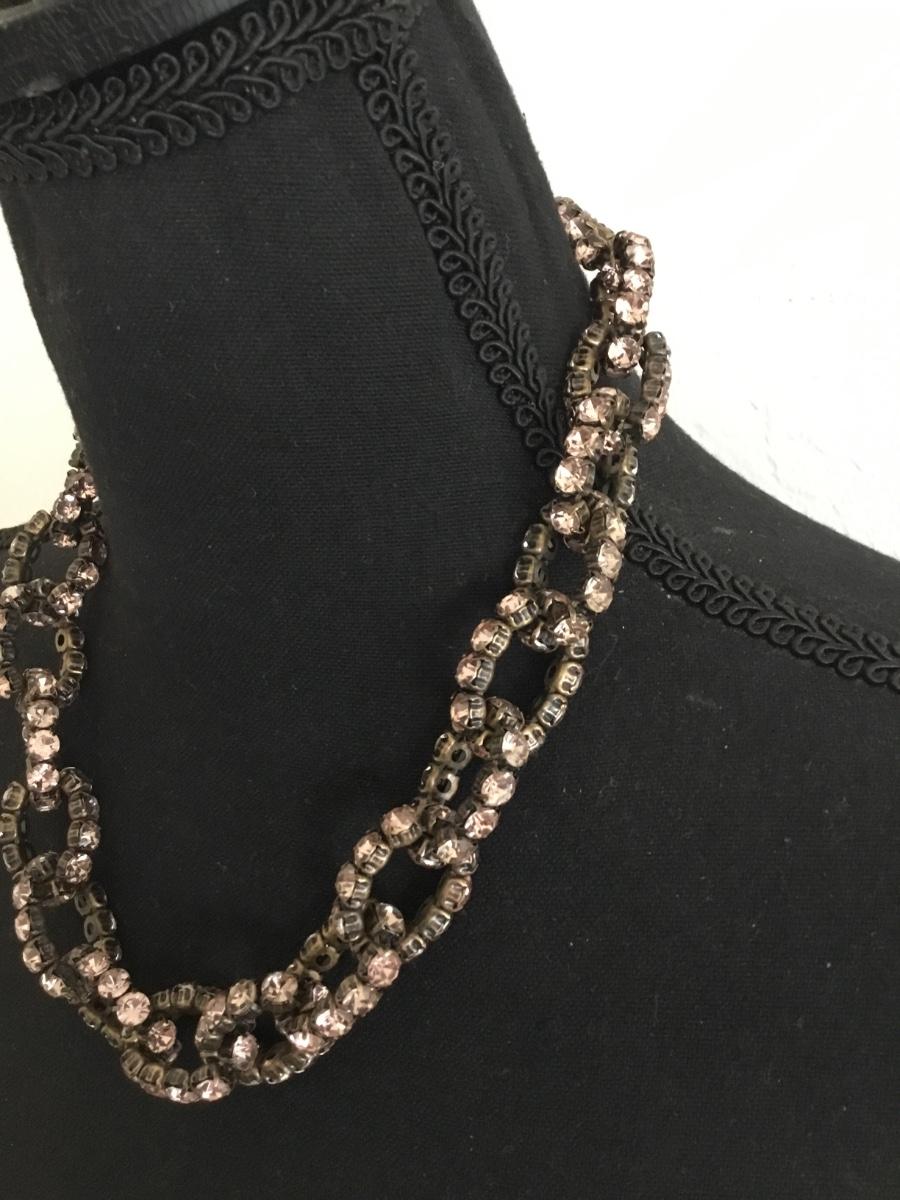 Vintage J. crew bronze tone light pink rhinestone chain, link, statement, necklace