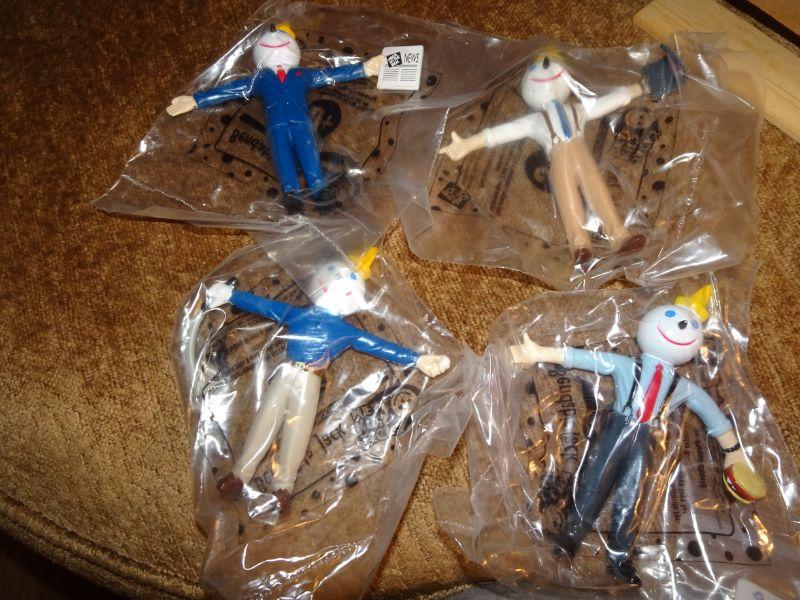 Vintage Jack in the Box Rubber Figures, Sealed Packages Bendable Figures (4 pieces)