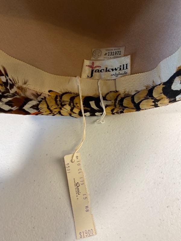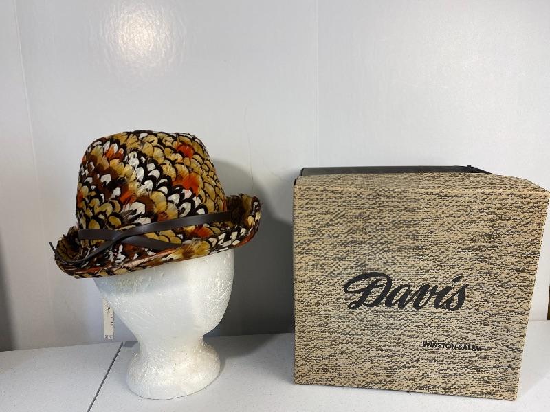Vintage Jackwill Original Pheasant Feather Hat Davis Winston Salem NC with tags