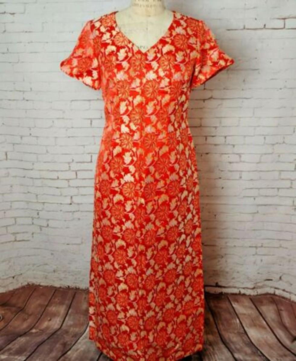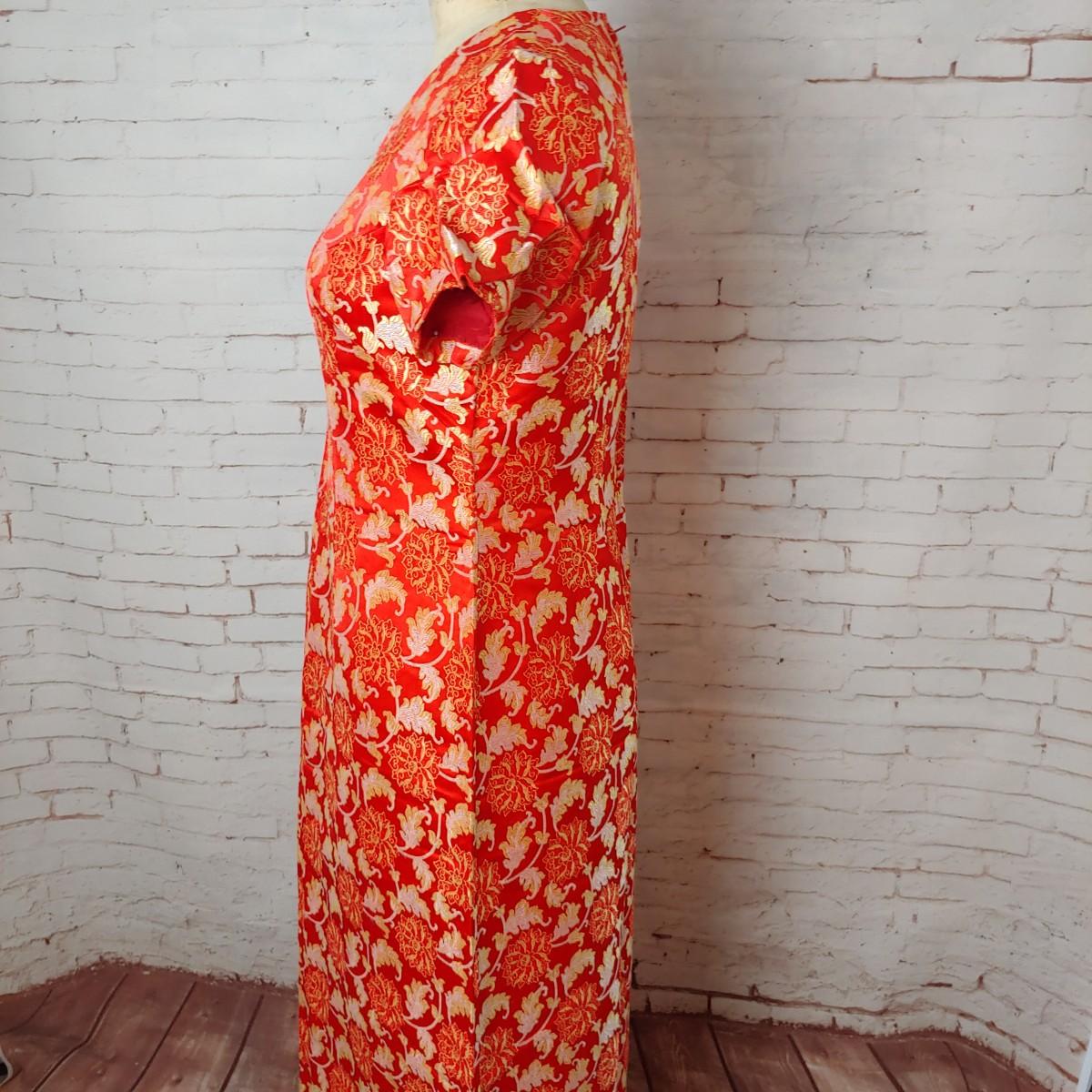 Gorgeous cheongsam style maxi dress, jacquard material (red & gold)