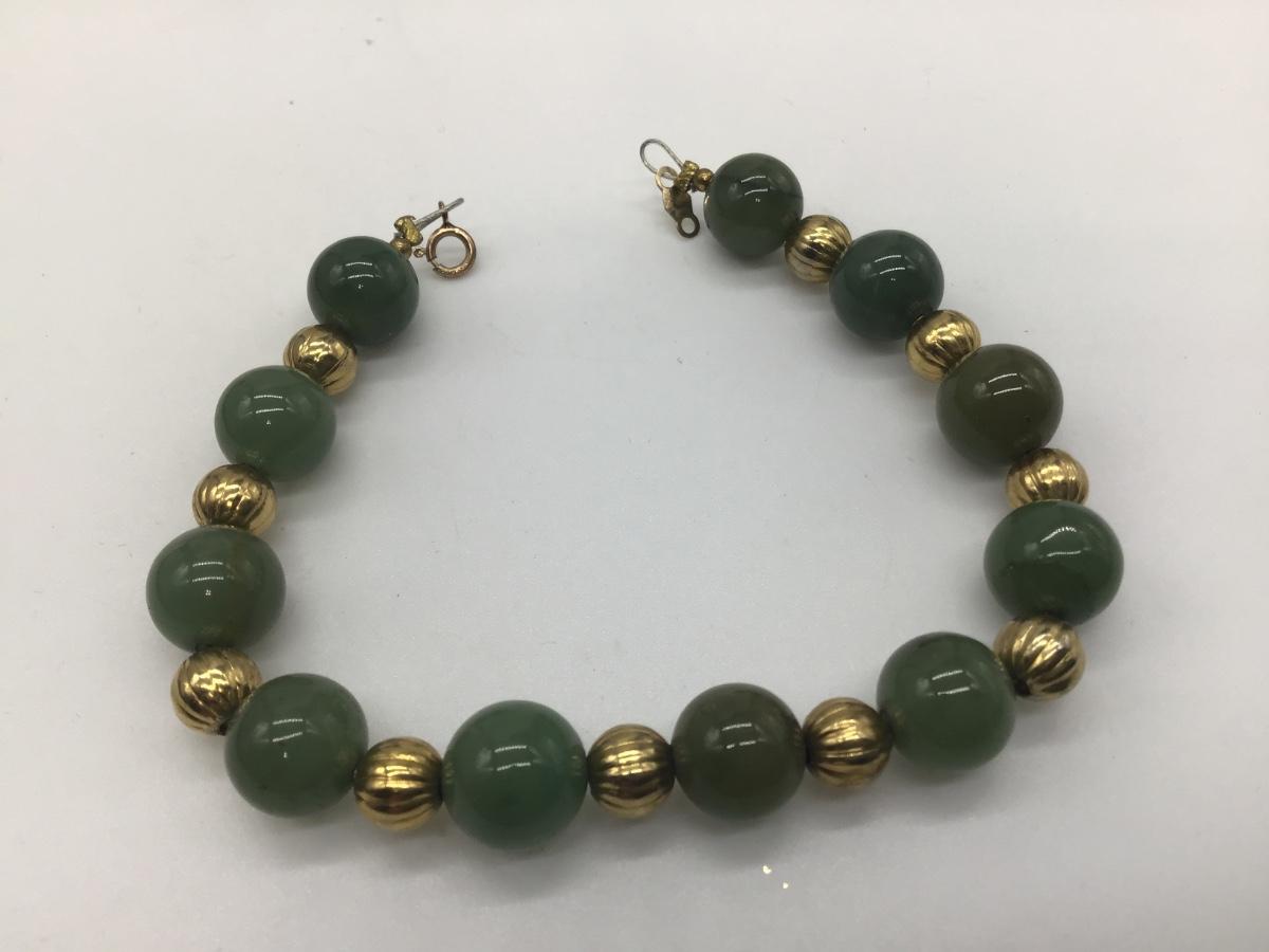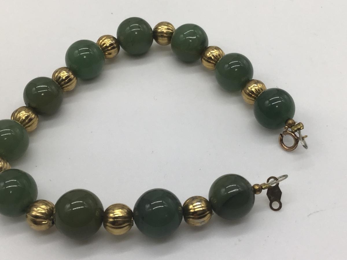Vintage Jade Bracelet 1/20 Gold Marked Clasp