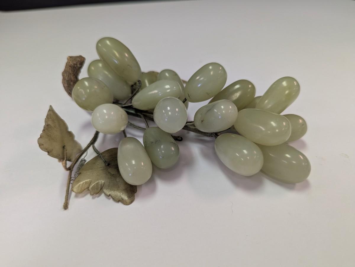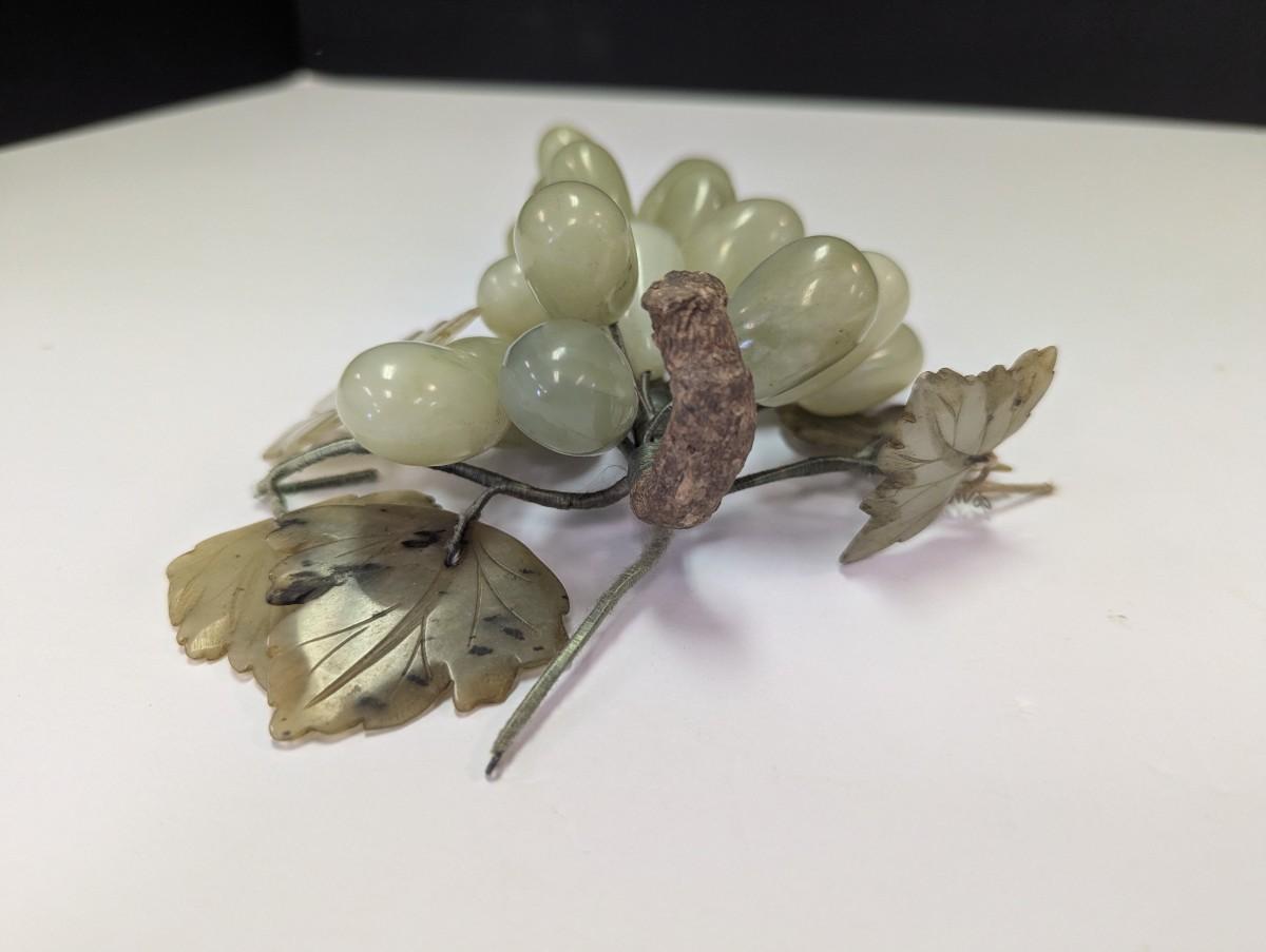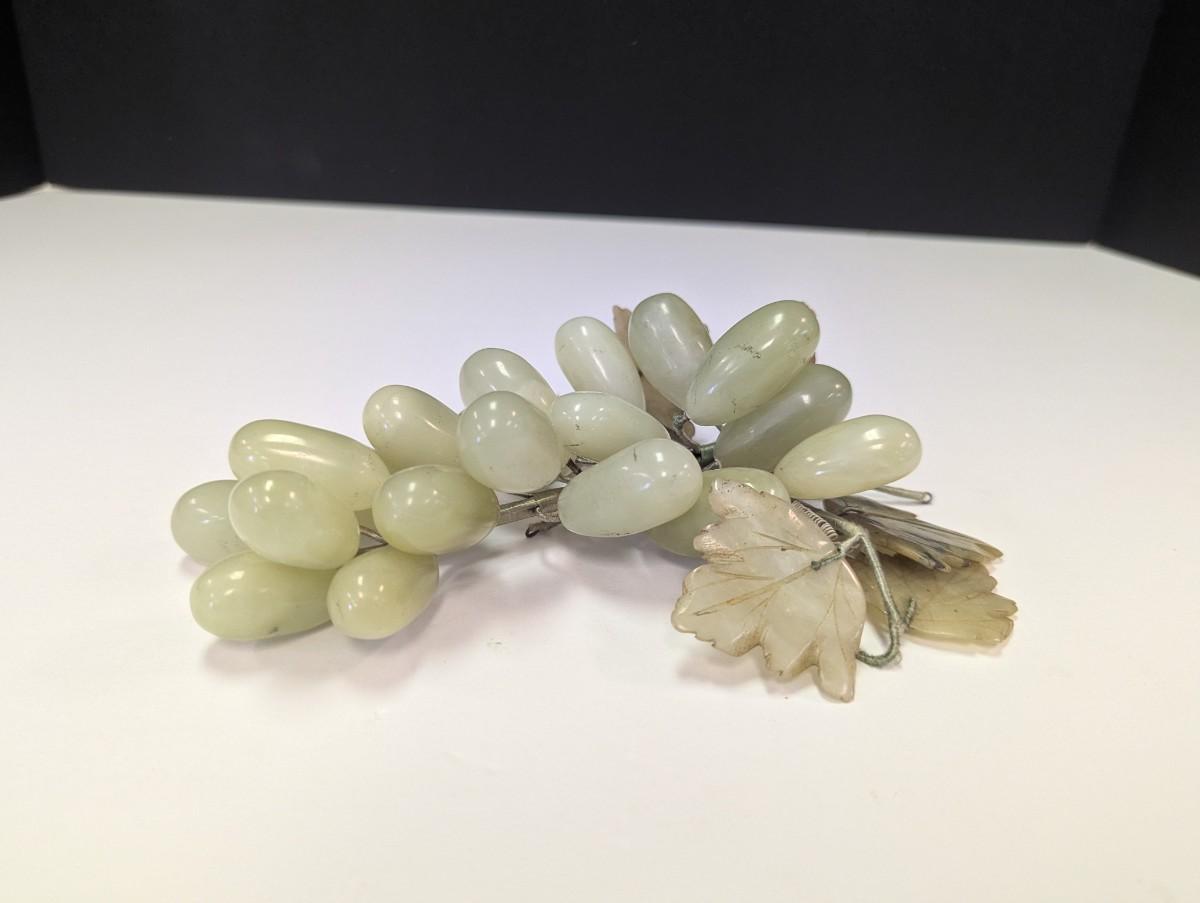 Vintage Jade Green Grape Cluster With Stone Leaves