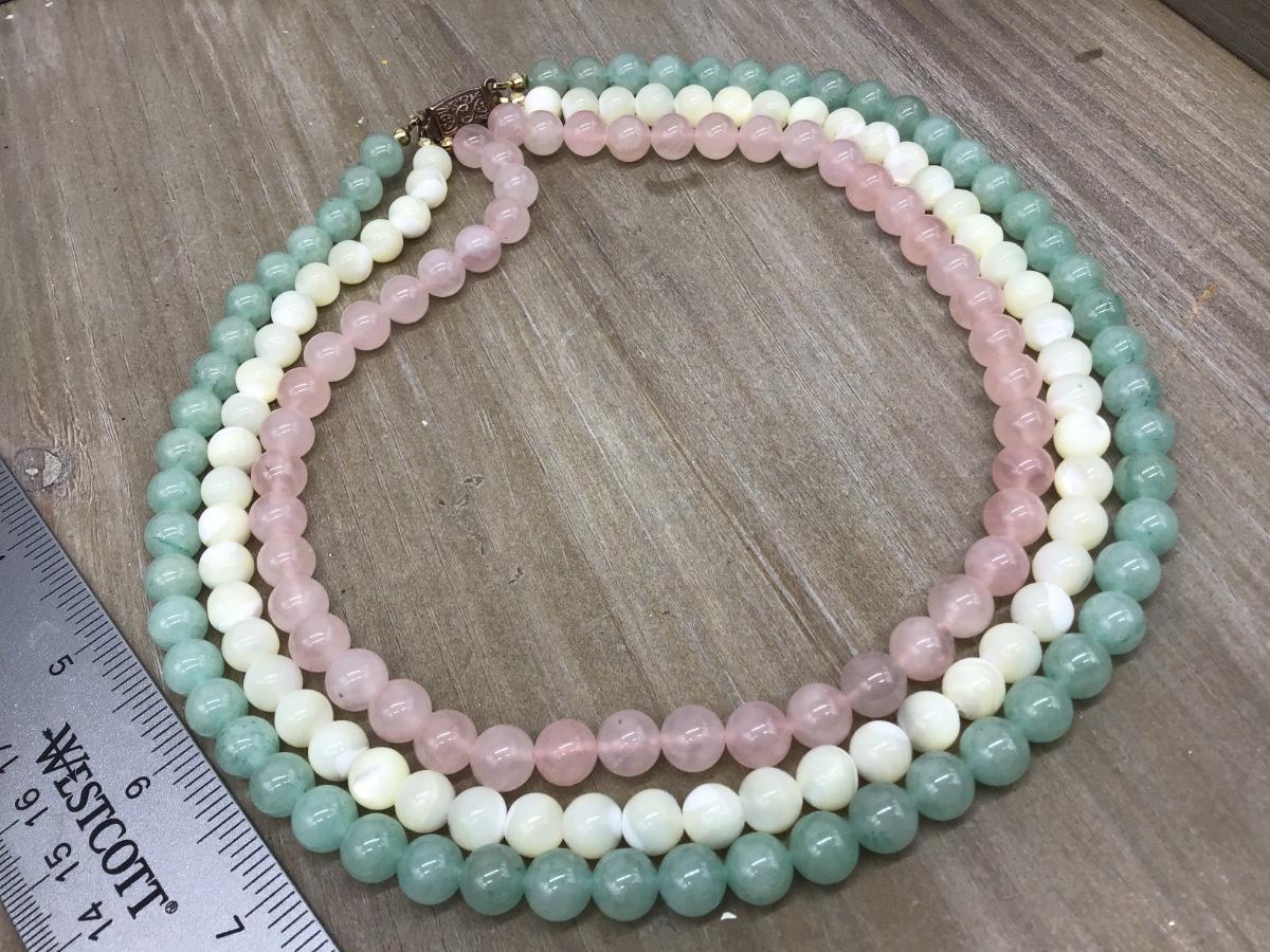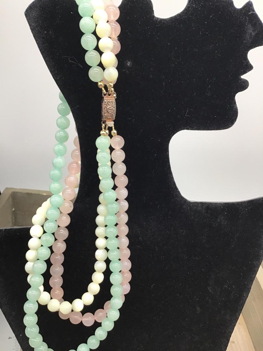 Vintage Jade ,Rose Quartz ,Agate Beaded necklace