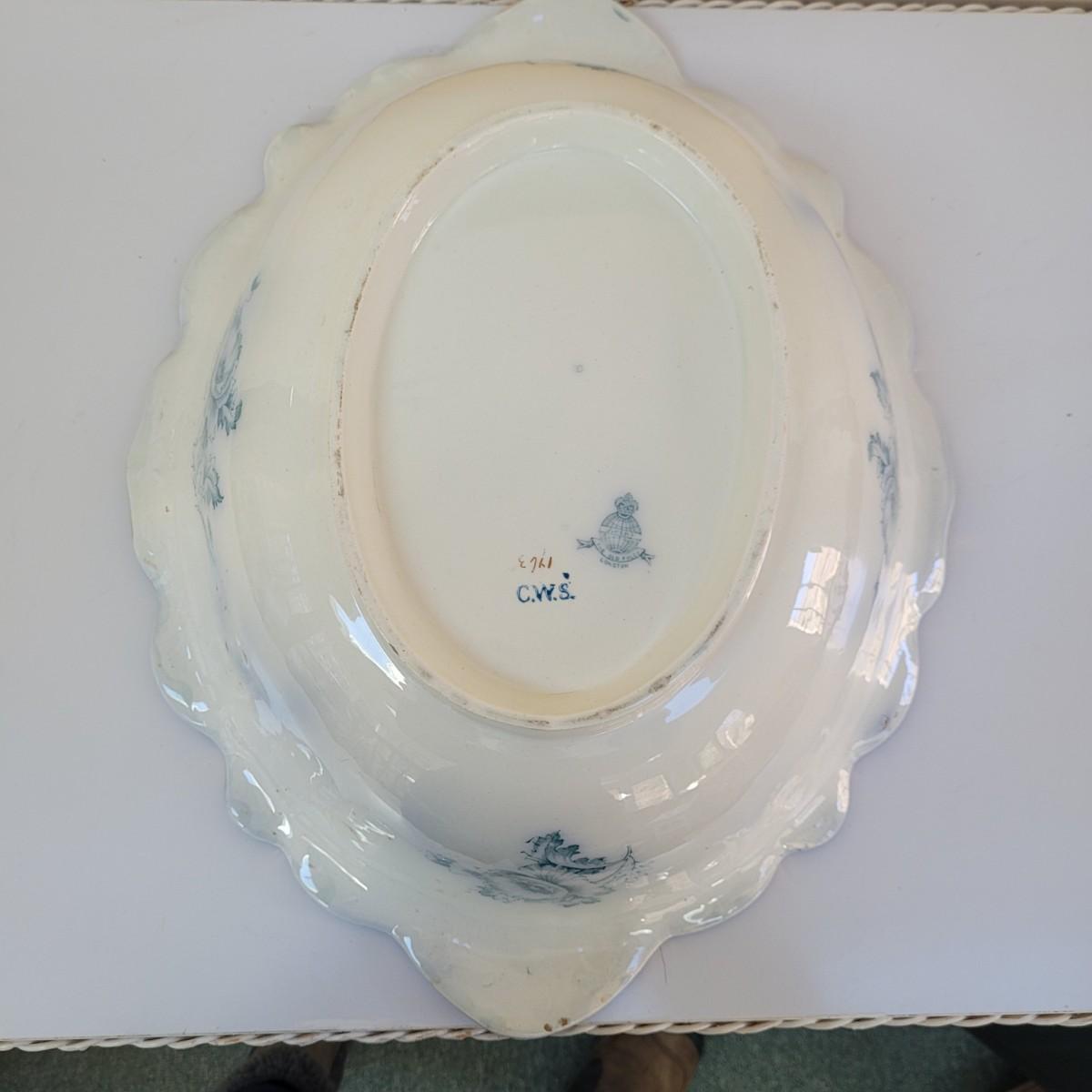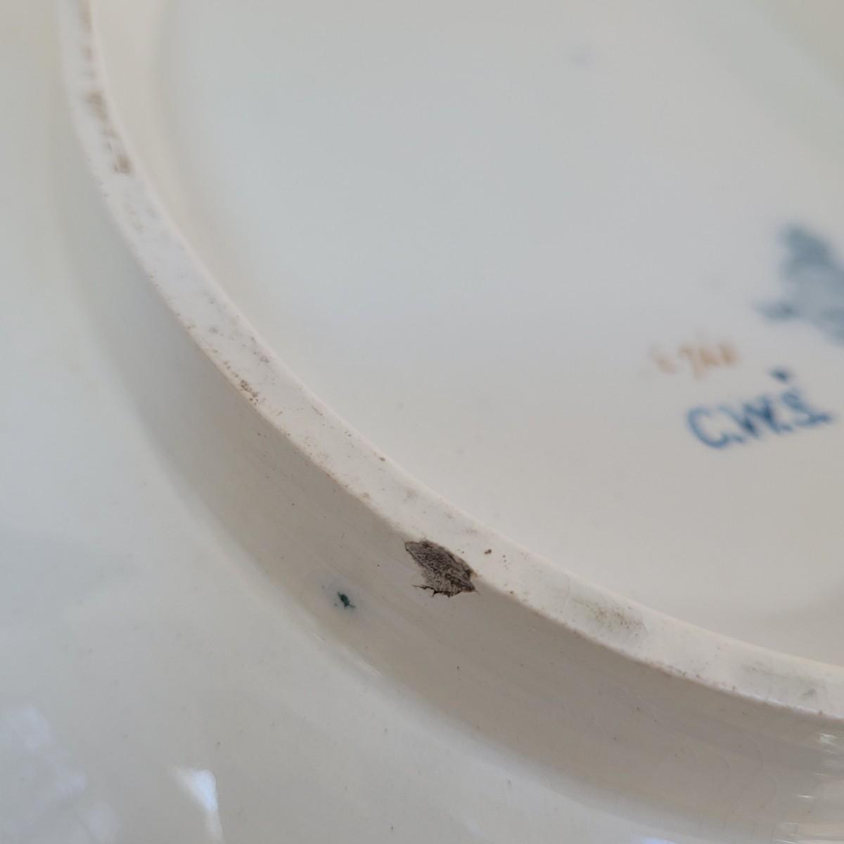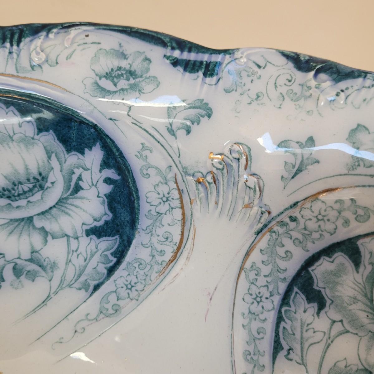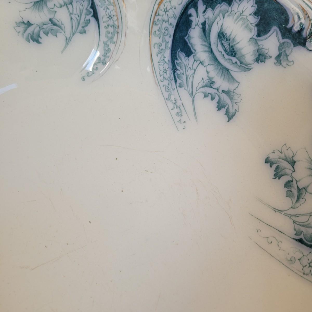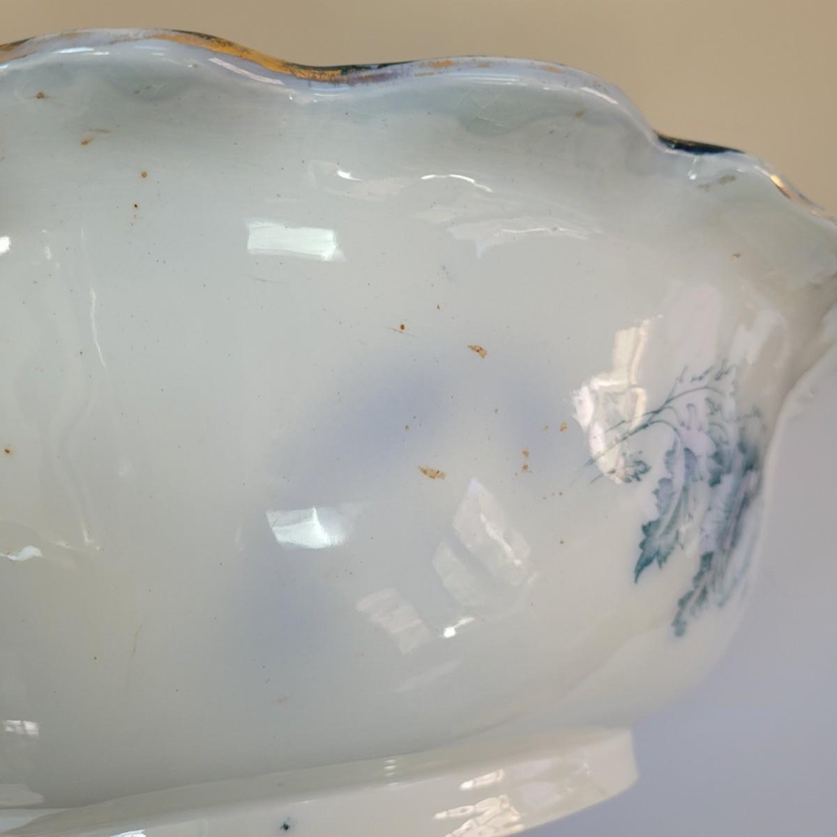James Kent Old Foley Longton blue floral large pitcher and bowl. Raised floral relief with gold colored painted accent throughout. Chipping in ceramic and paint in some areas (see photos). Pitcher measures approximately 10"d x 13". Shipping available.
