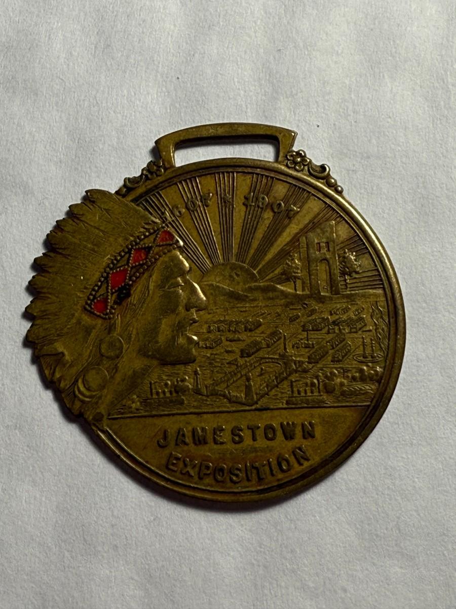 Vintage Jamestown Ter-Centennial 1607-1907 Exposition Pocket Watch Fob Medal as Pictured. $5 DOMESTIC SHIPPING.