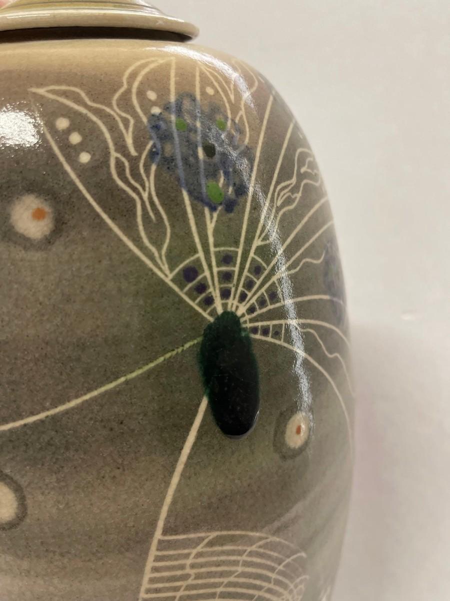 Vintage Jamie Davis ceramic jar with lid. 17 inches tall. Excellent condition.