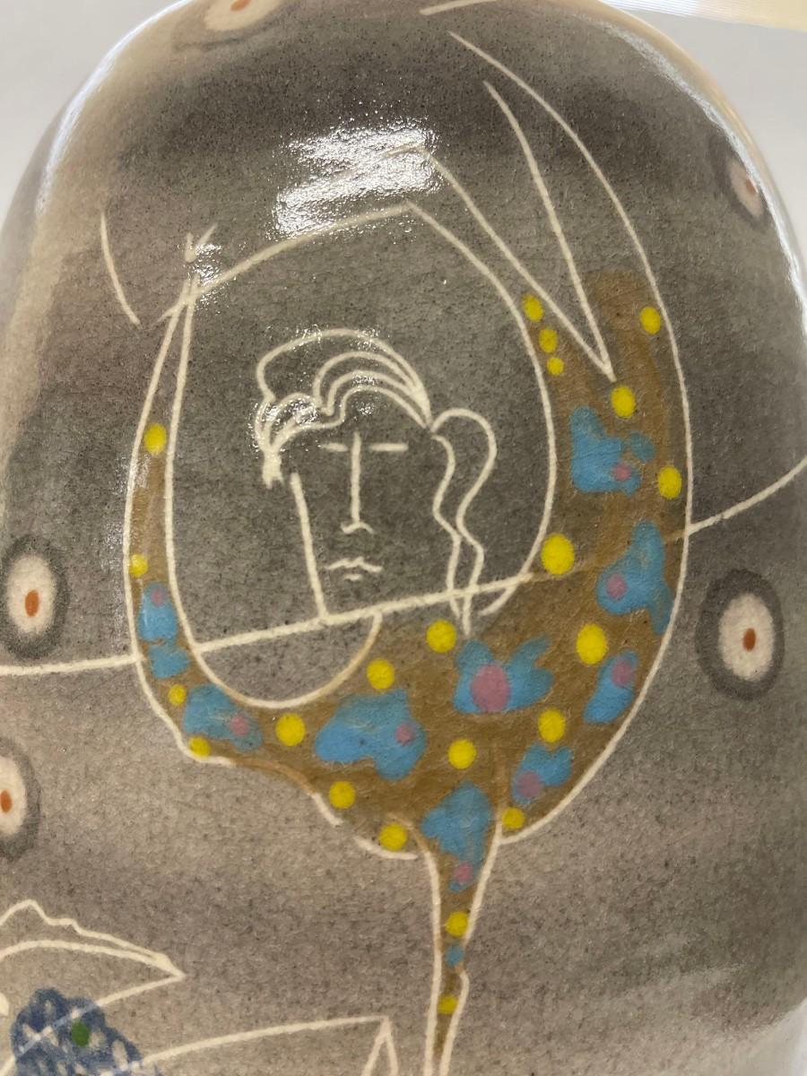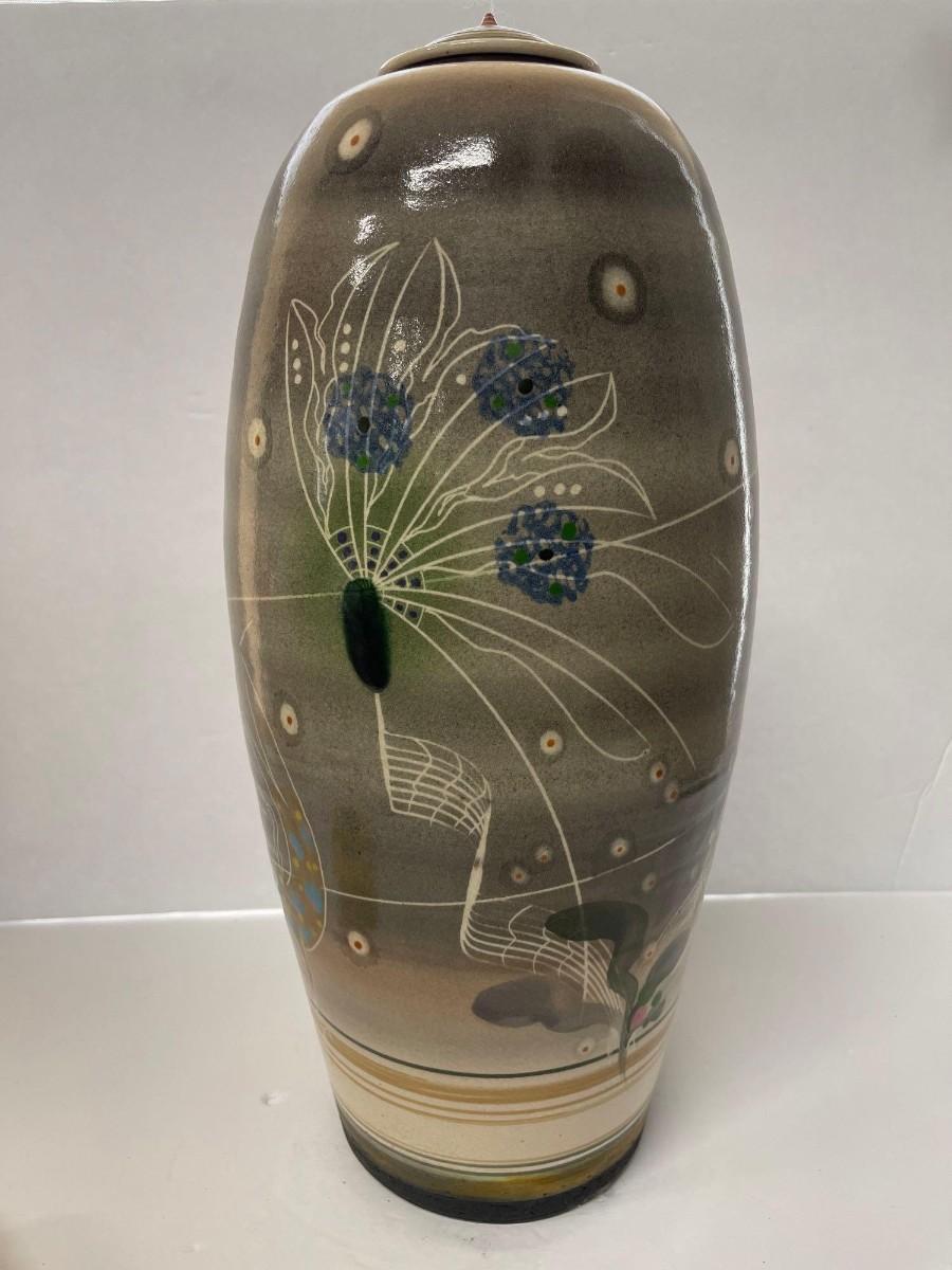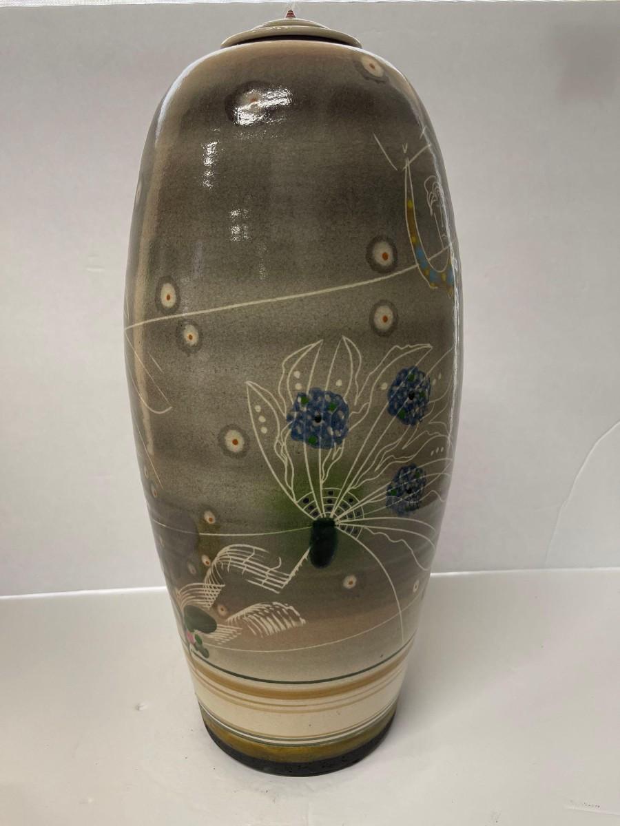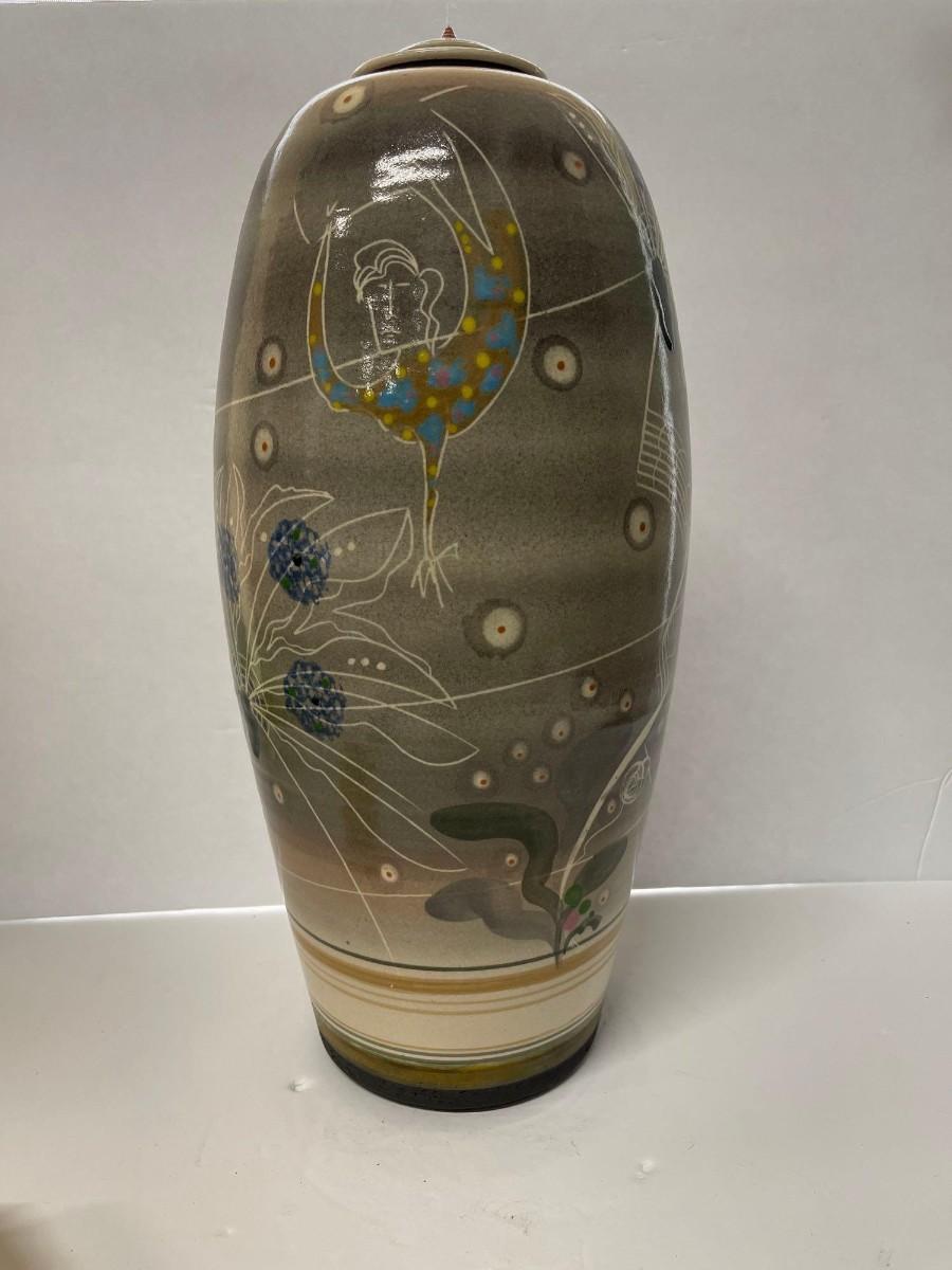 <p>Vintage Jamie Davis ceramic jar with lid. 17 inches tall. Excellent condition.</p>
