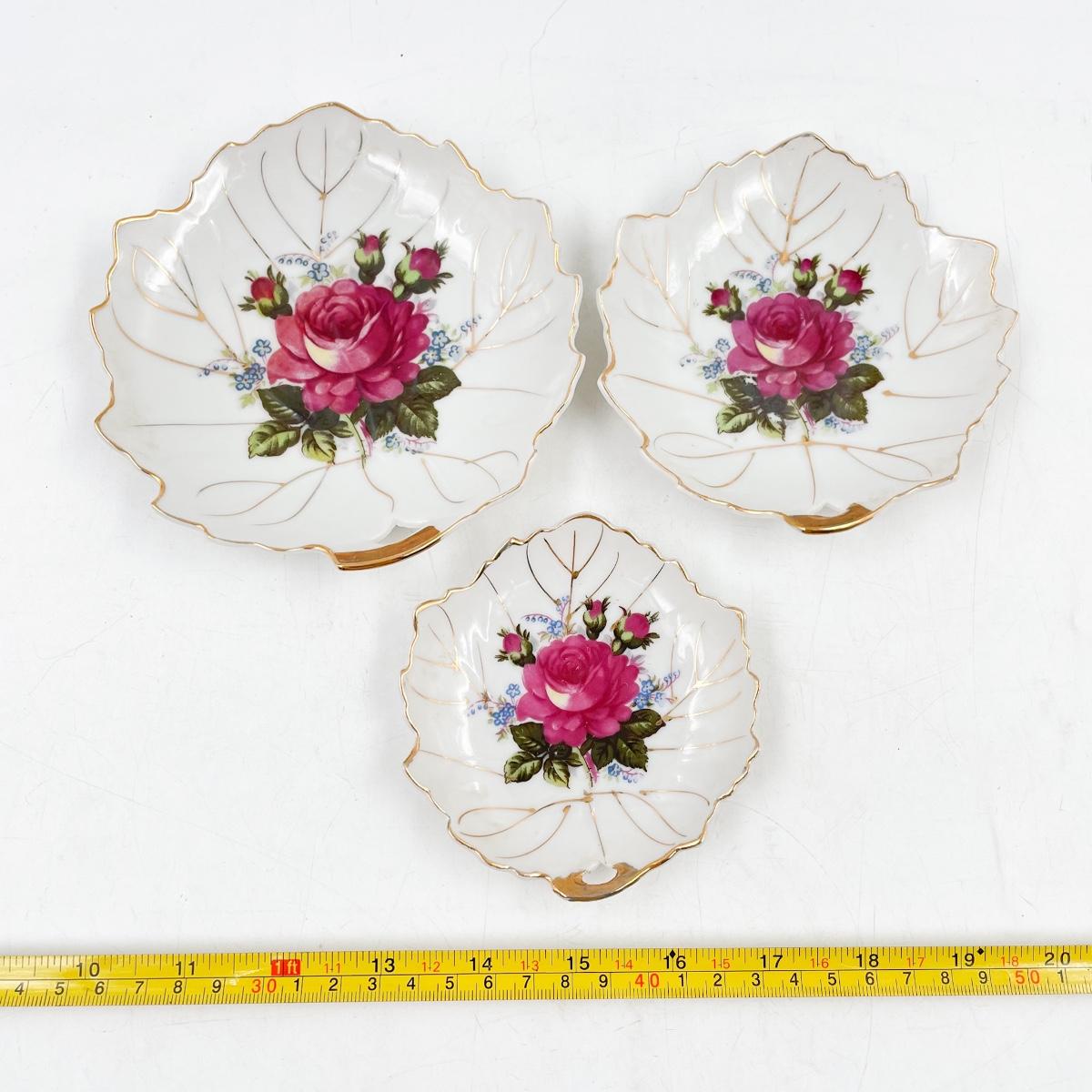VINTAGE JAPAN 4”-6” ROSE LEAF CHINA PLATE SET