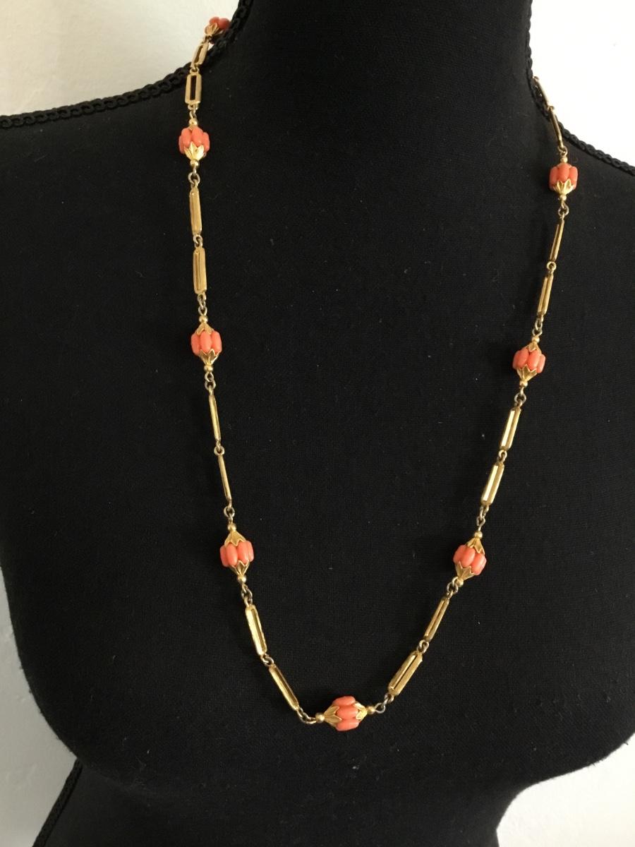 Vintage, Japan, bow, coral, gold link, necklace, gold link, necklace, vintage