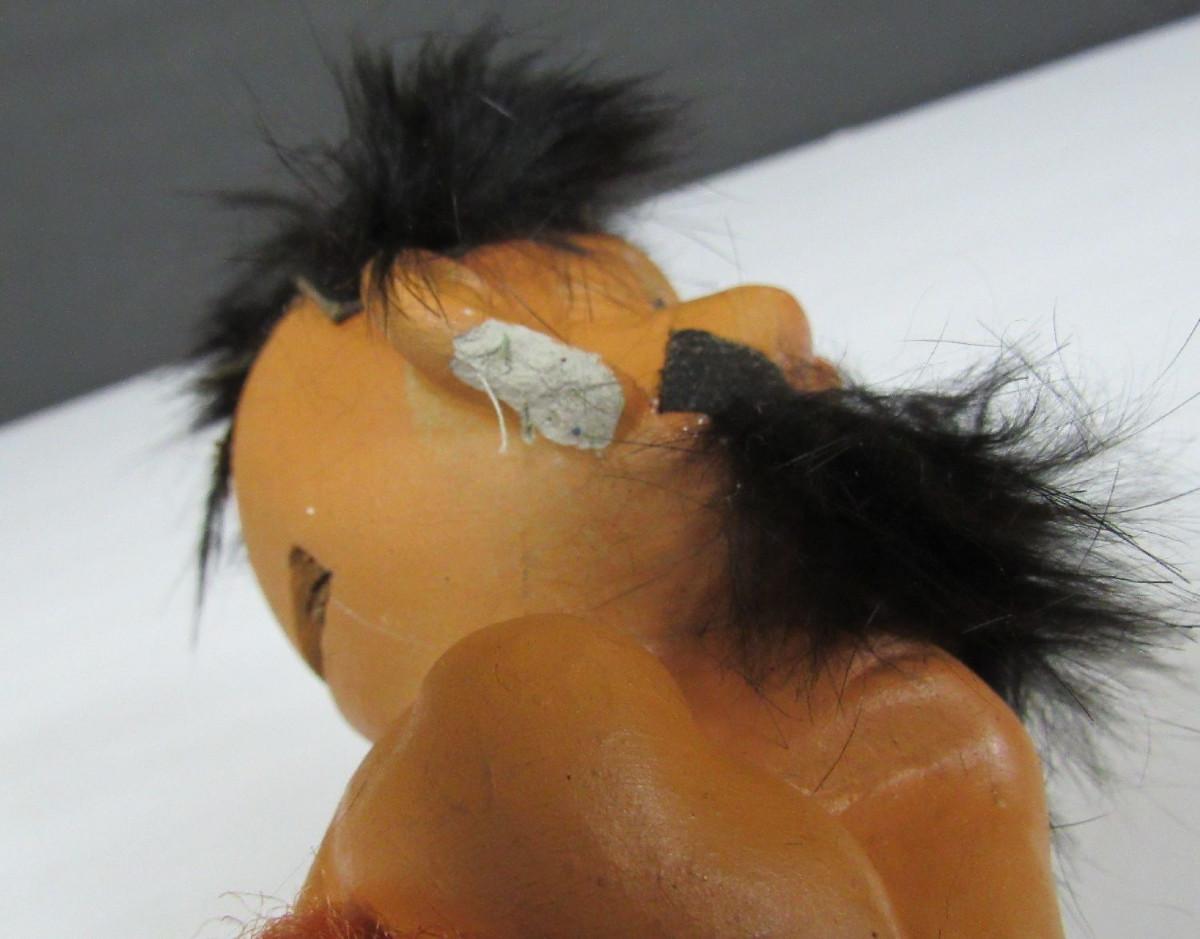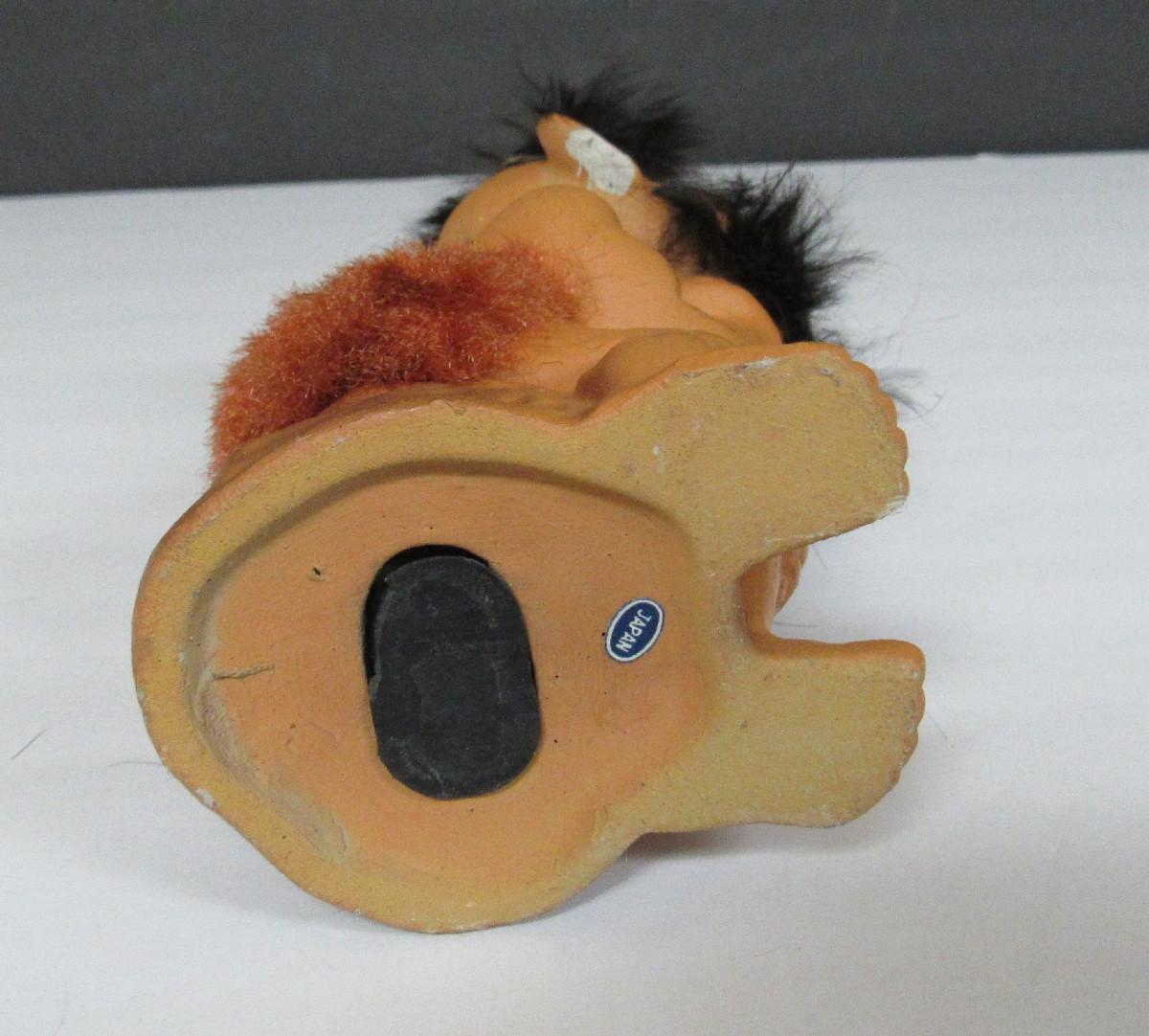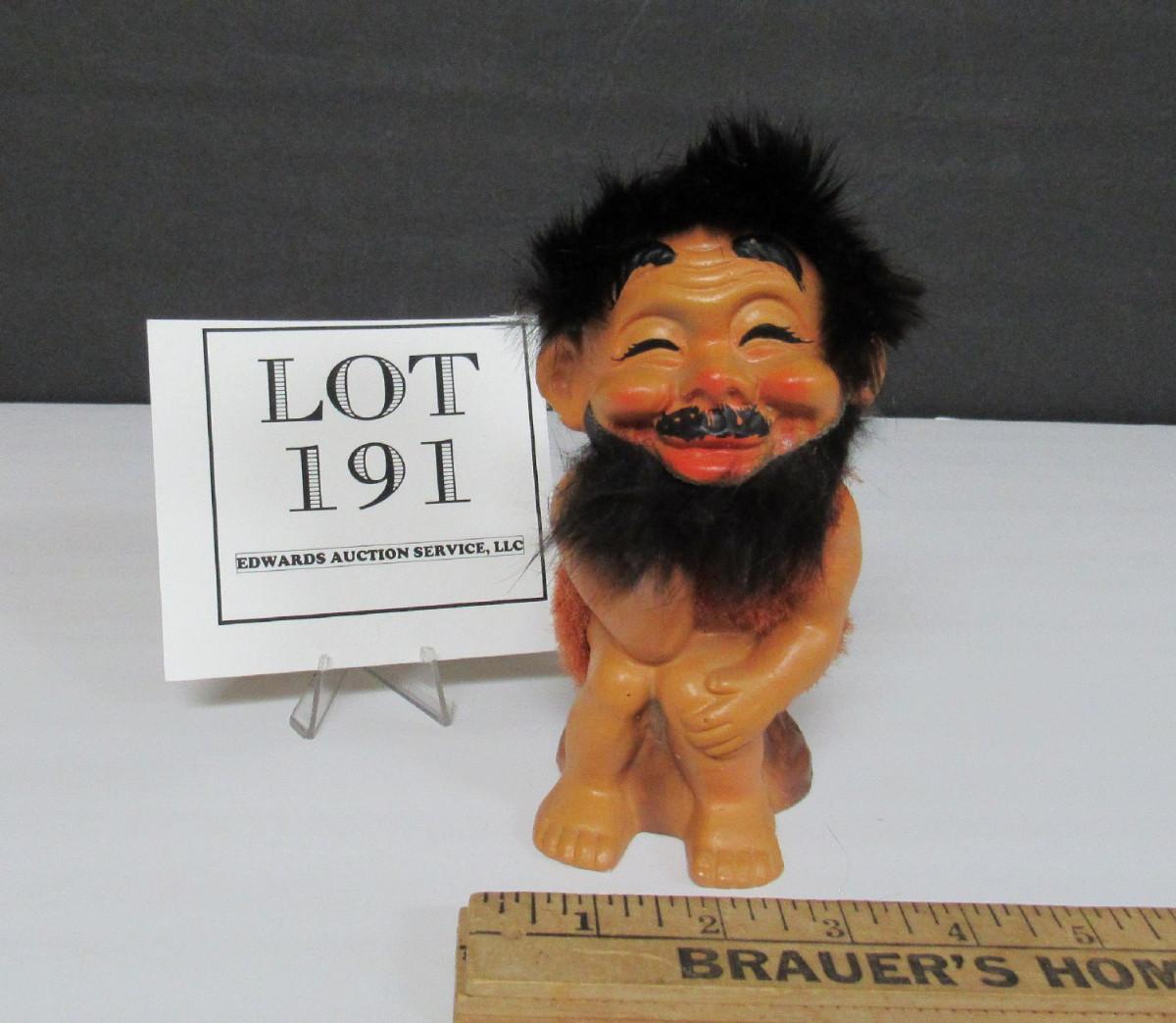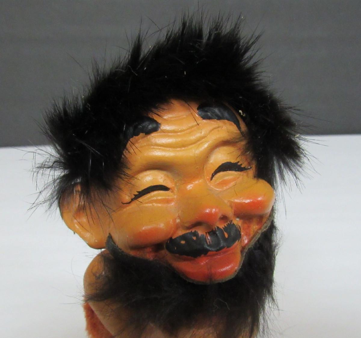 I think he is a combination of plaster and composition, but not sure. Has a chip on back of one ear, otherwise very nice shape. Just too funny. Shipping is available at shipping cost plus $5.00 handling fee on one box, $10.00 handling fee on two boxes, $15.00 handling fee on 3 boxes. Helps cover shipping materials and labor cost.