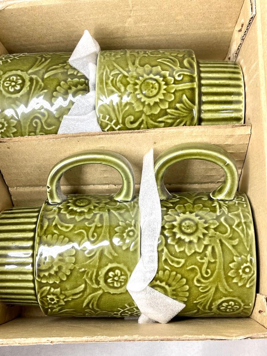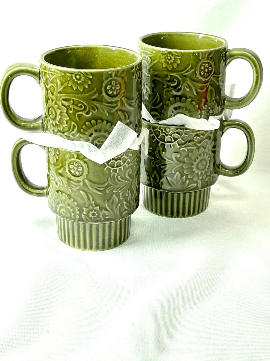 What a great avocado green to add some greatness to your coffee corner and kitchen! These have never been used but have been in storage so you will need to wash them. Great mugs for you or to gift! Rare to find such a set in new condition!