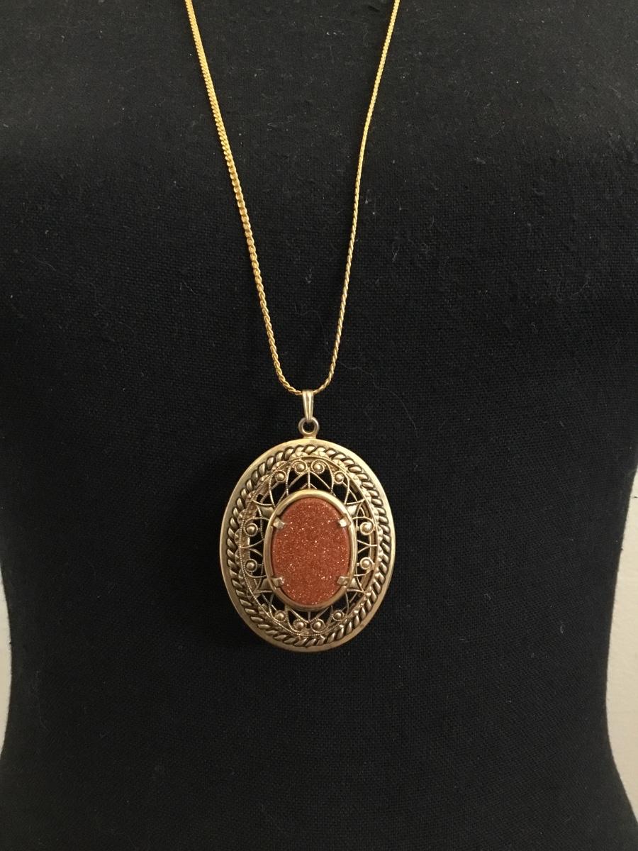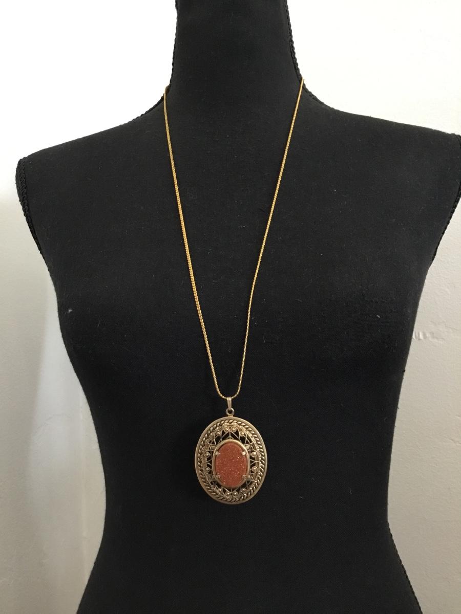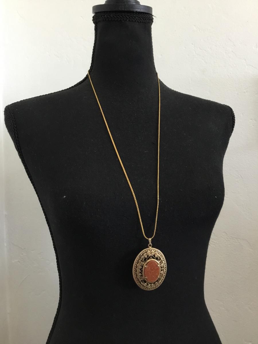 Vintage Japan, gold, toned, stone pendant, necklace, large long