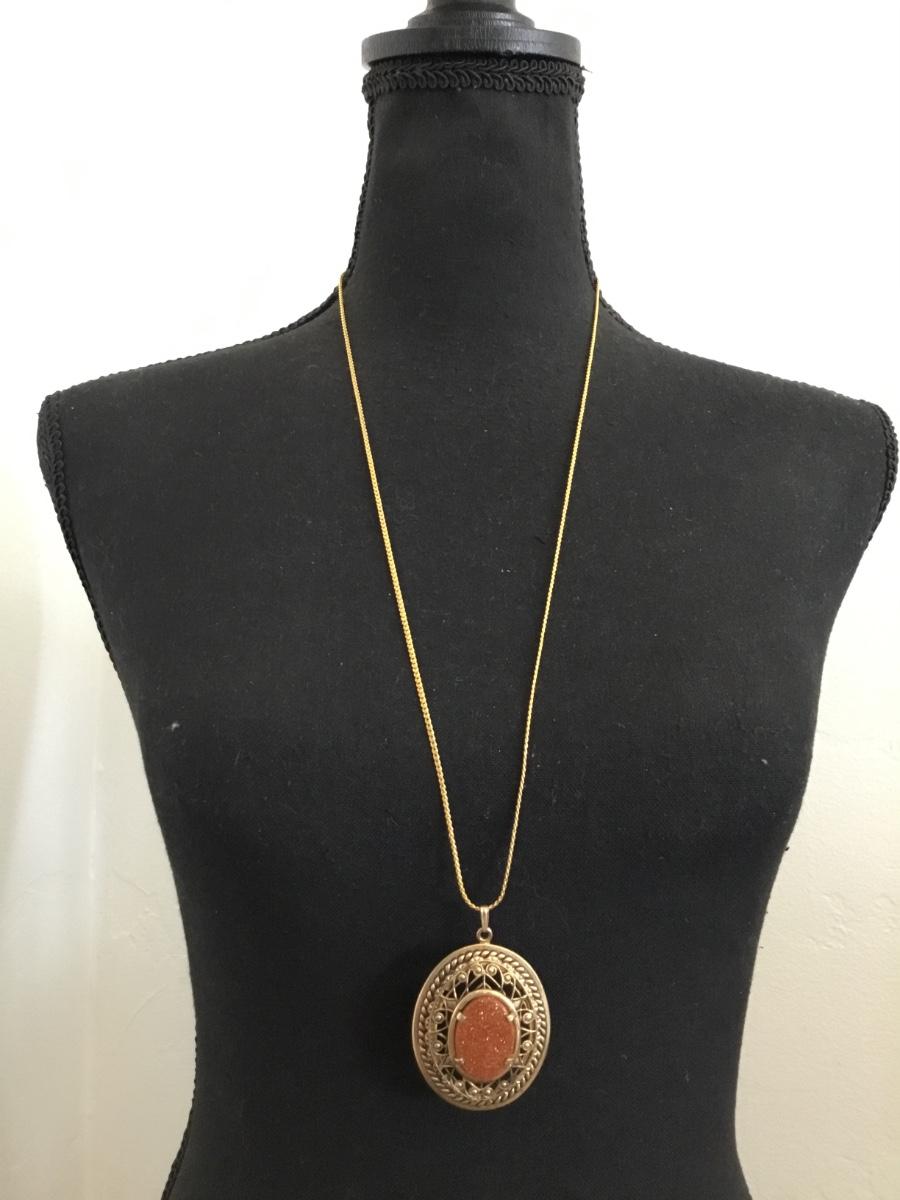 Vintage Japan, gold, toned, stone pendant, necklace, large long