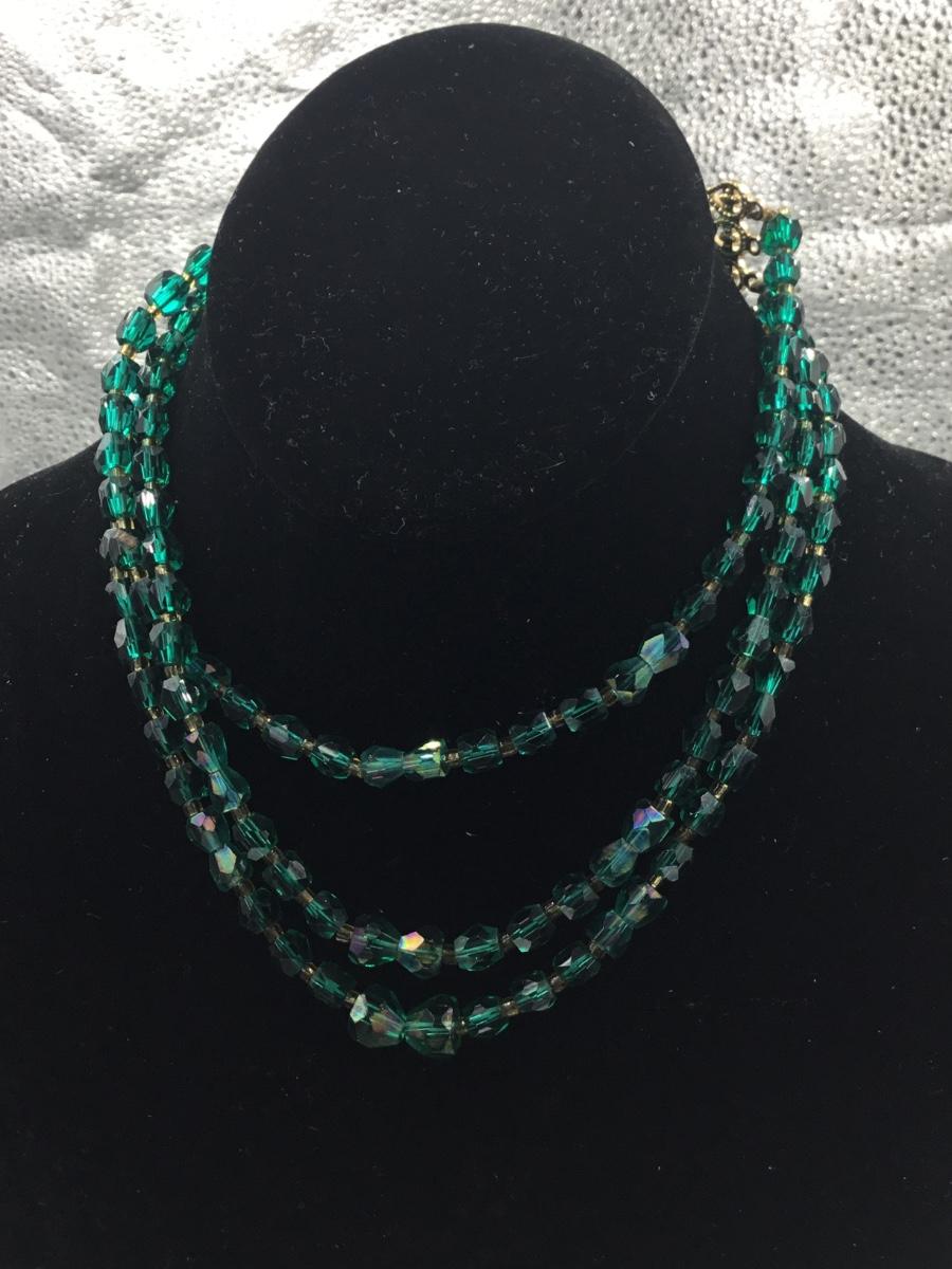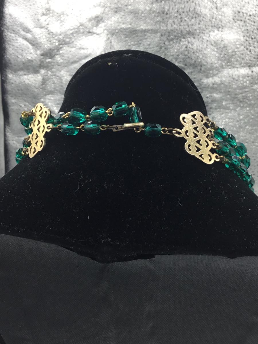Vintage Japan green beaded gold tone necklace
