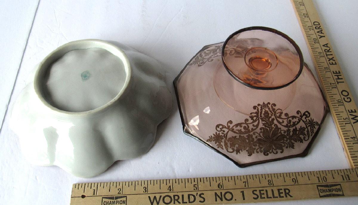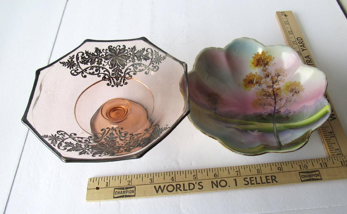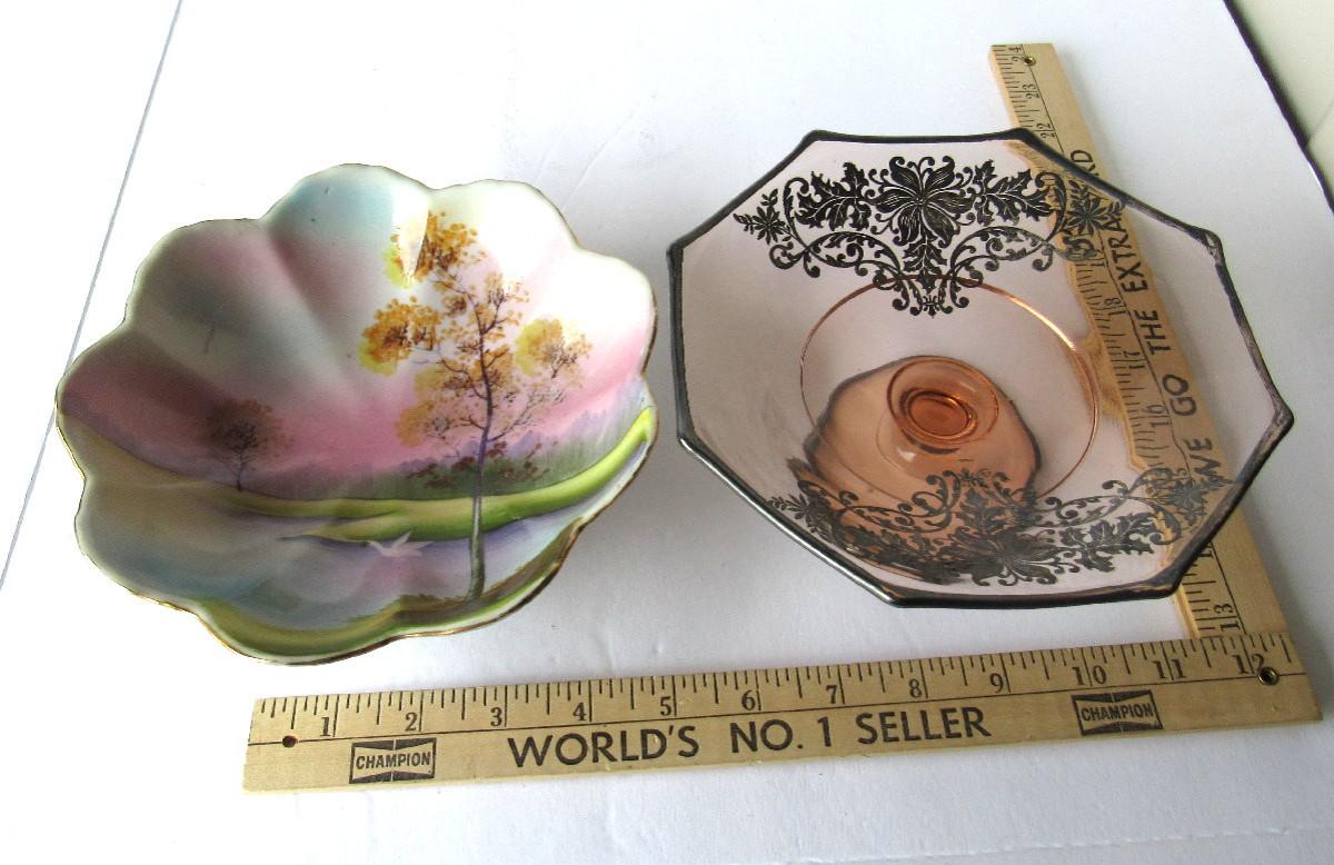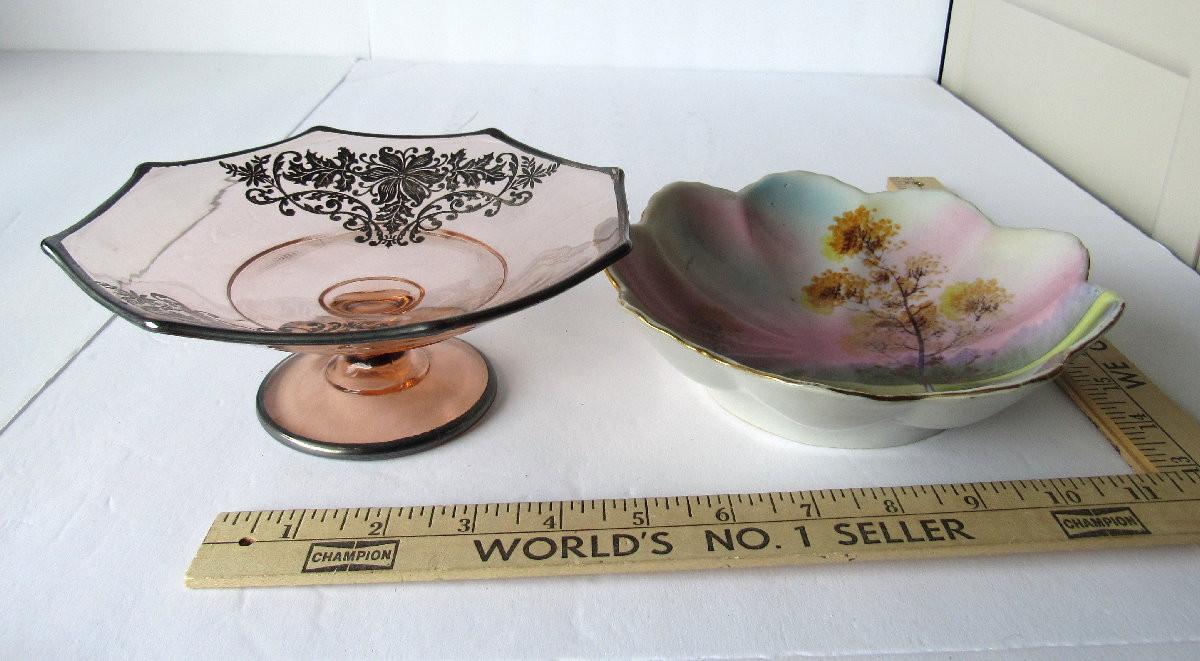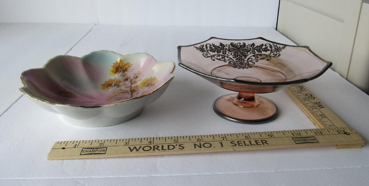 Lot 255: Vintage Japan HP Bowl and Depression Era Pink Compote With Silver Deposit