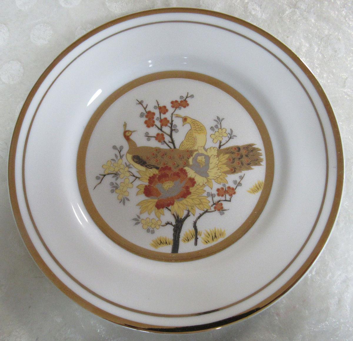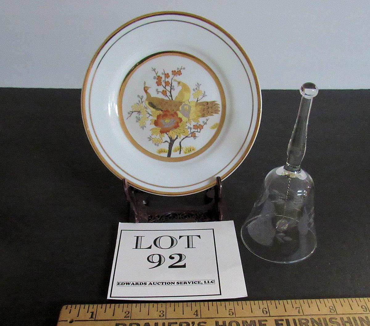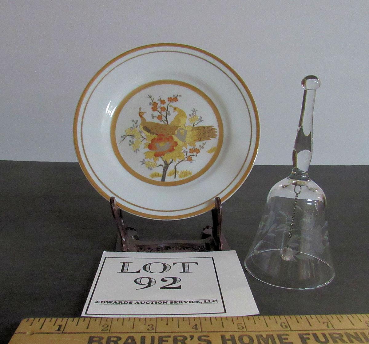 Vintage Japan Peacock Plate and Clear Etched/Cut Glass Bell