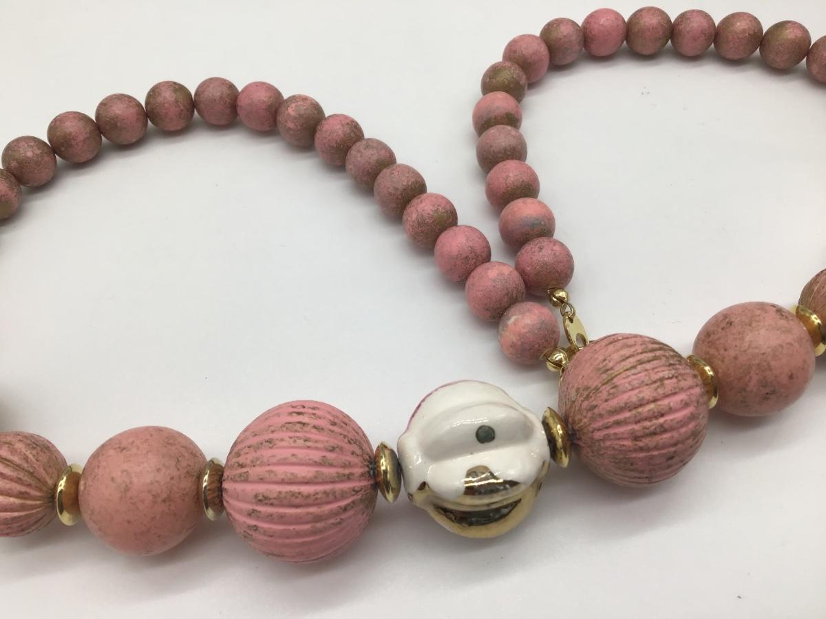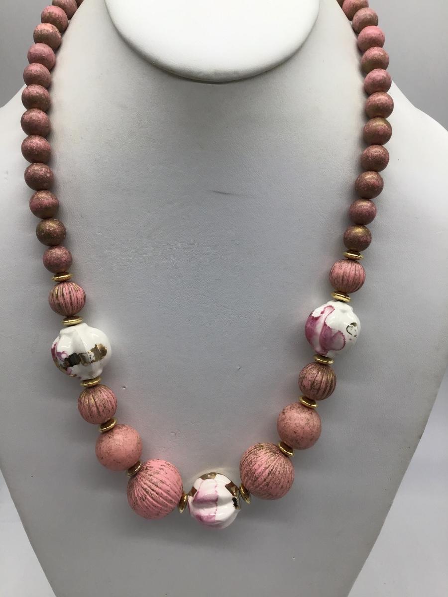 Vintage Japan Pink Gold Splash Beaded Necklace