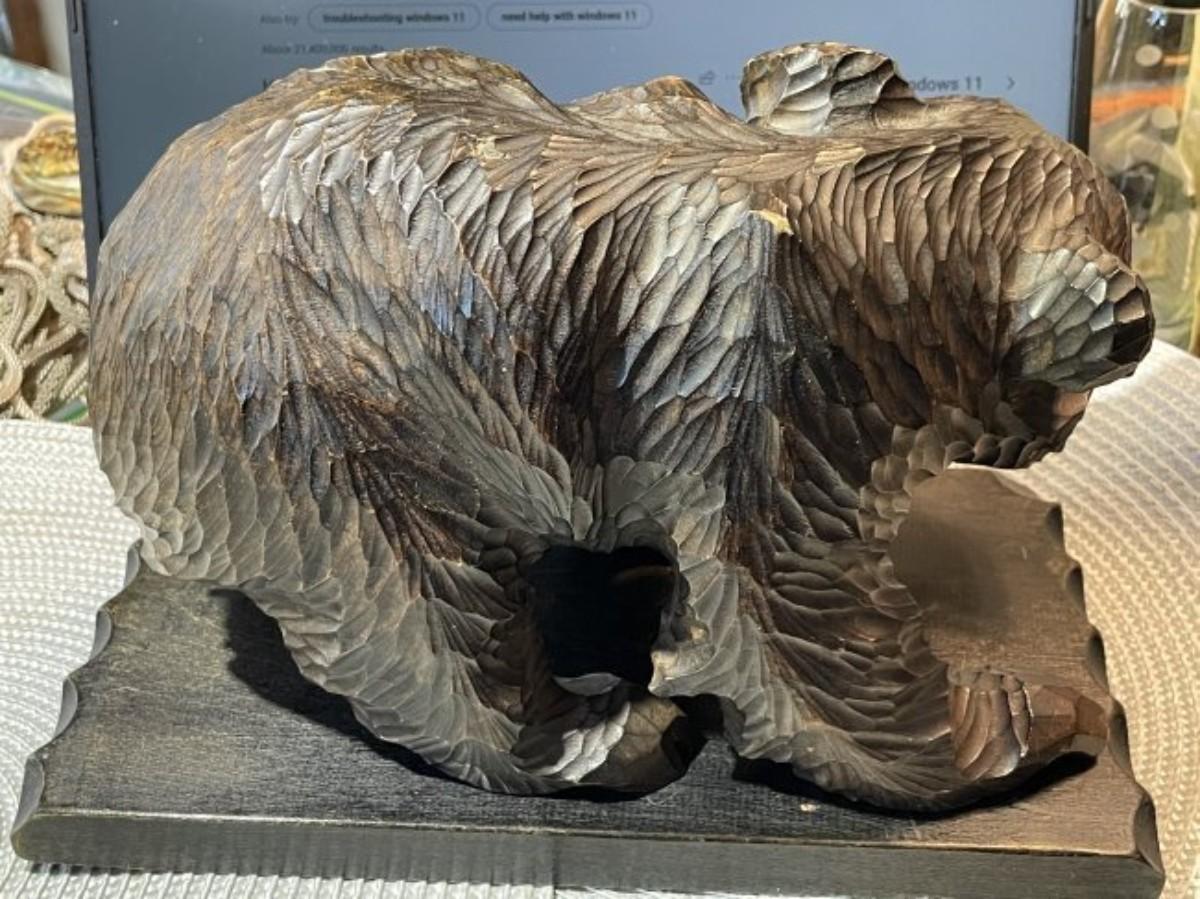 Vintage Japanese Arts & Crafts Hand Carved Bear Figure Signed from Hokkaido Japan (11.5" Long x 6,5" Tall BASE) in VG Preowned Condition from an Estate.