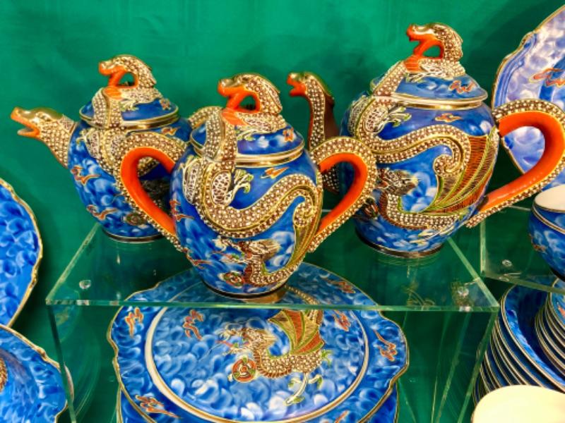 Vintage Japanese Blue Moriage Dragon Ware China Set