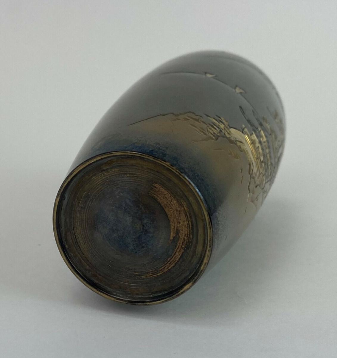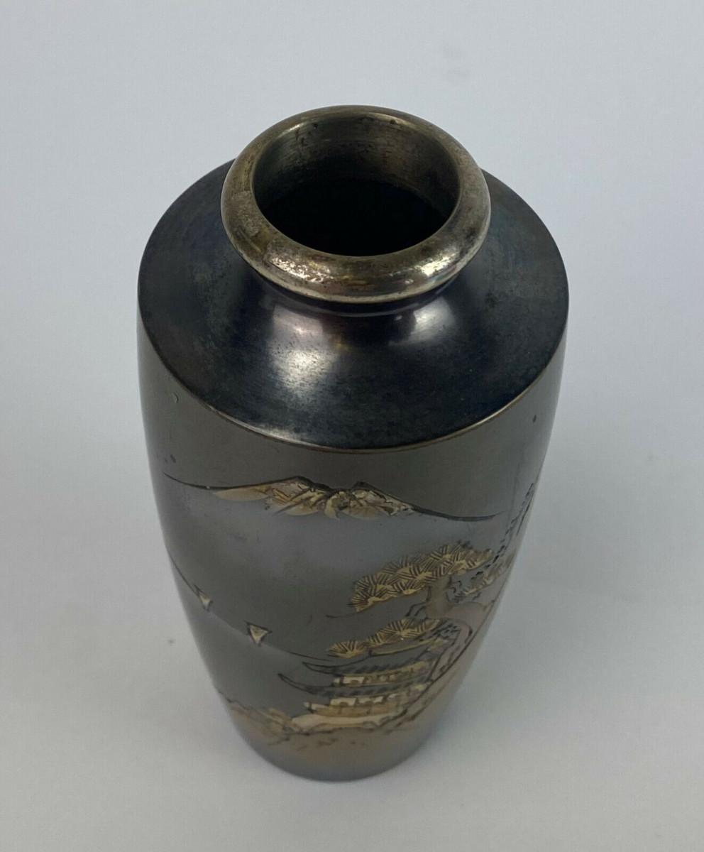 vintage JAPANESE BRONZE MIXED METAL ETCHED 4.5" VASE