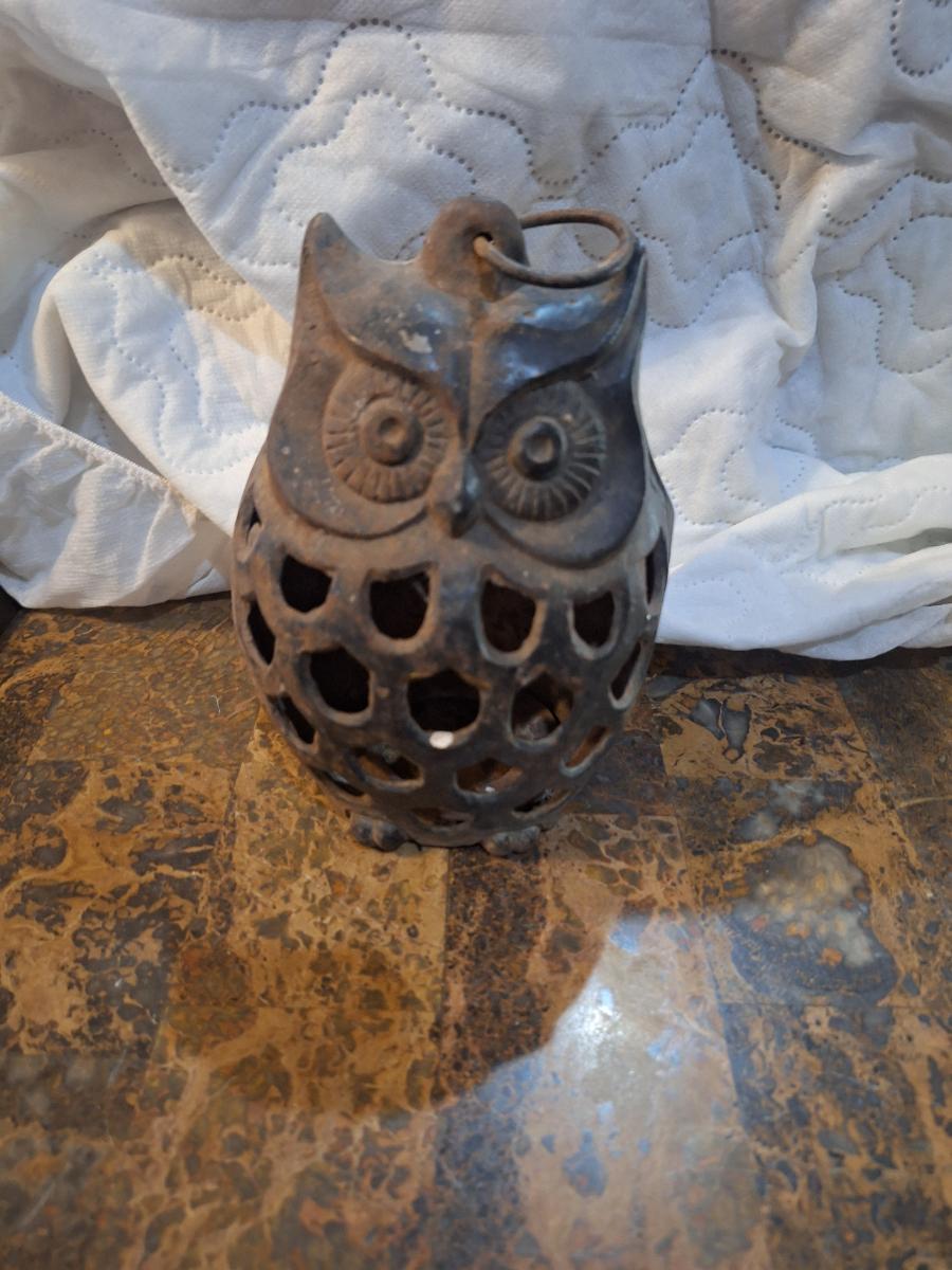 vintage Japanese cast iron owl candle lantern or tea light holder.