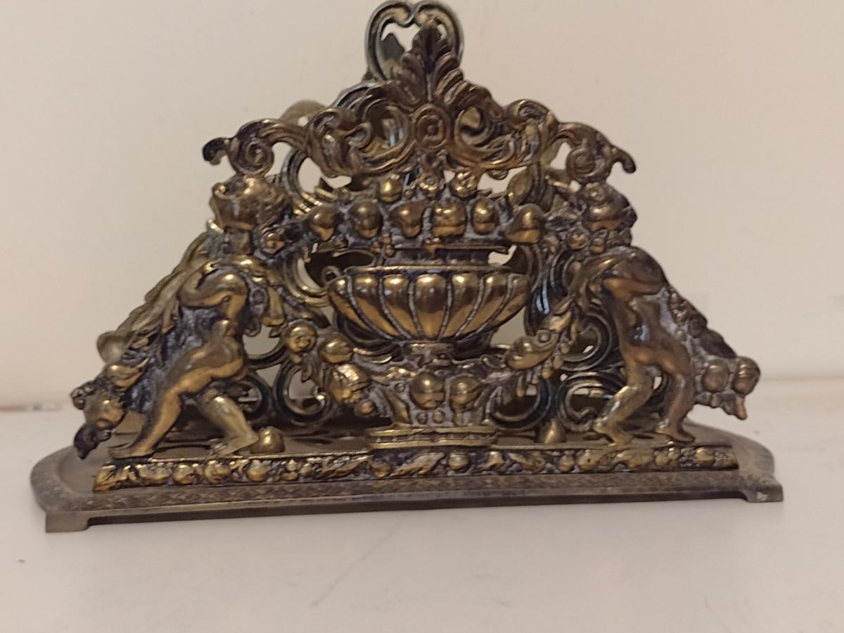 Vintage Japanese Cast Metal Desk/Mail Organizer. Middle support is broken and needs to be reattached- please see all pictures for condition.