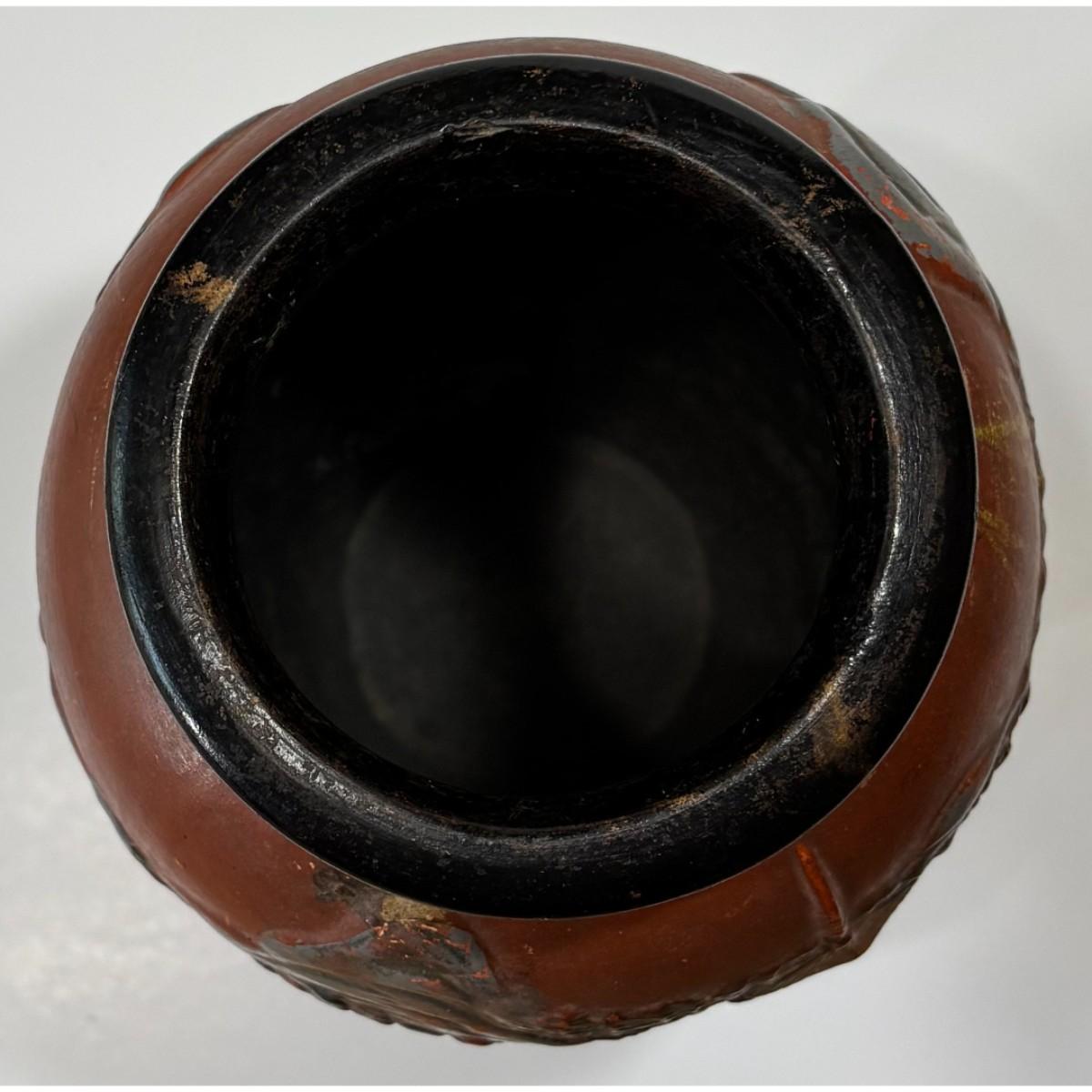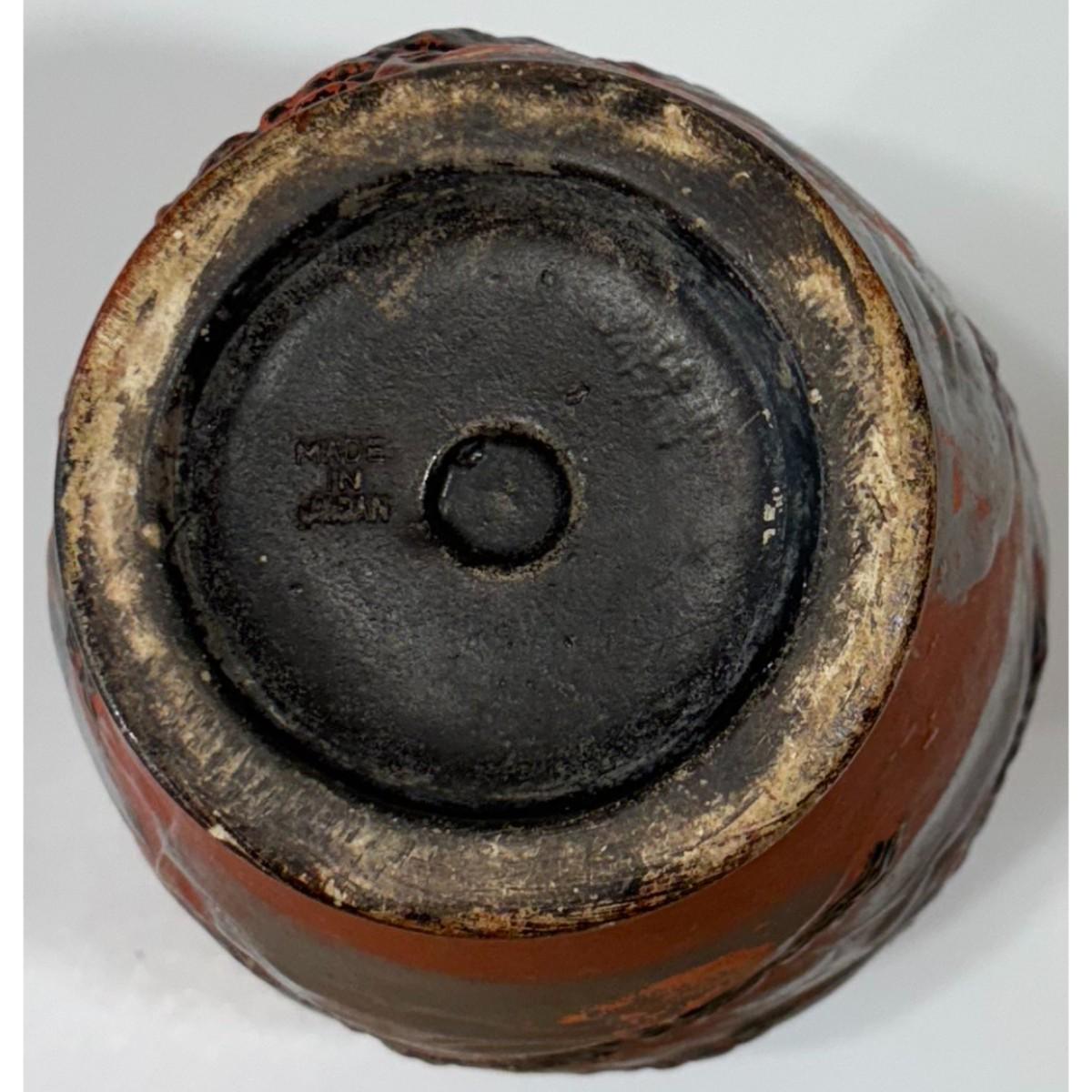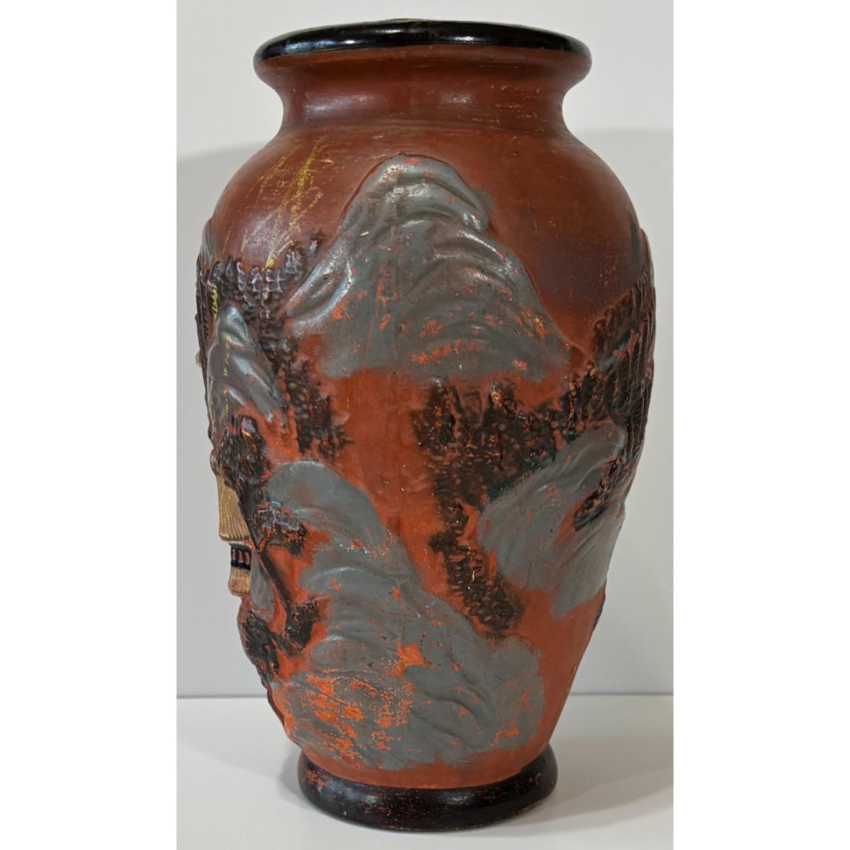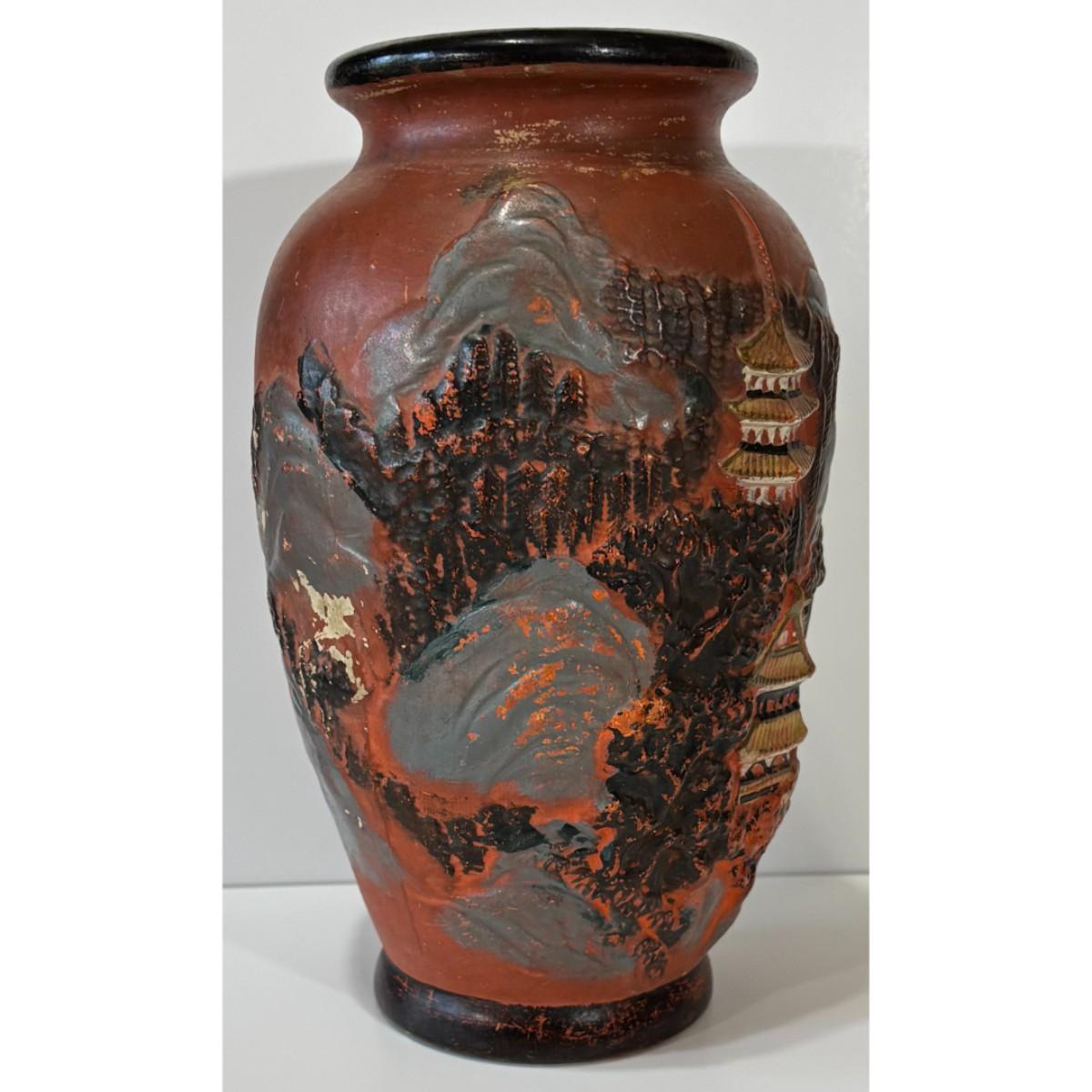 Vintage Japanese Ceramic Vase Scenic Mountains Trees Pagoda Orange Black Gray