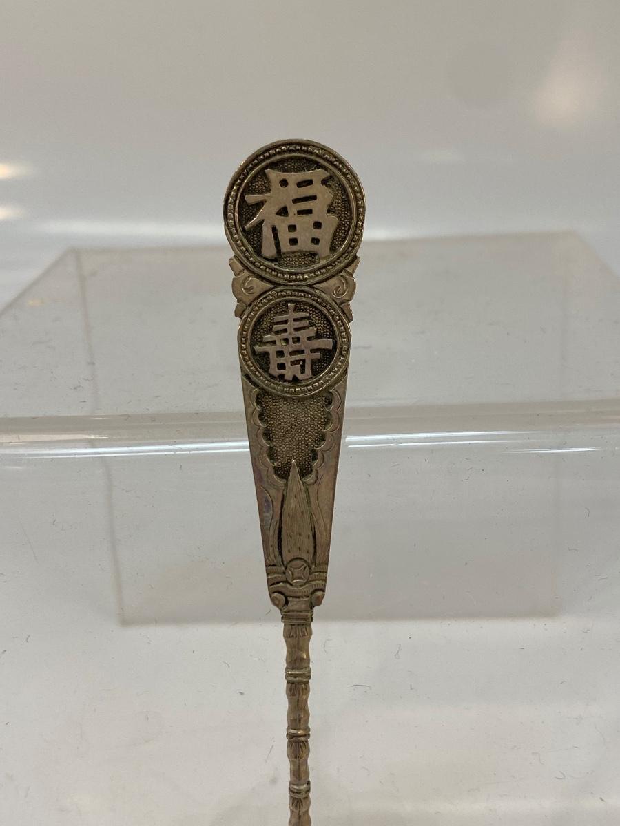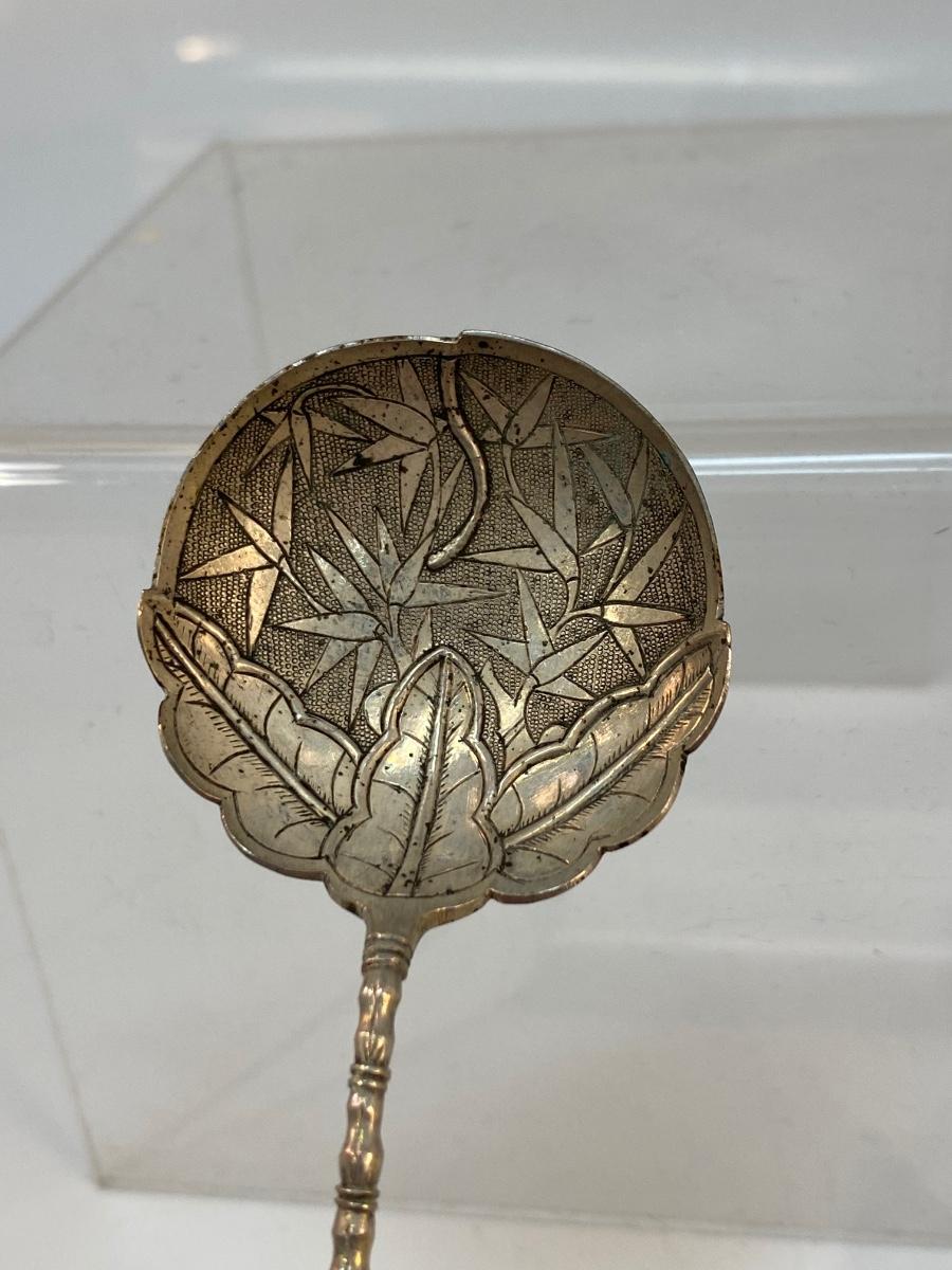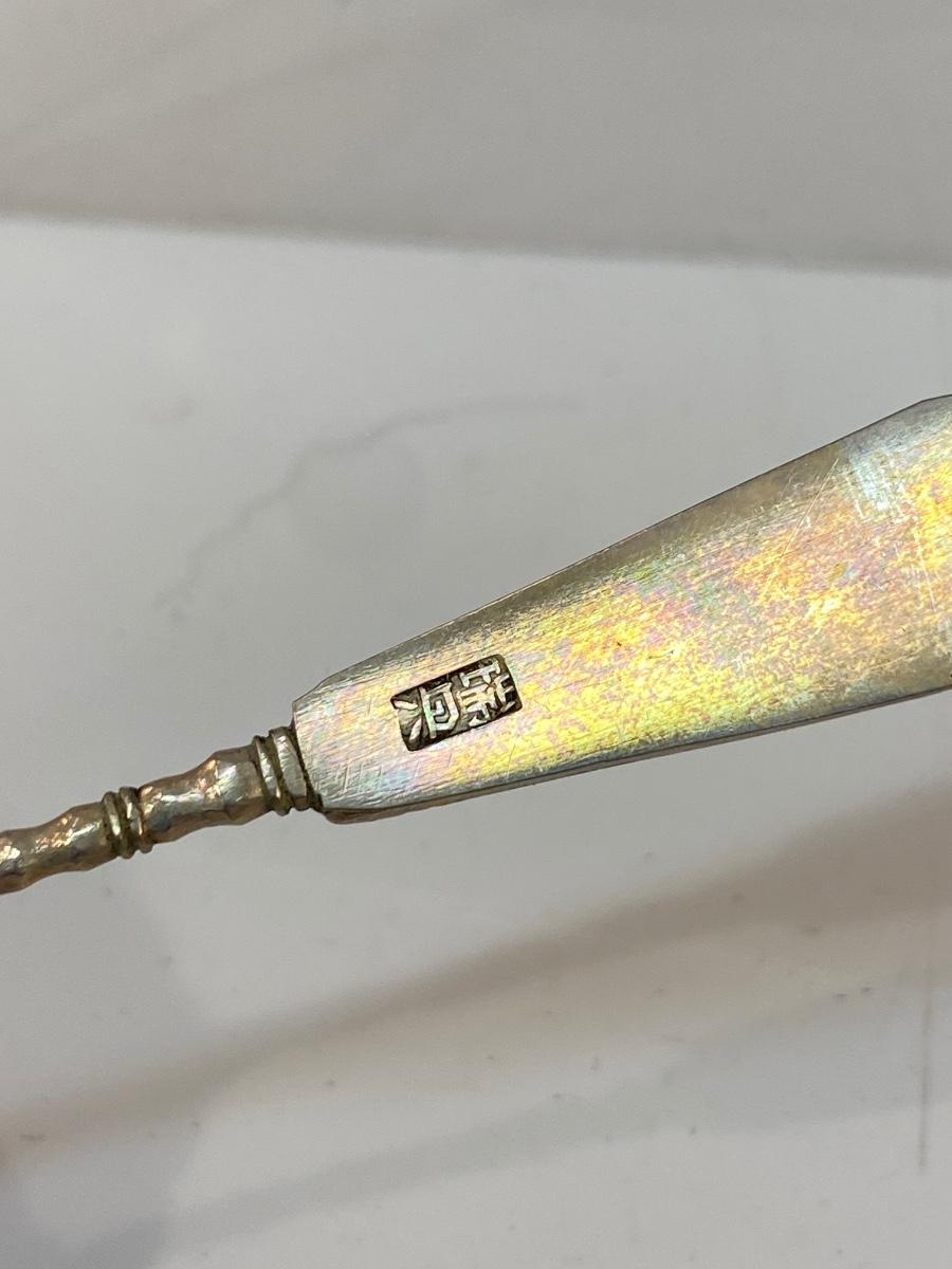 Vintage Japanese Bamboo Collector Spoon. Features lettering and bamboo. No sterling marks but it is stamped in Japanese on back of handle as well.