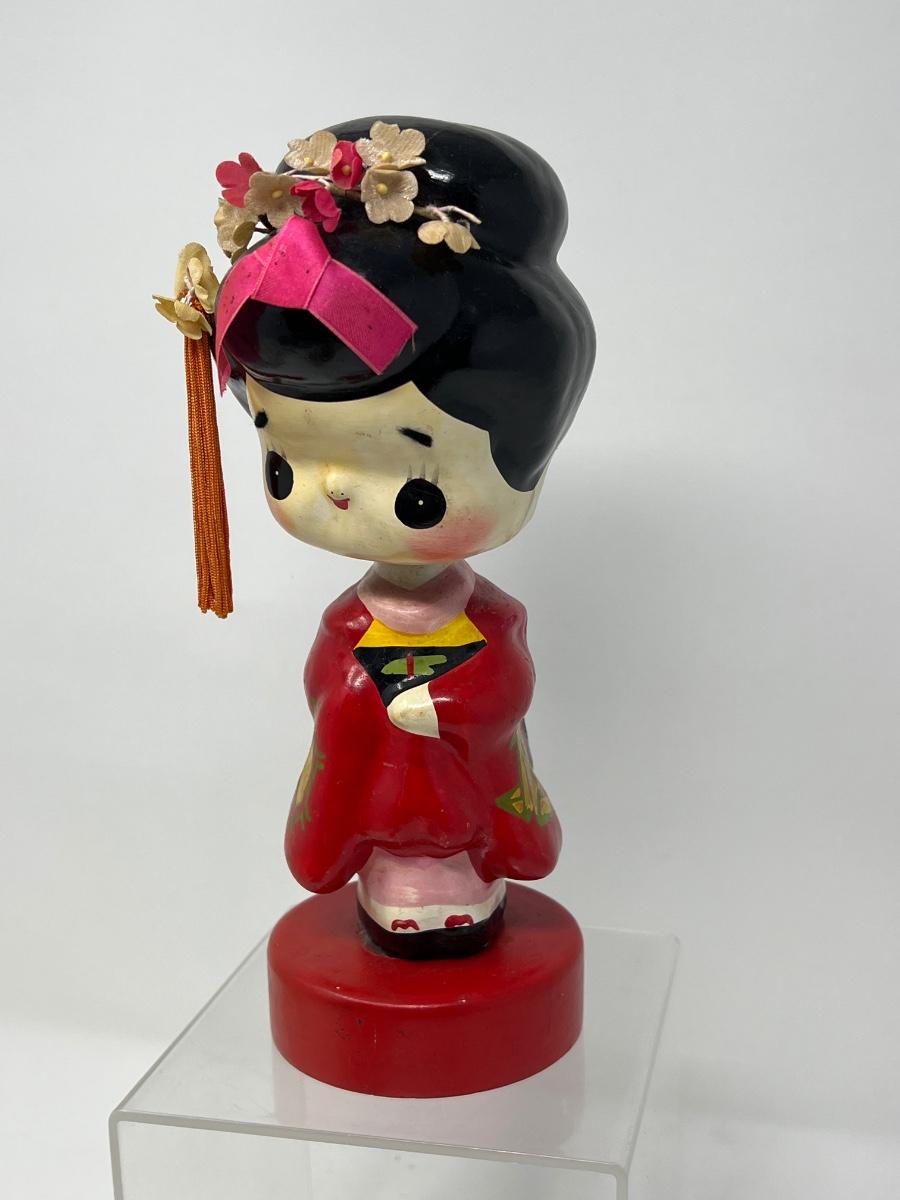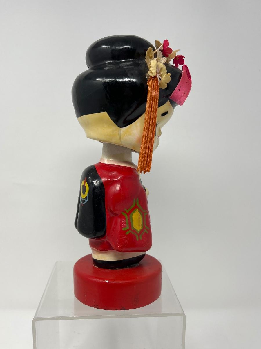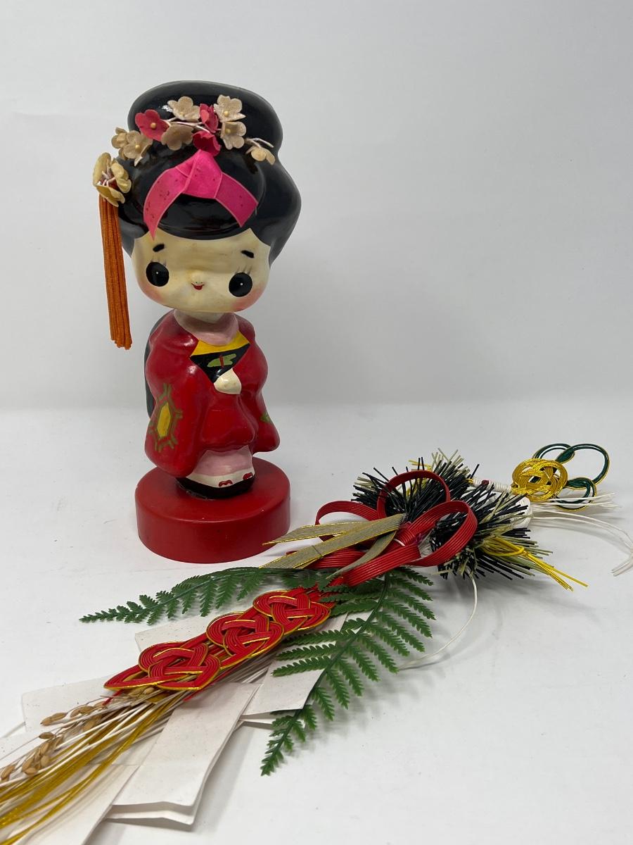 Vintage Japanese Girl Bobblehead & Shimekazan Wall Hanging