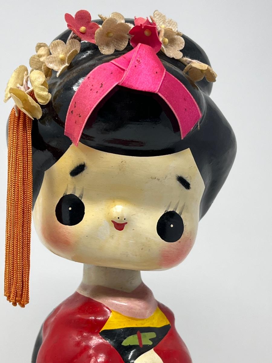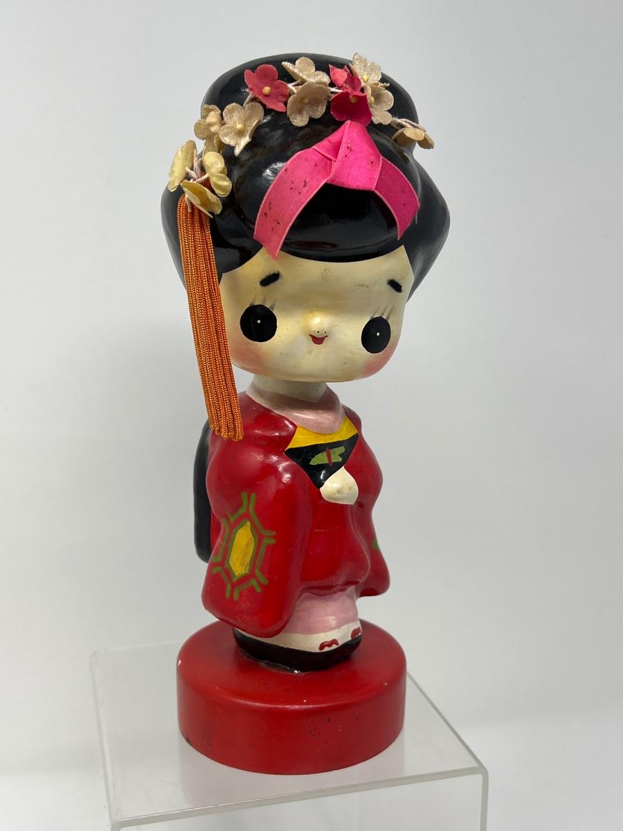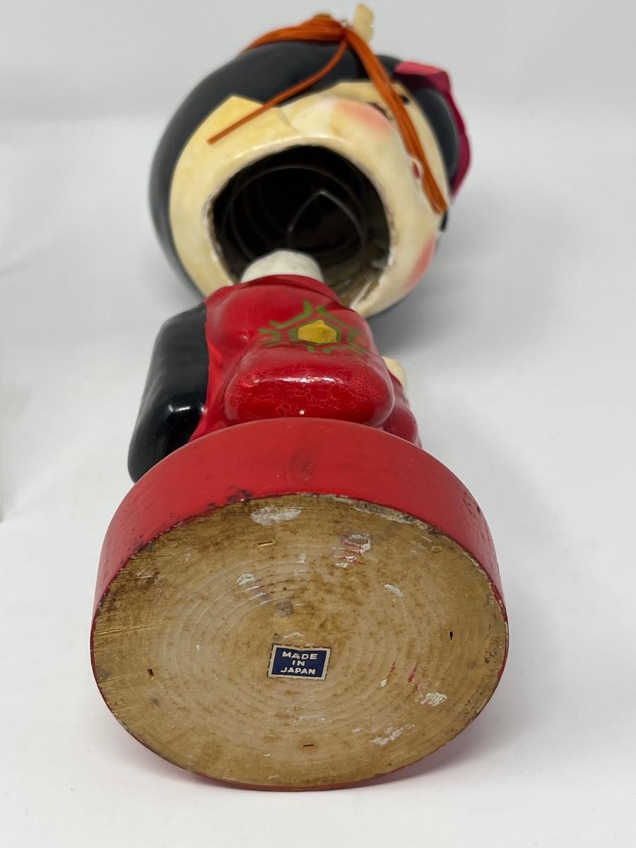 Vintage Japanese Girl Bobblehead & Shimekazan Wall Hanging