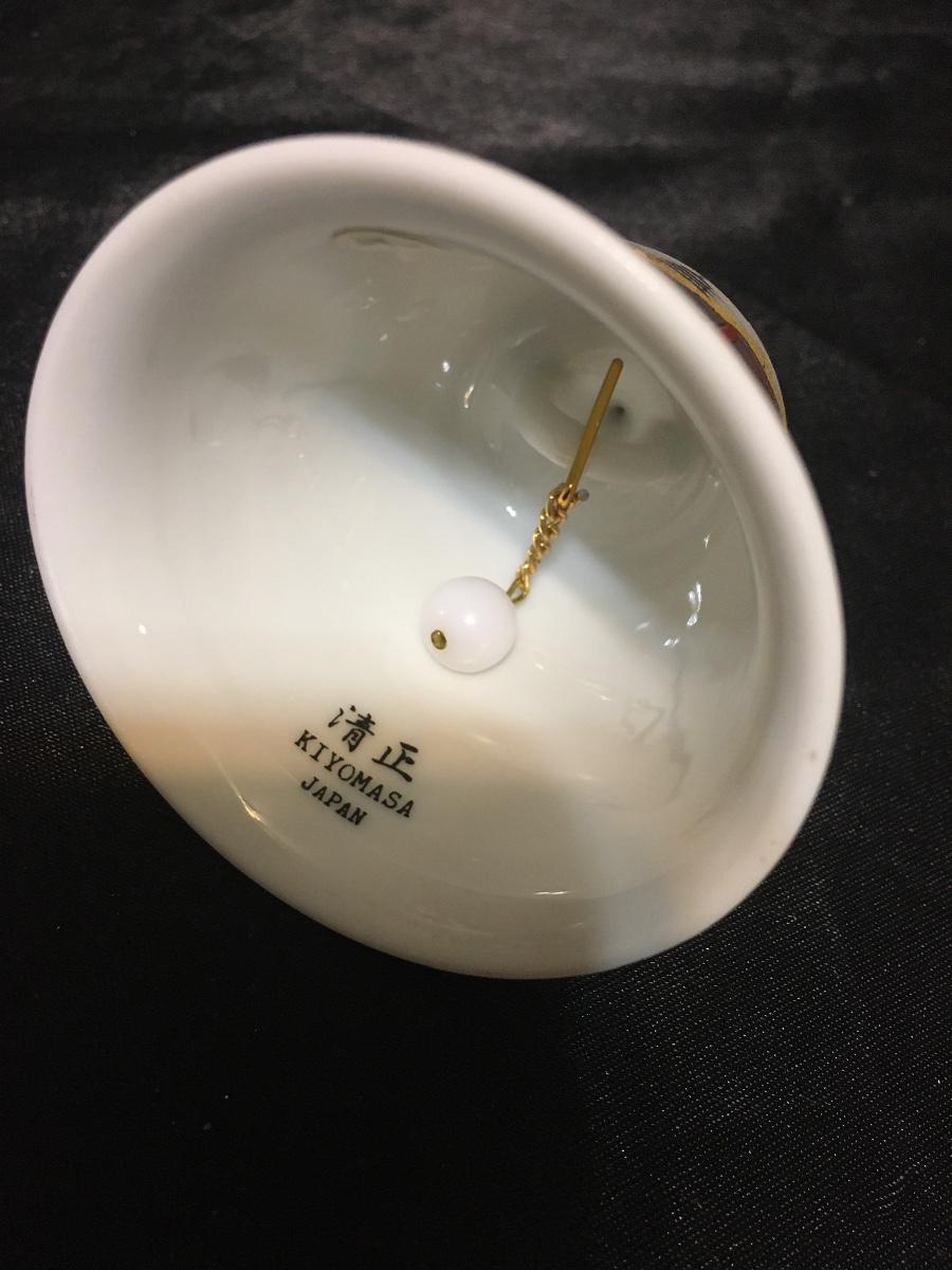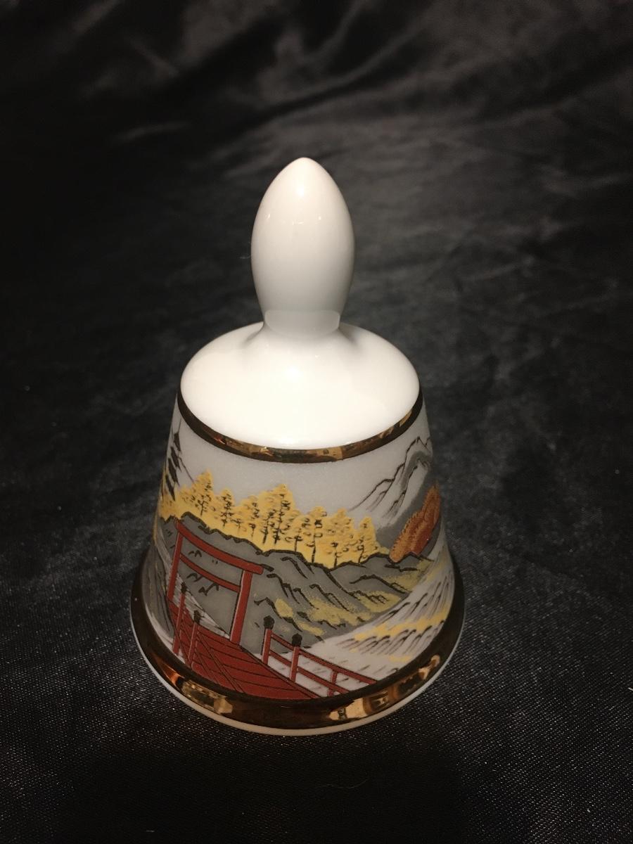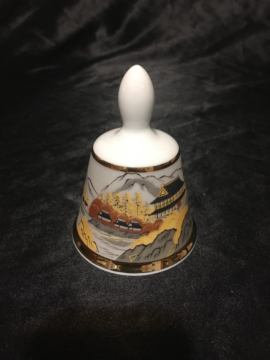 Vintage Japanese Kiyomasa Small Porcelain Bell Asian Motif Gold Tone Accents