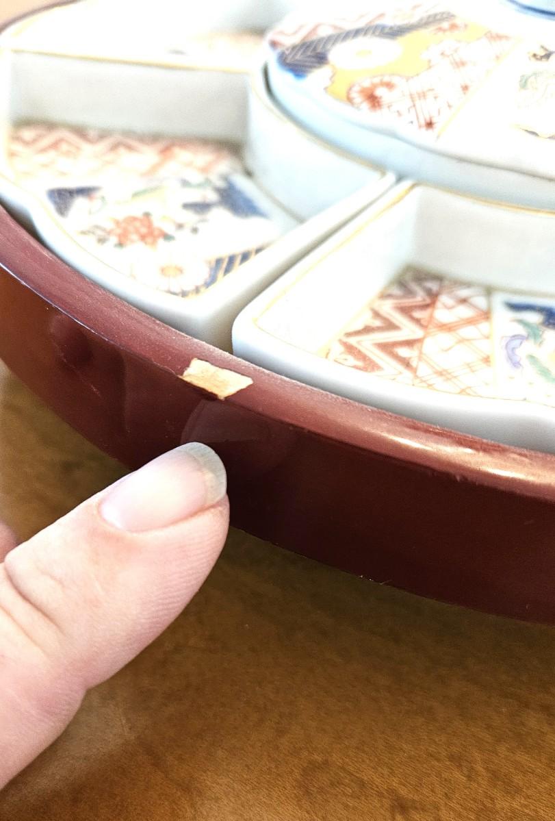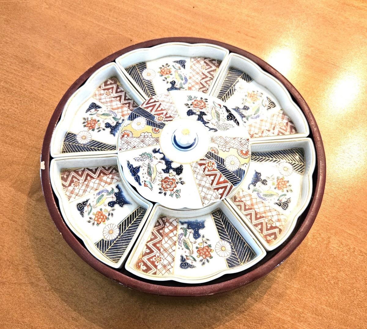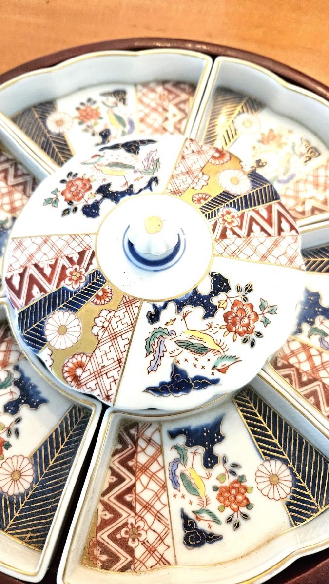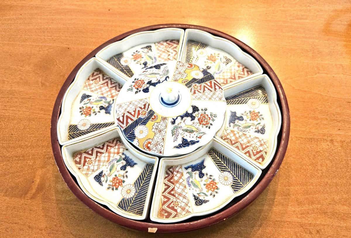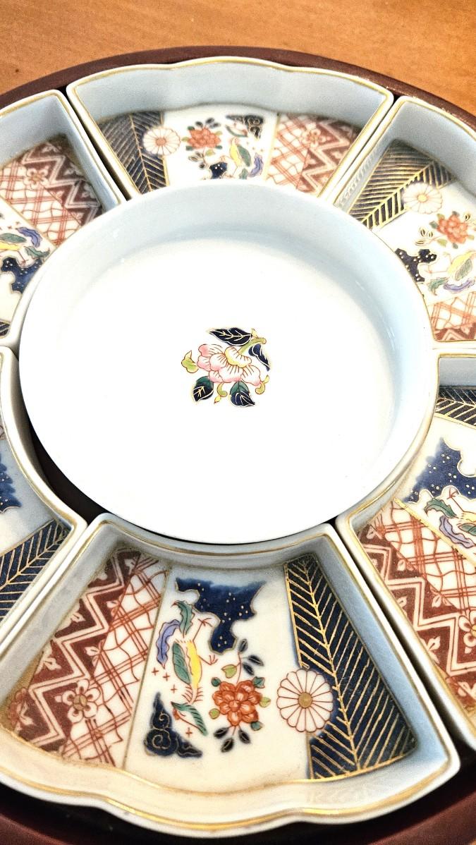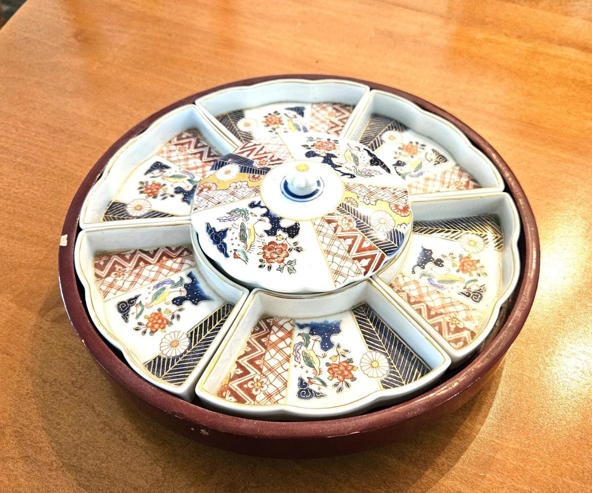 Vintage Japanese Lazy Susan w/ Hand Painted Porcelain