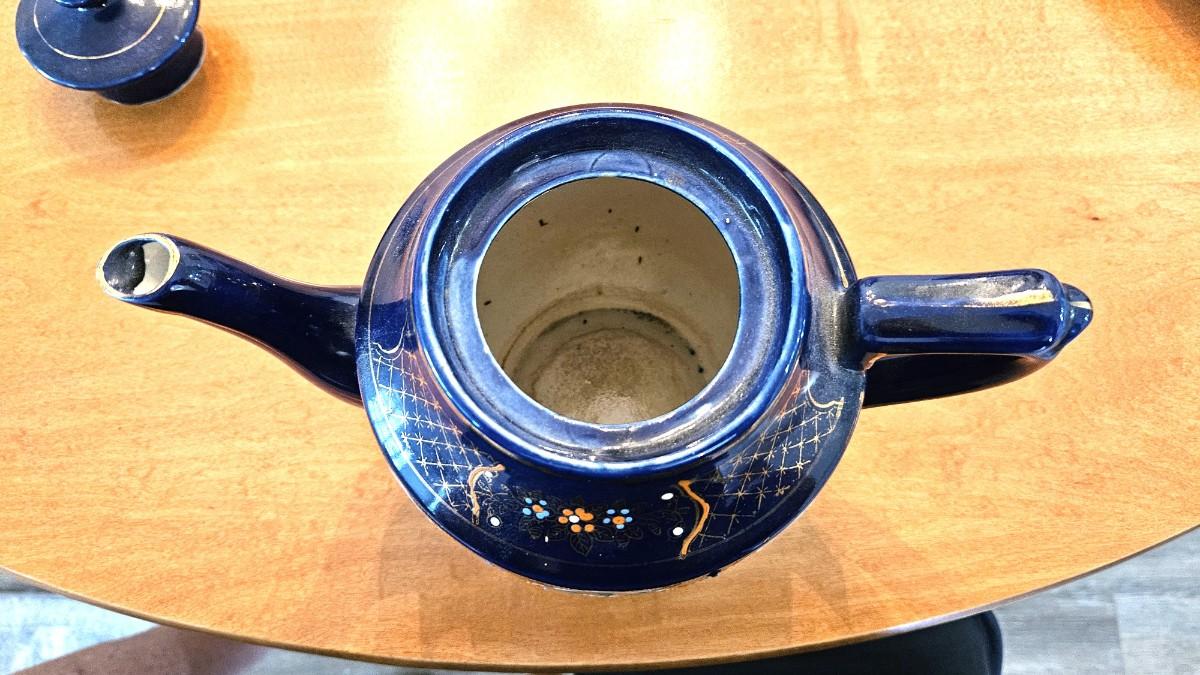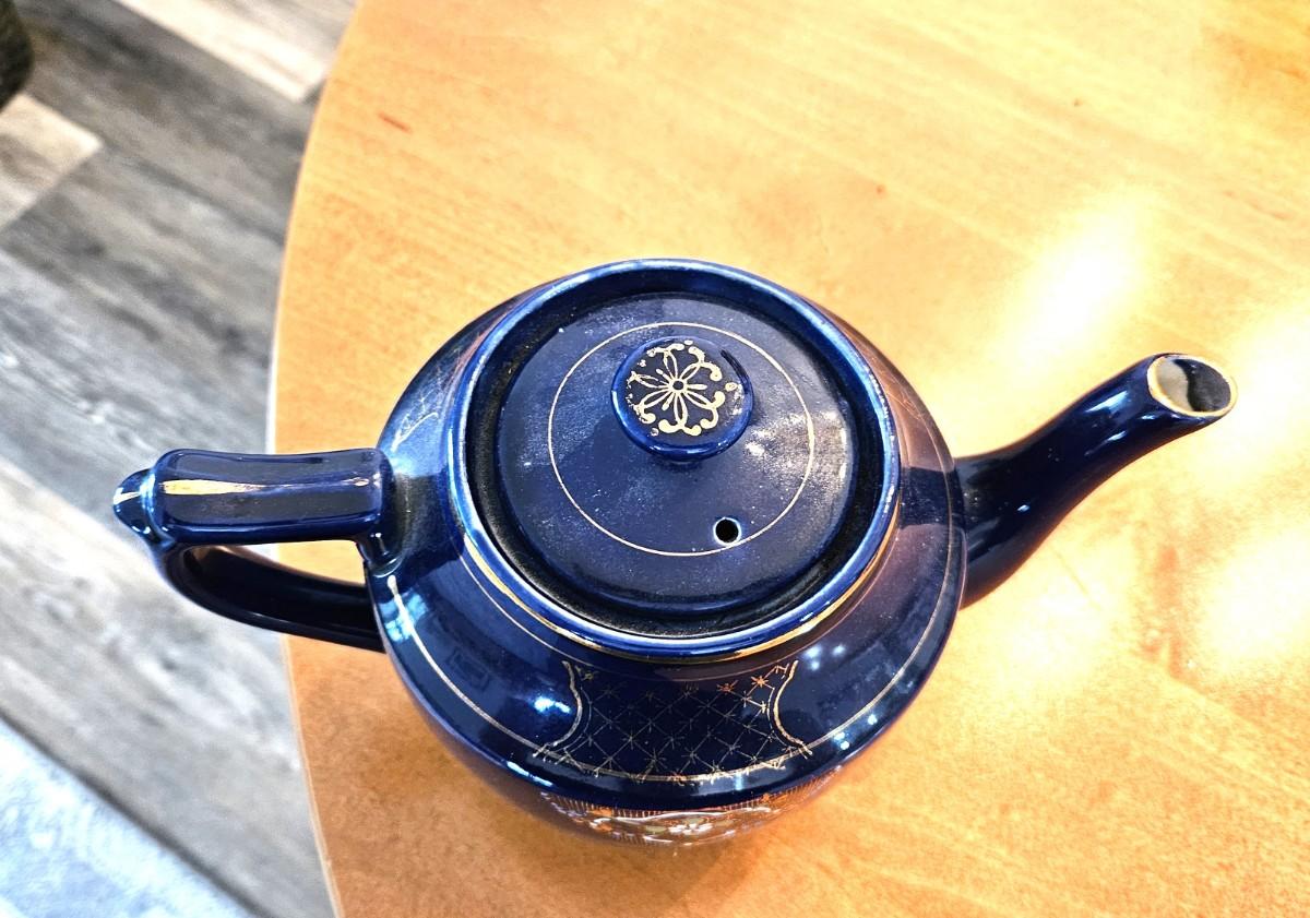 Vintage Japanese Moriage Teapot w/ Cobalt Blue Glaze w/ Gold Accents