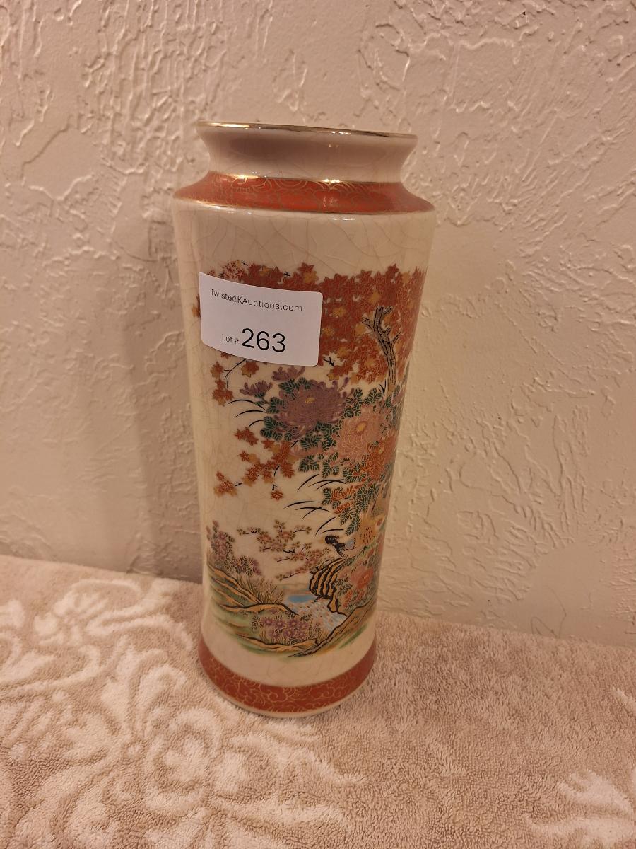 vintage Japanese Peacock floral vase with gold trim see all photos.