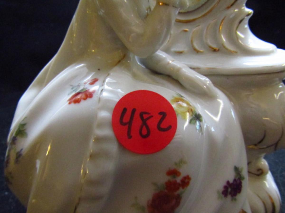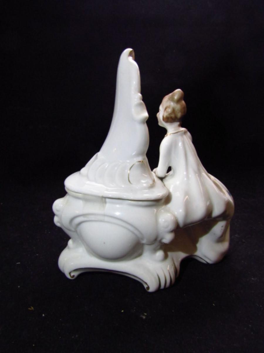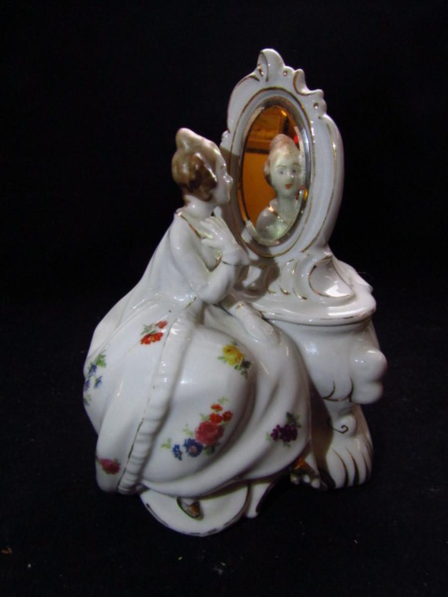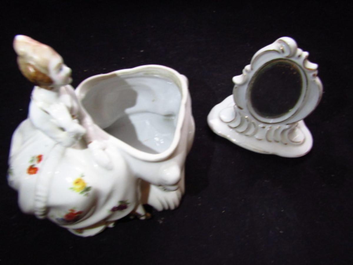 Vintage Japanese Porcelain Vanity Dish with Lid- Lady Seated at Mirror (#482)