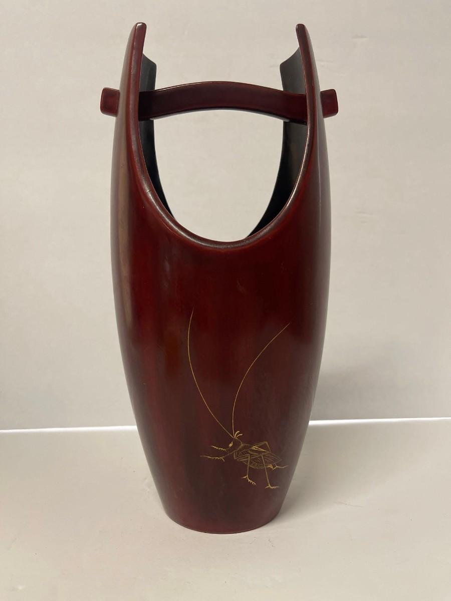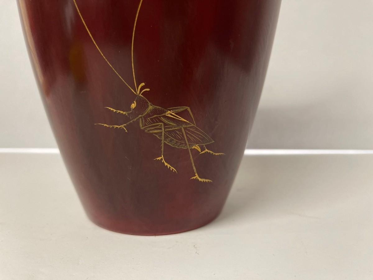Vintage Japanese Porcelain Vase circa 1945-1952. Hand painted image of a grasshopper. Excellent condition. 12”.