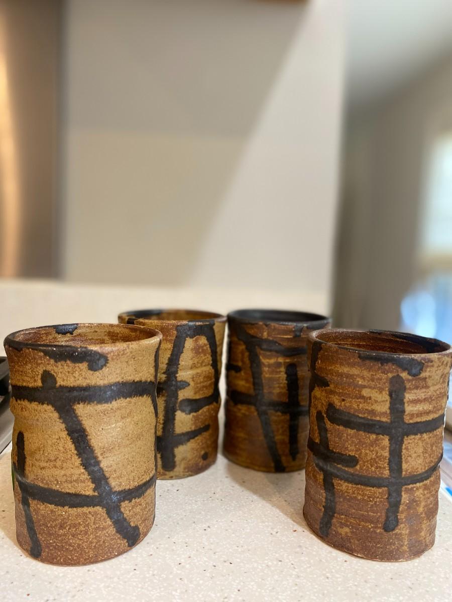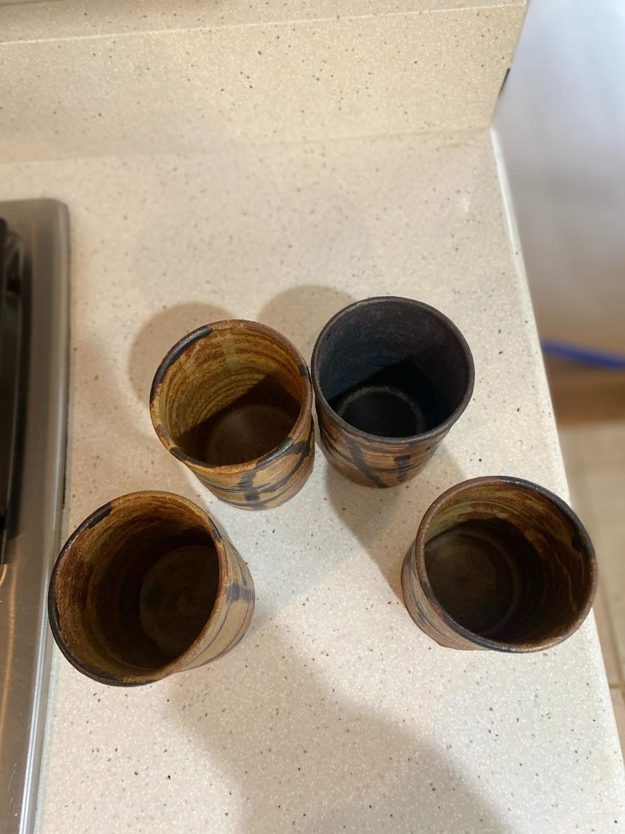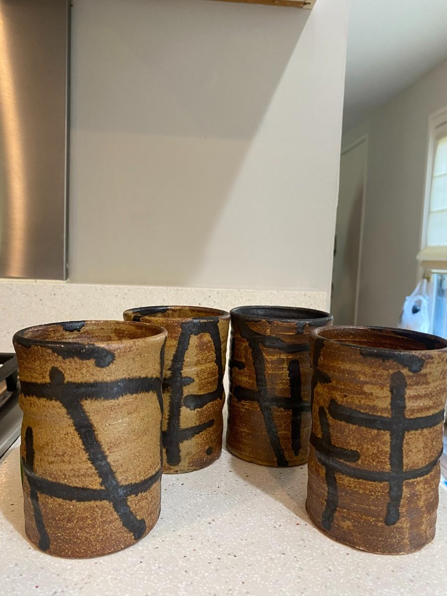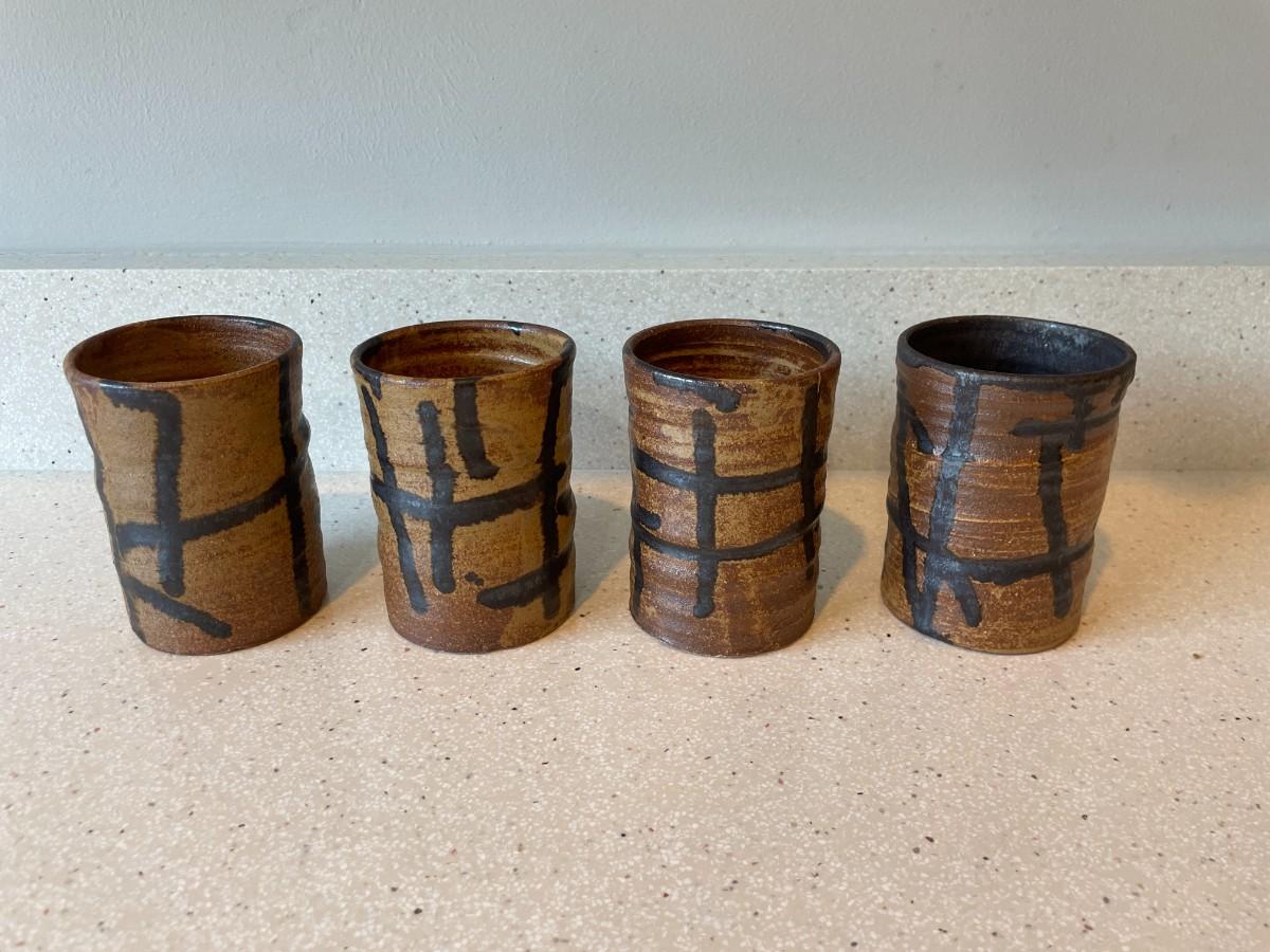 Handmade pottery. Set of 4. Measuring 3 1/2w x 4h