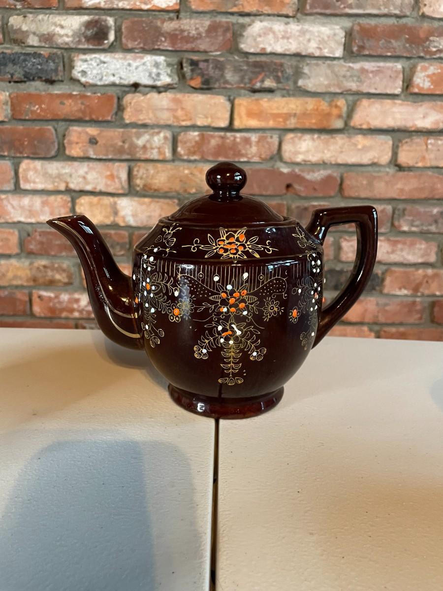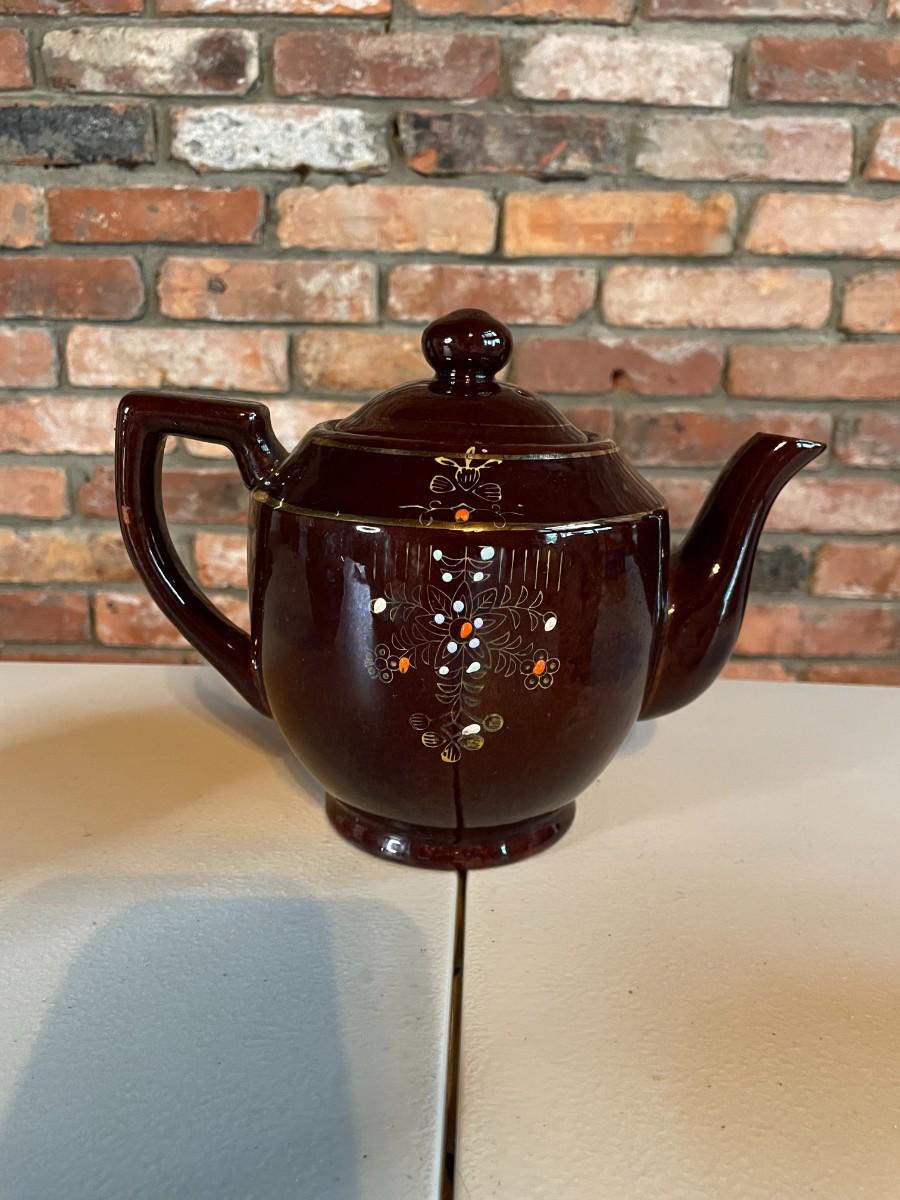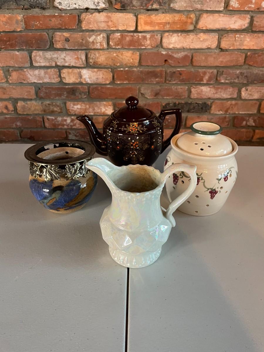 Beautiful assortments of vintage pottery. Brown Tea Pot w/Lid: 9 x 5.