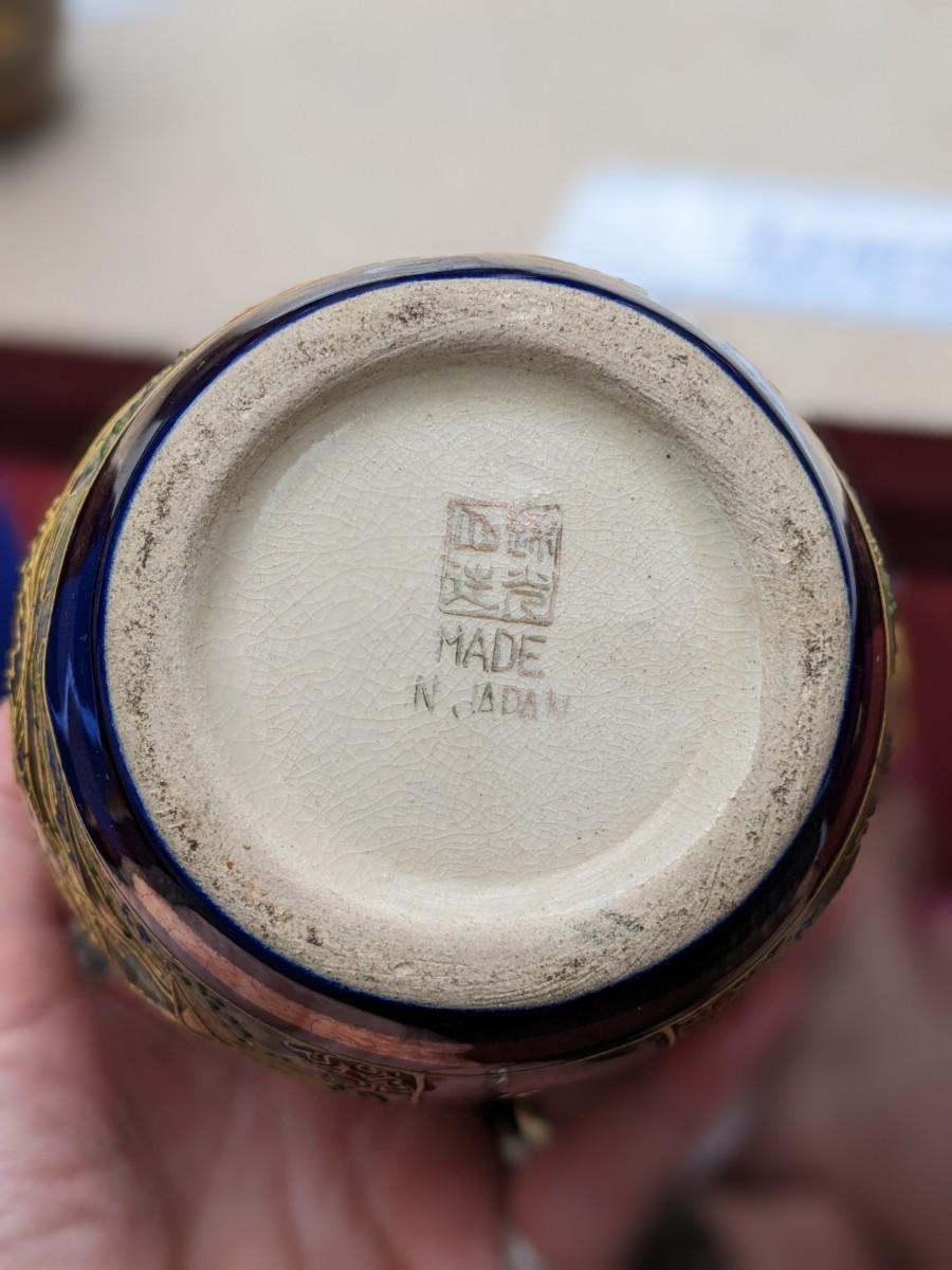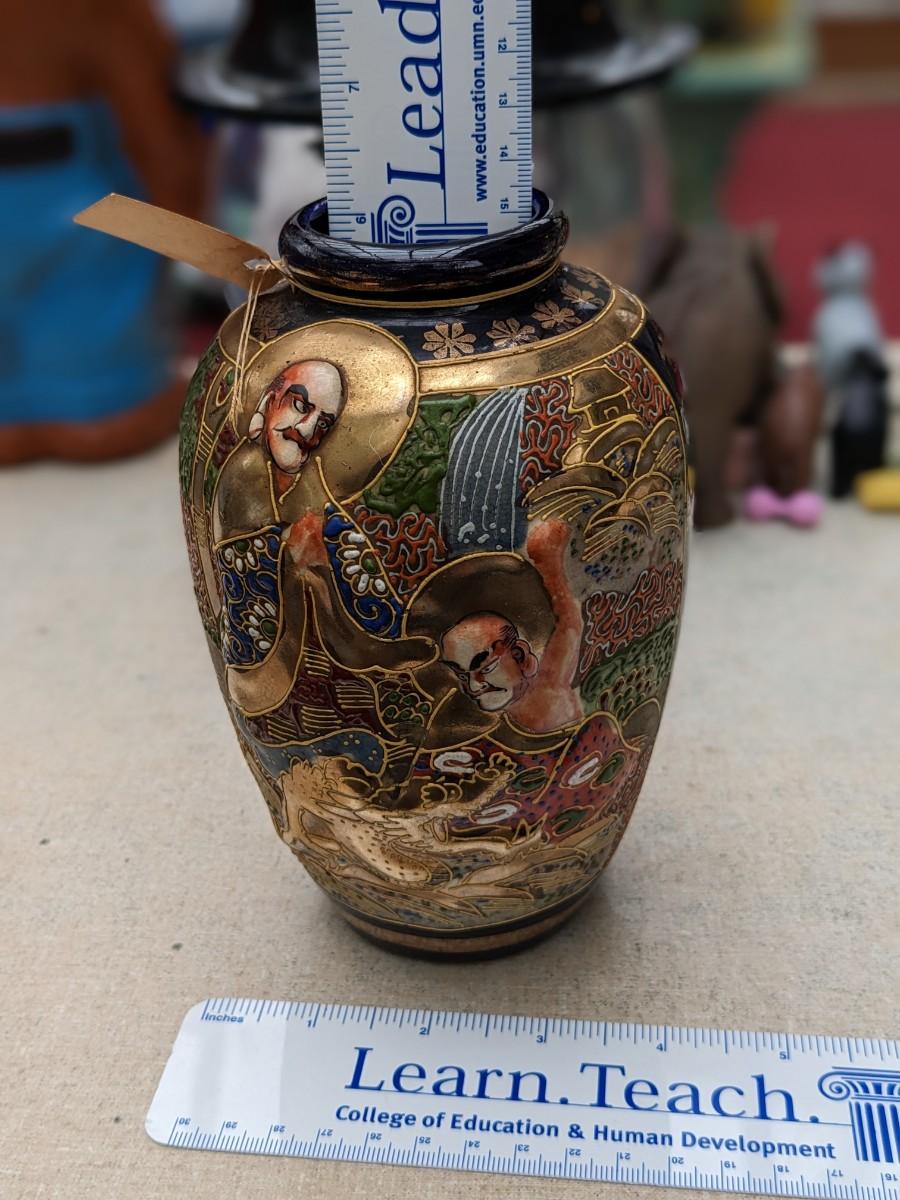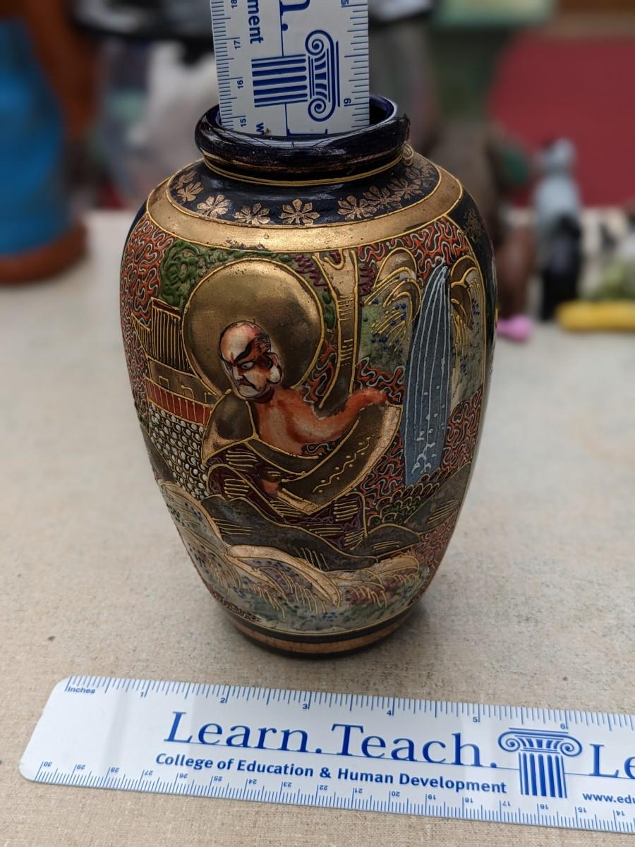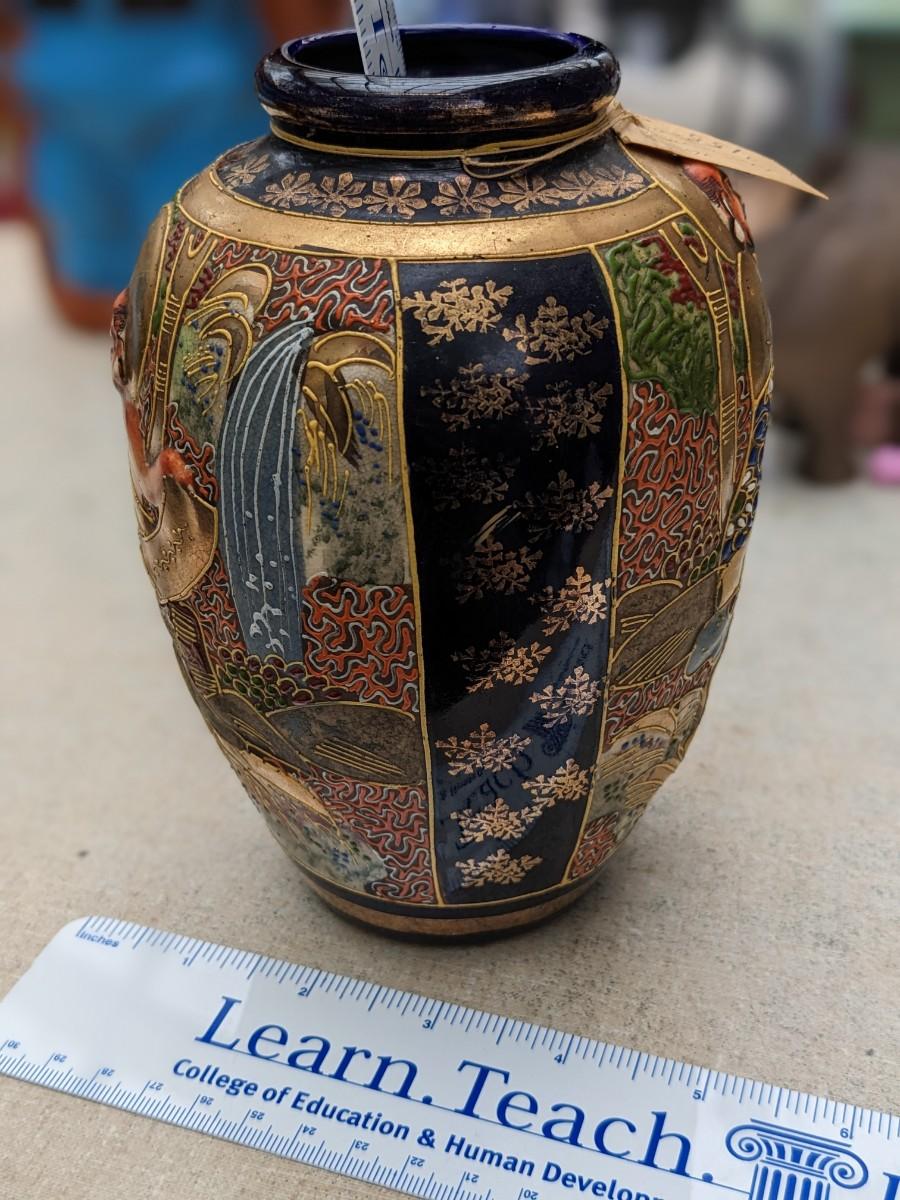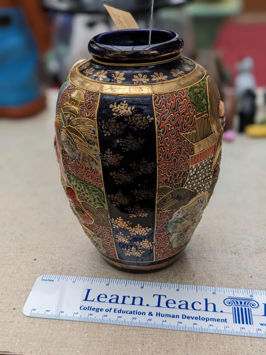 Vintage Japanese Satsuma Vase With Colorful High Relief Decoration