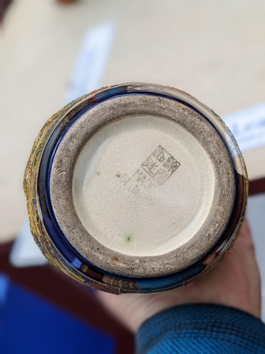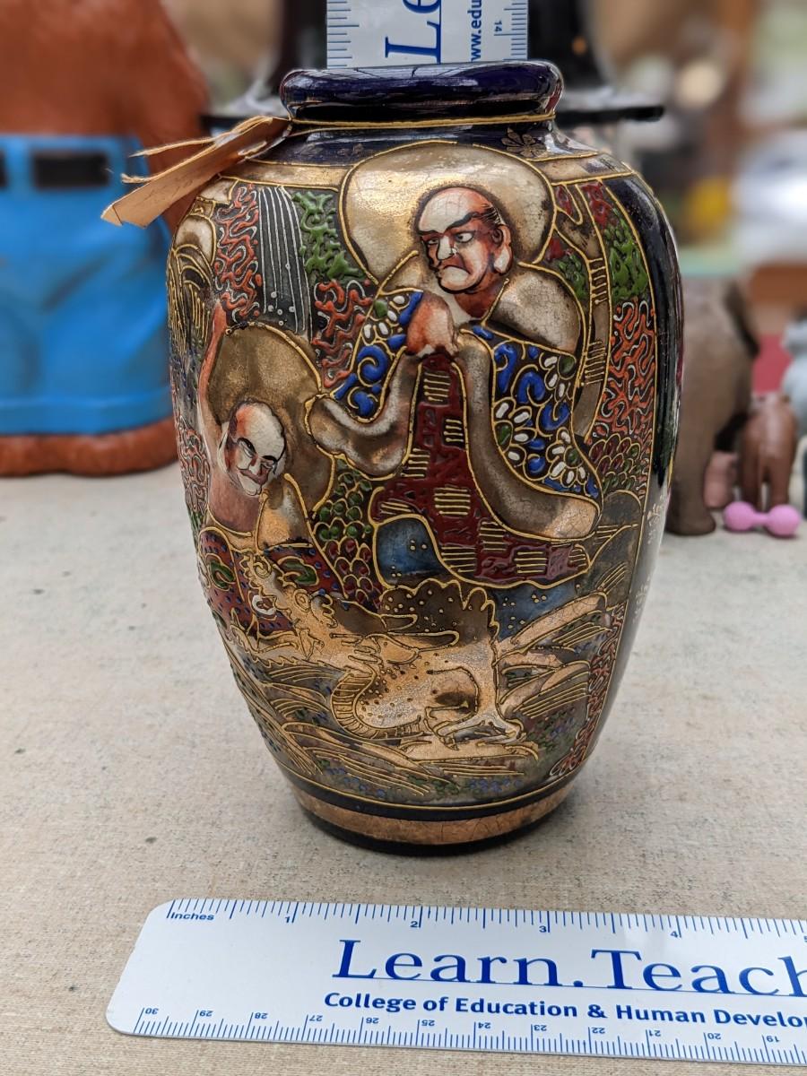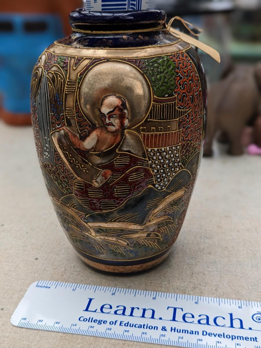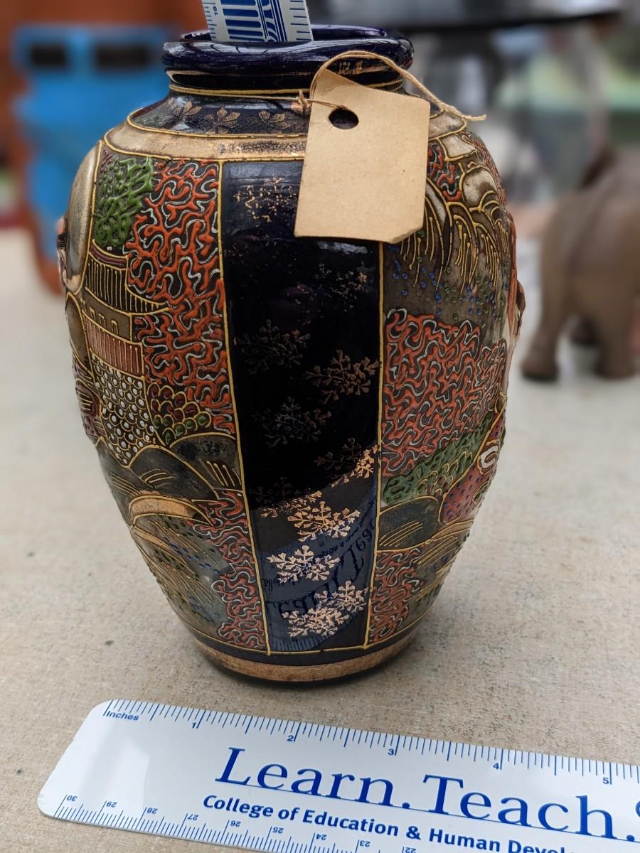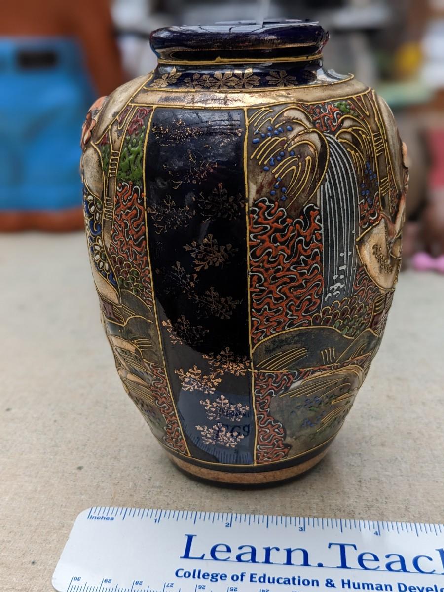 Vintage Japanese Satsuma Vase With Colorful High Relief Decoration