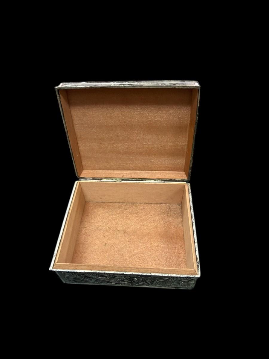 Vintage Japanese Silver Toned Dragon Box or Trinket Box With Wooden Liner
