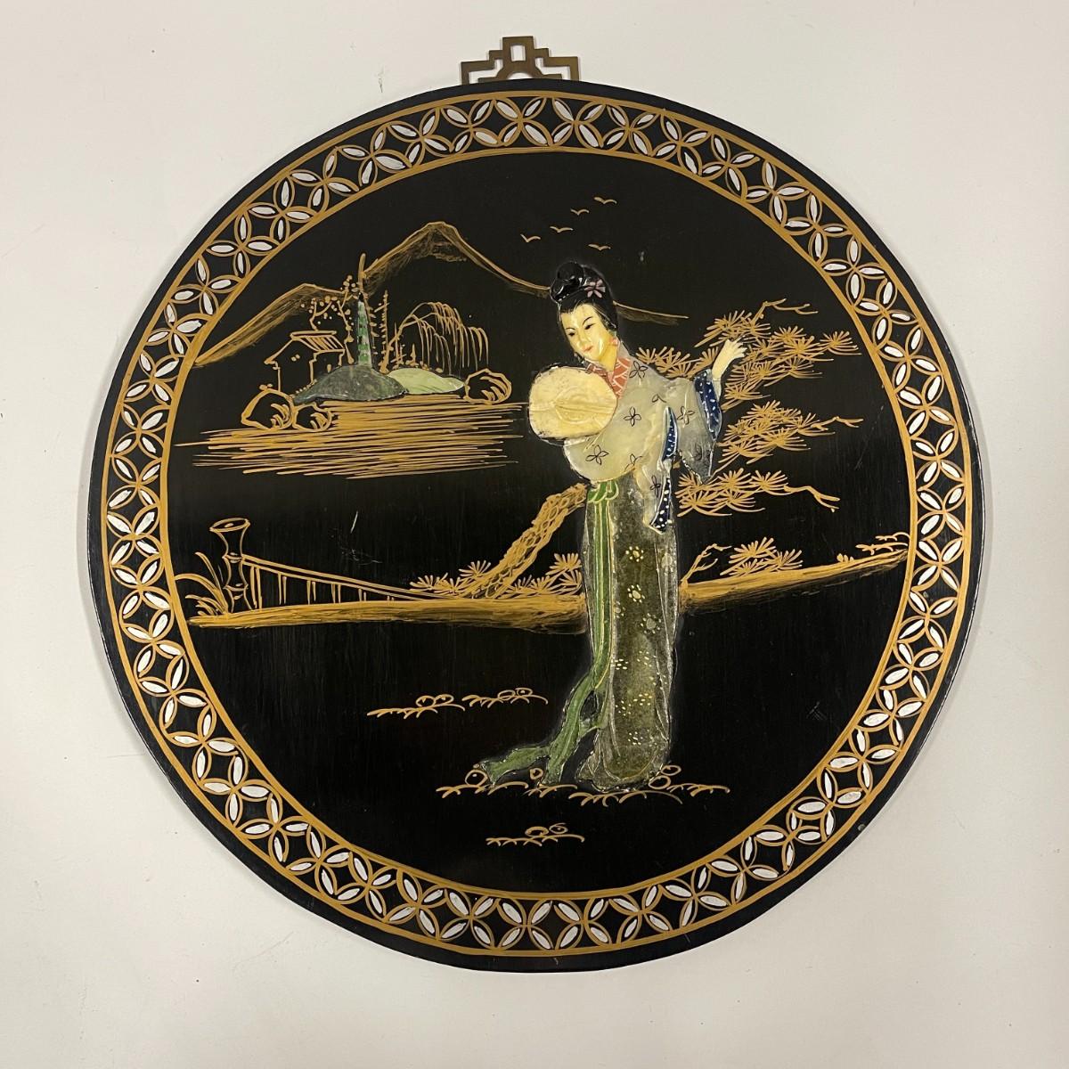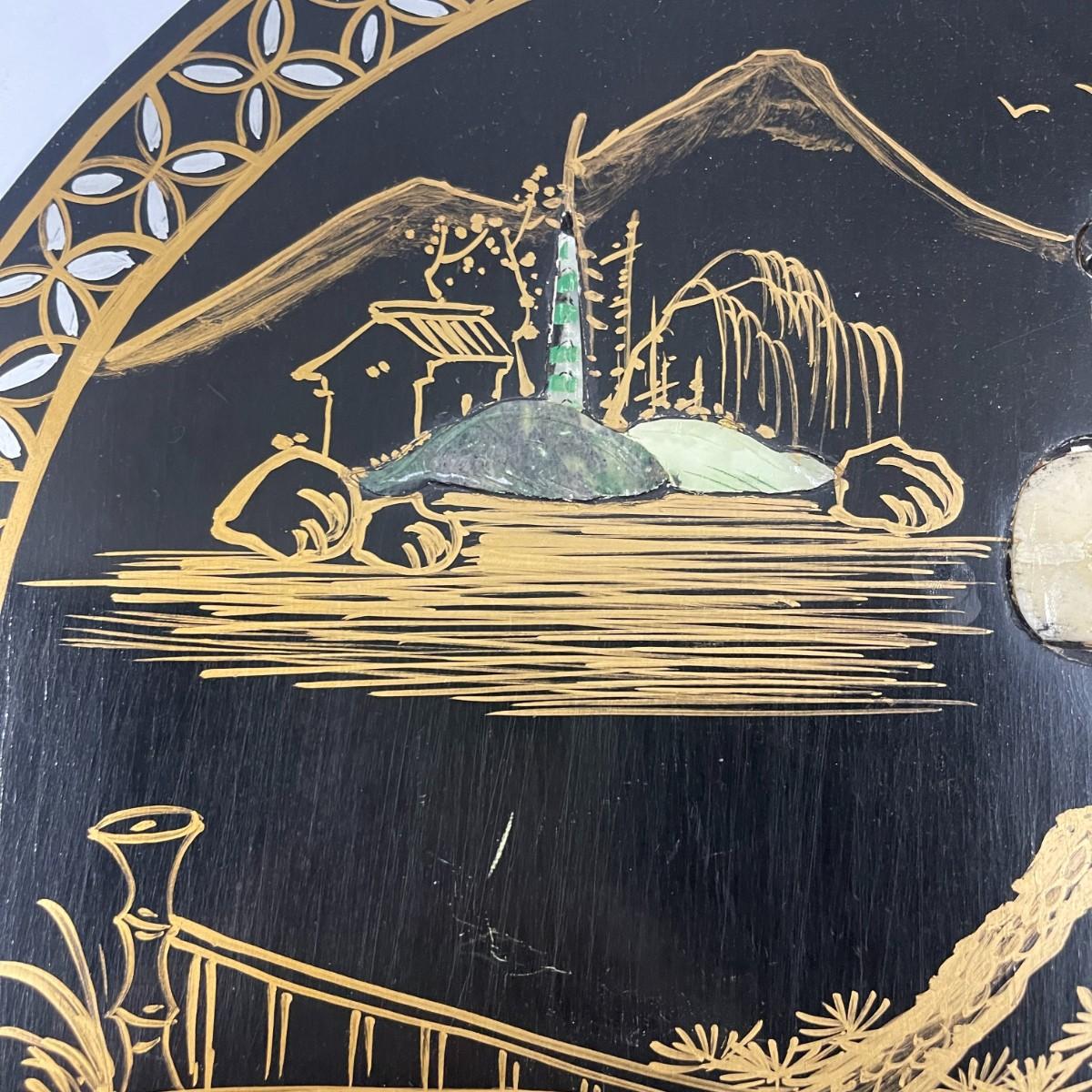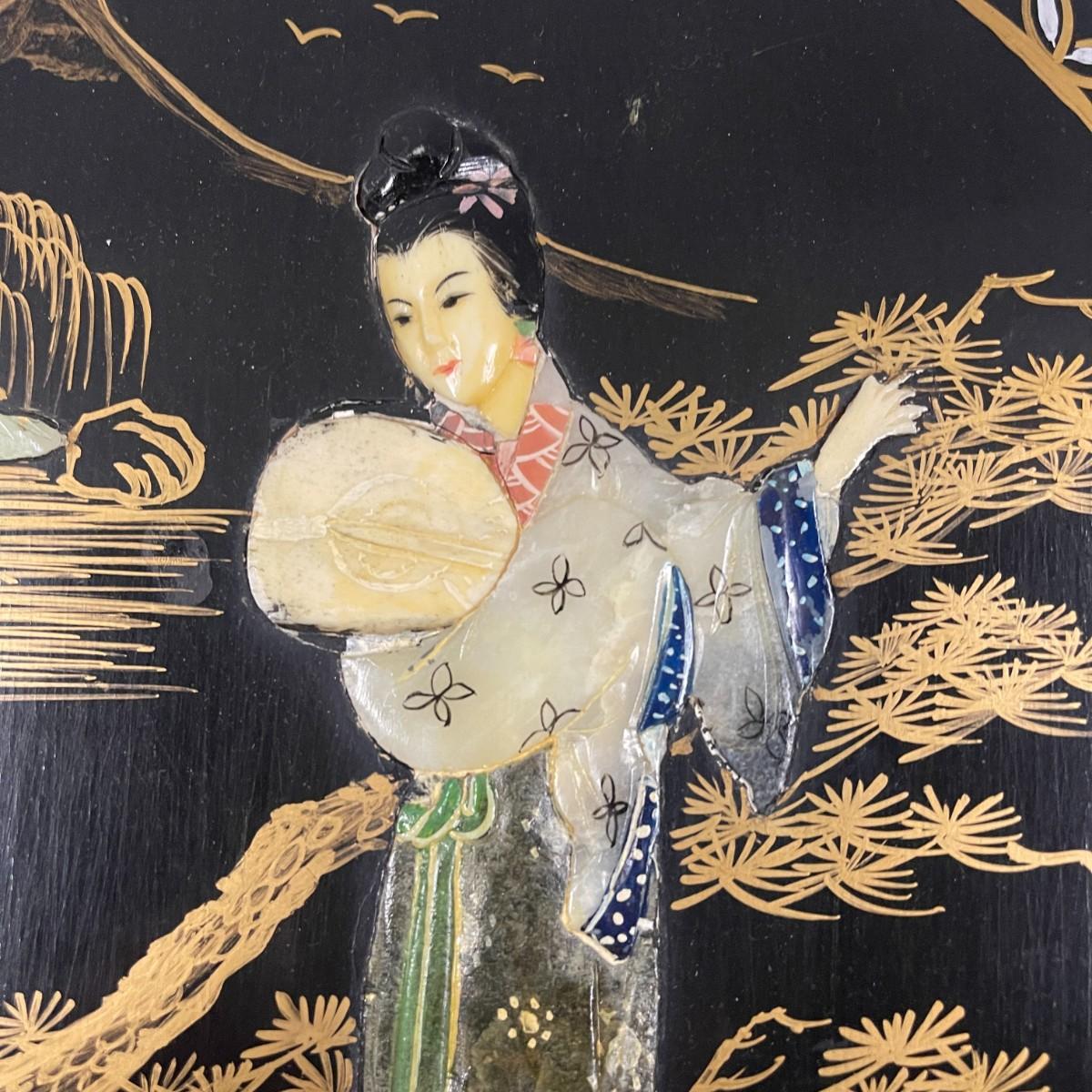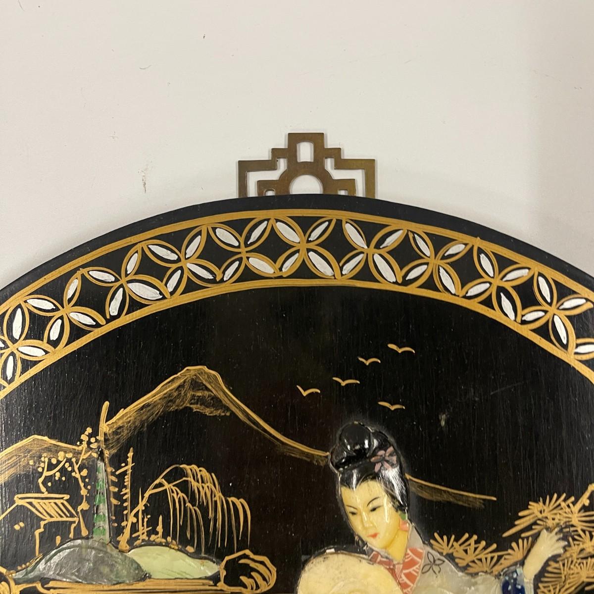 Vintage Japanese Style Black Lacquered Wood Wall Decor