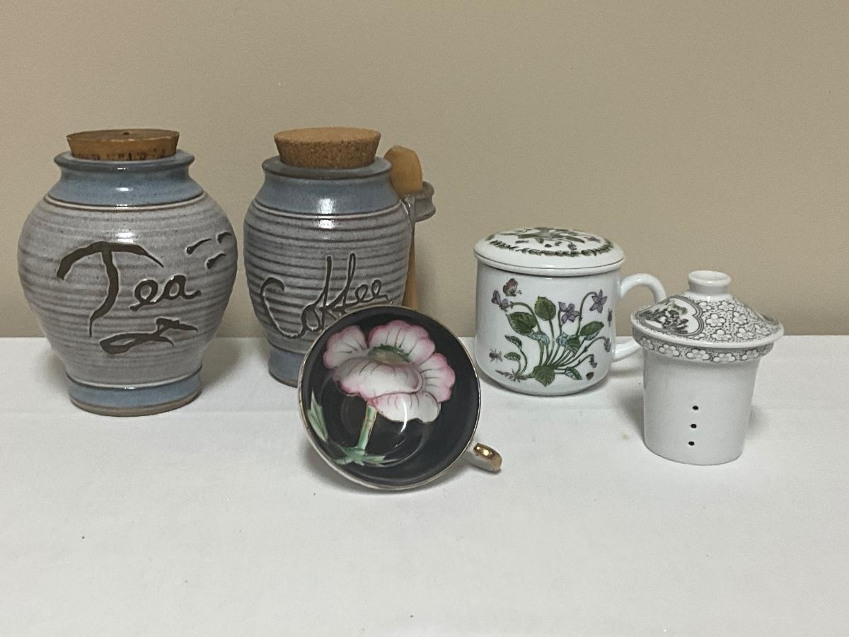 Vintage Japanese Teacup, Hand made Tea and Coffee holders, porcelain tea mug with lid and infuser and infuser with lid