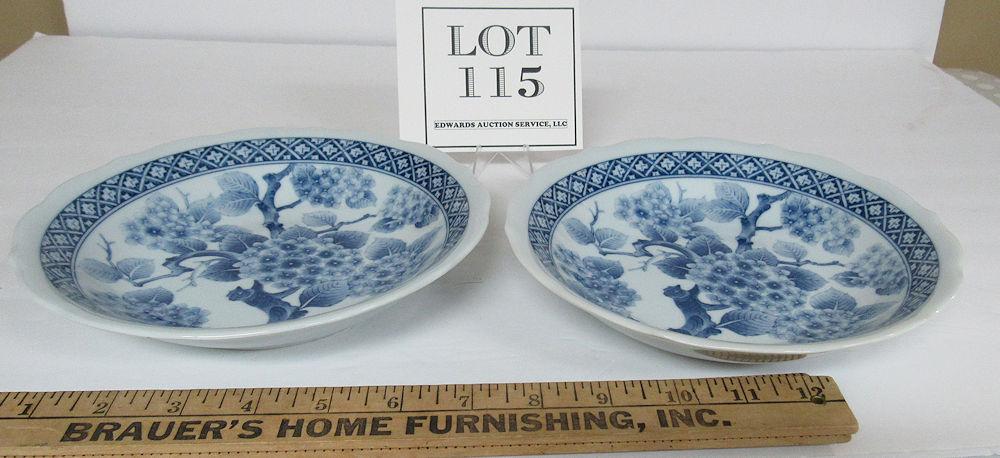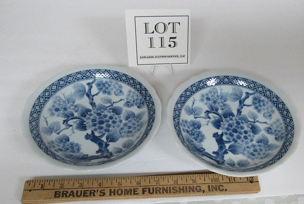 Vintage Japanese Theme Blue and White Soup Bowls Made in Japan