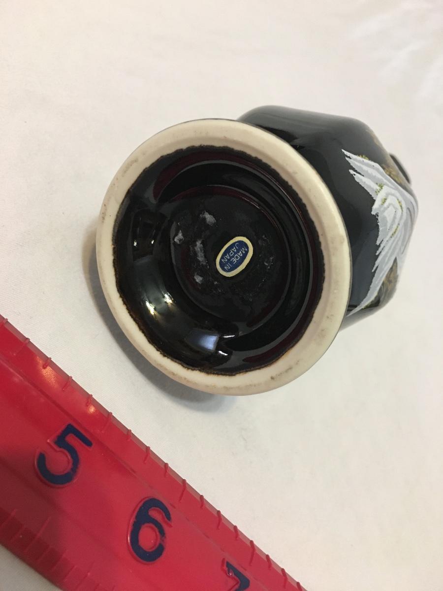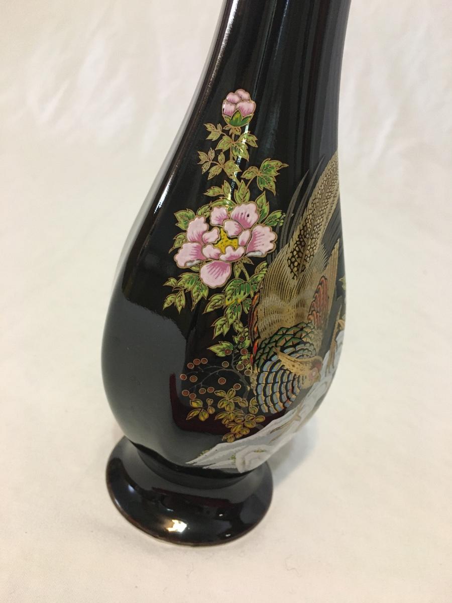 Vintage Japanese Vase Black With Gold Pheasant And Pink Flowers