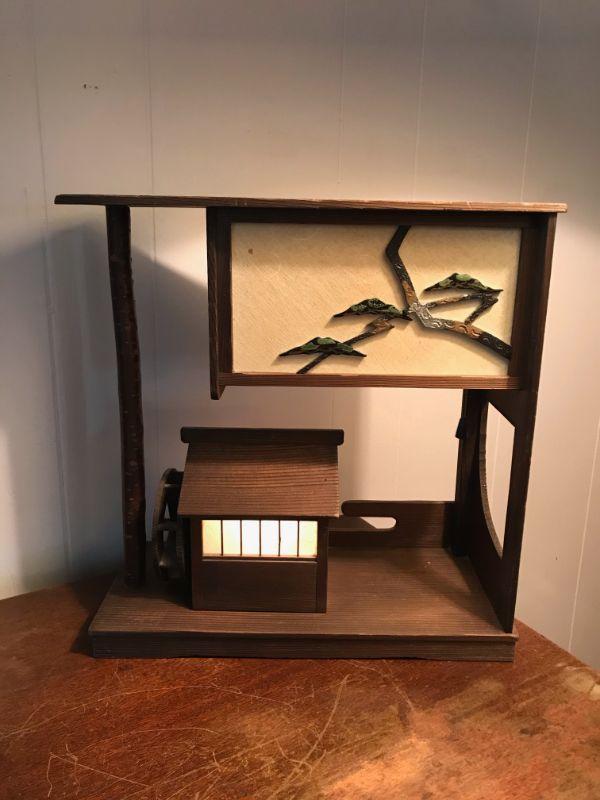 Vintage Japanese Wood and Paper Side Table Lamp (102)